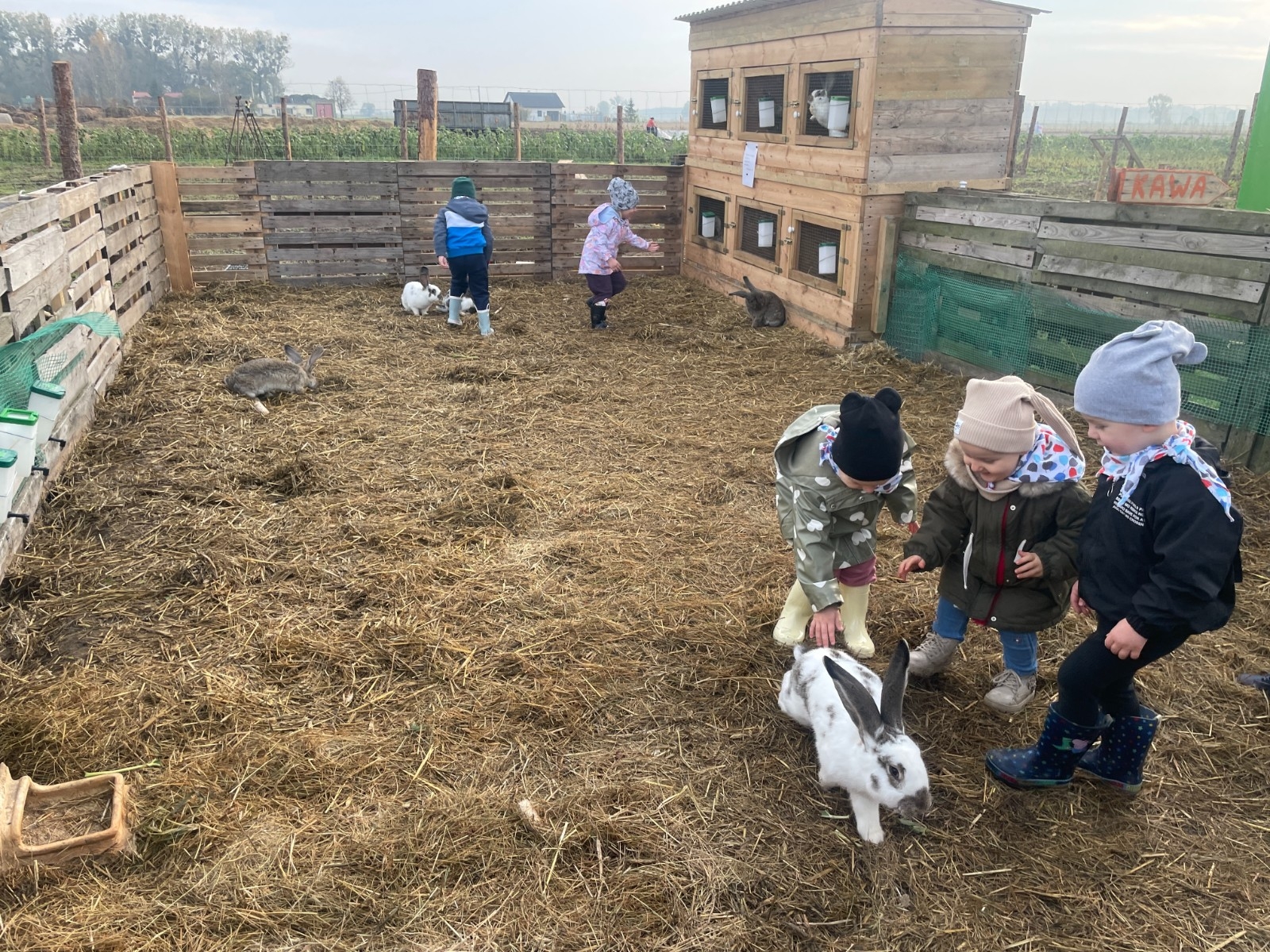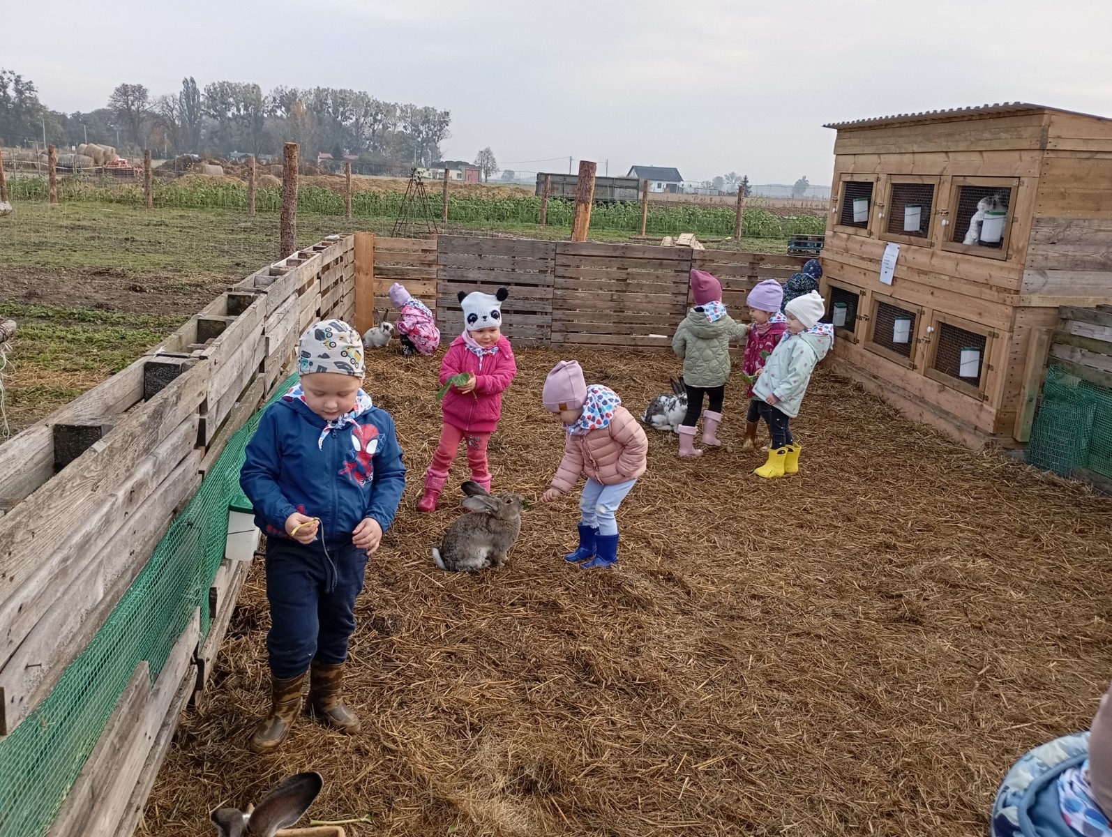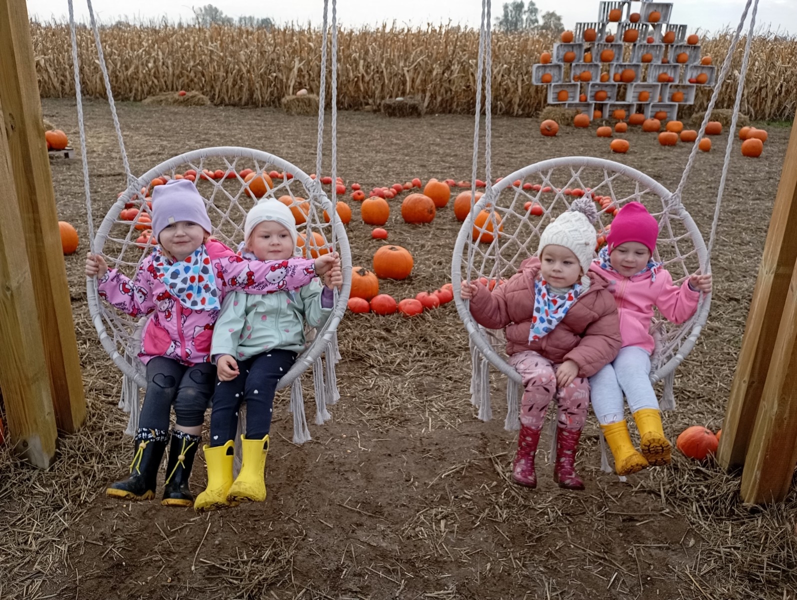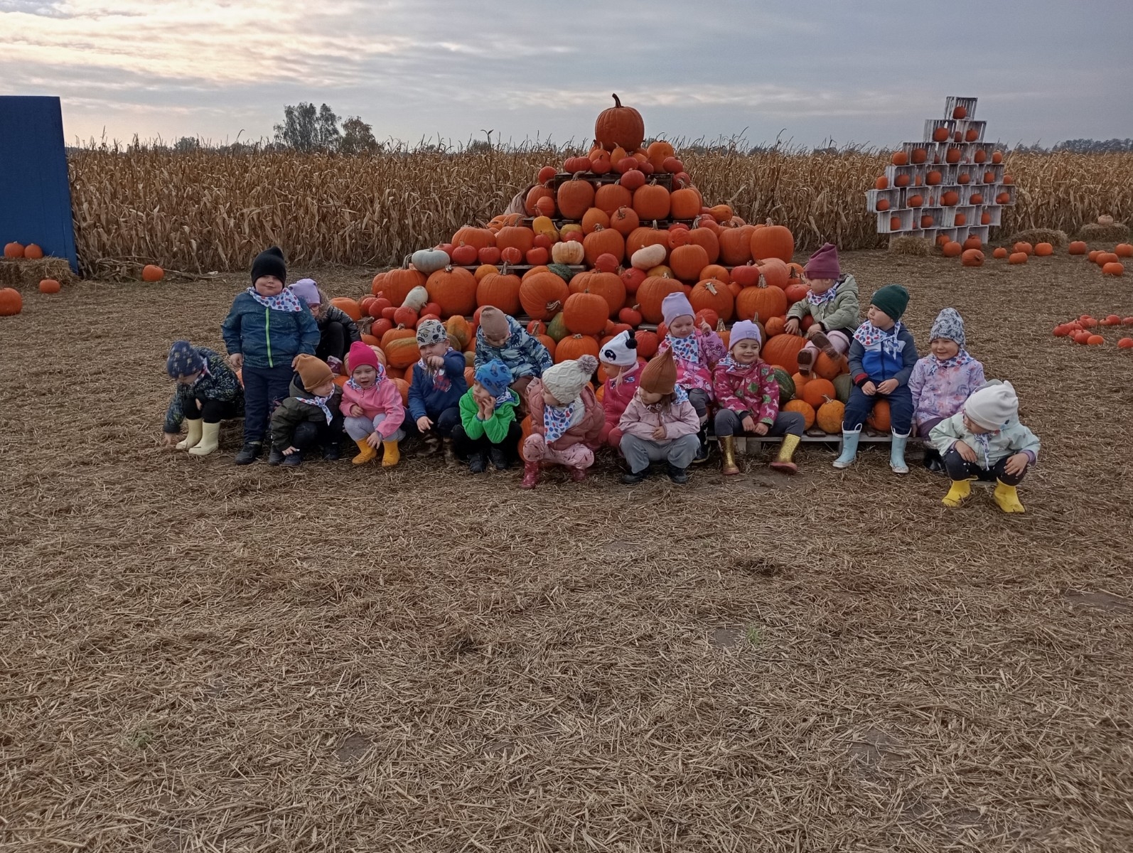 Krasnal Hałabała siedział dumnie w pierwszym rzędzie, trzymając swój czerwony kapelusz, żeby nie odleciał, gdy autobus przyspieszał. Gdy tylko dotarli na miejsce, wszyscy oniemieli z zachwytu! Przed nami rozciągało się prawdziwe dyniowe królestwo, ogromne pomarańczowe kule, zielone tykwy, maleńkie ozdobne dynie oraz te wielkie jak smerfne domki! Pani Przewodniczka opowiedziała dzieciom, jak rosną dynie i pokazała różne odmiany. Krasnal Hałabała z powagą przytaknął i szepnął Smerfom: widzicie, moi mali przyjaciele, dynie to piękny, jesienny skarb natury! Po krótkiej pogadance nadszedł czas na przygody w Dyniowej Farmie. Smerfy i Krasnale ruszyli do labiryntu z kukurydzy. Z początku wszystko szło dobrze, dopóki Ciamajda nie skręcił w lewo zamiast w prawo. Na szczęście Papa Smerf z pomocą Hałabały szybko wszystkich odnaleźli. Na koniec labiryntu czekała nagroda – wielki kosz pełen dyniowych skarbów! Następnie przedszkolaki odwiedziły zagrodę ze zwierzętami i z radością karmiły króliczki. Na zakończenie naszej wyprawy wszyscy poszli na odpoczynek i degustowali piknikowe przysmaki. Hałabała częstował pieczonymi ziemniakami, a Smerfetka przyniosła ciepłą herbatkę. Dzieci śpiewały jesienne piosenki, a wiatr cichutko szeptał: to był naprawdę magiczny dzień! Zmęczeni, ale szczęśliwi Smerfy i Krasnale wrócili do przedszkola z koszami pełnymi dyń i sercami przepełnionymi wrażeniami i radością. Dyniowa przygoda pełna śmiechu, przyjaźni oraz jesiennego czaru na długo pozostanie w naszych wspomnieniach!