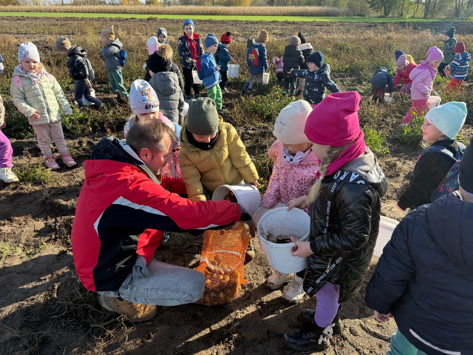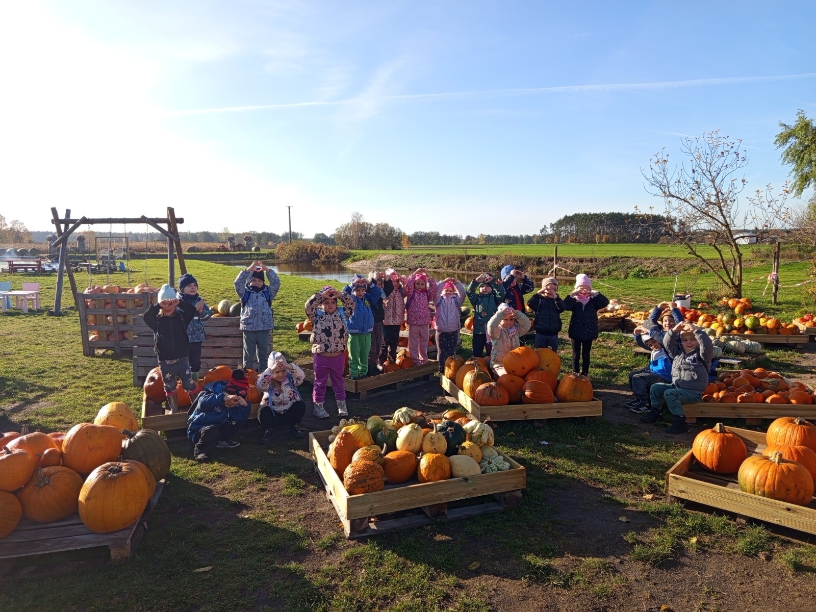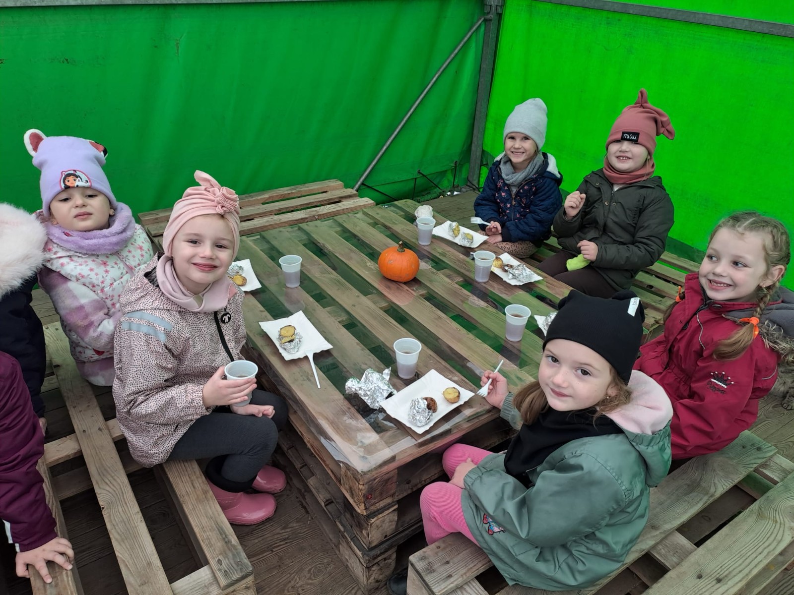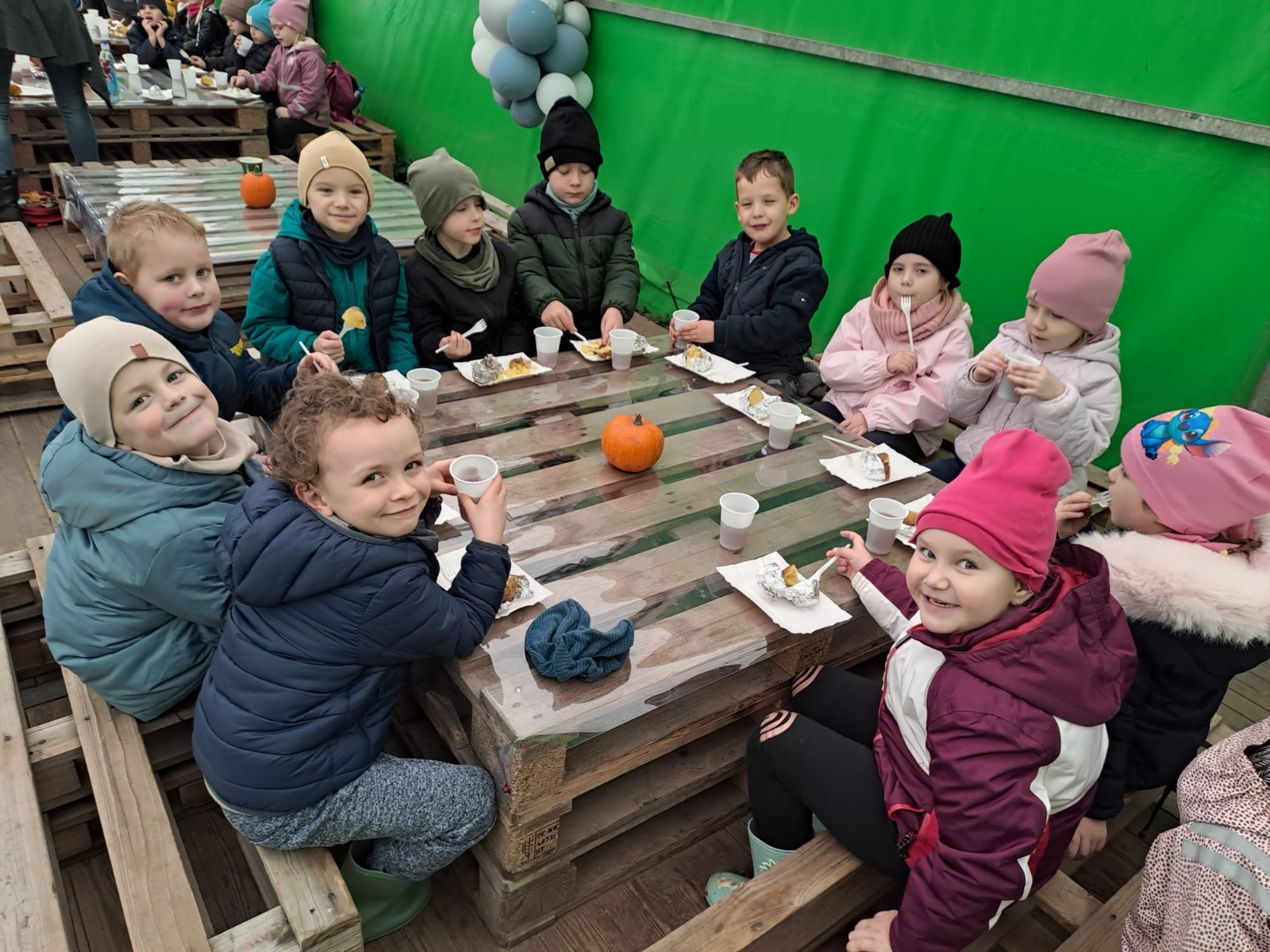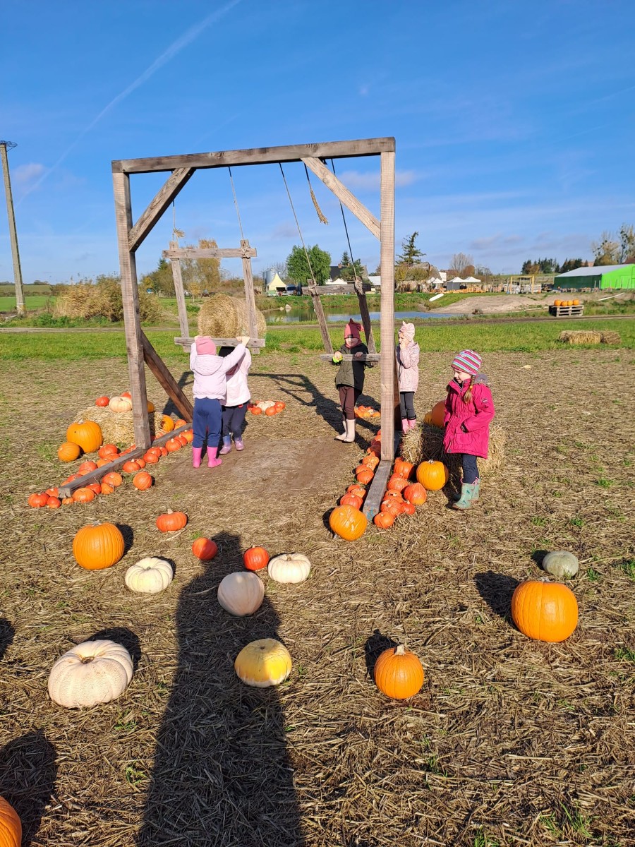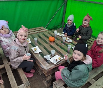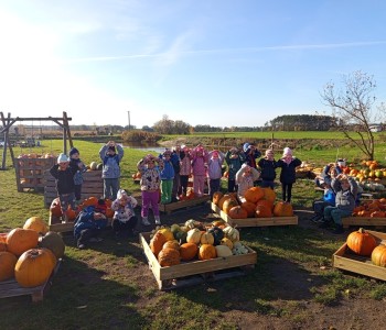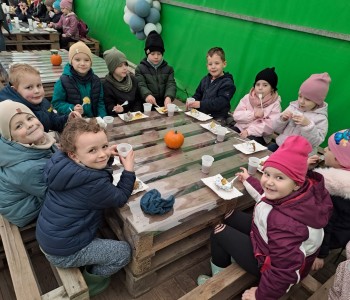 Zaaranżowana przez nich dyniowa wioska co roku jesienią przyciąga tłumy zwiedzających. Nie brakuje tu bowiem miejsc, by zrobić sobie oryginalne jesienne zdjęcie, oczywiście z dynią w roli głównej. Pierwszym punktem programu było karmienie zwierząt, które tam spotkaliśmy. Korzystając z plonów farmy wykopaliśmy ziemniaki. Ogromnym smakiem i zaskoczeniem okazały się ziemniaki gotowane w mundurkach. Wszystkie dzieci zajadały je ze smakiem. Na zakończenie dzieci miały okazję poznać nazwy i wygląd różnych gatunków dyń jadalnych i ozdobnych, o naprawdę wielu różnorodnych kształtach, wielkościach i kolorach. Dyniowa Farma to fantastyczne miejsce dla wszystkich. Bardzo dziękujemy za wspaniałą wycieczkę.