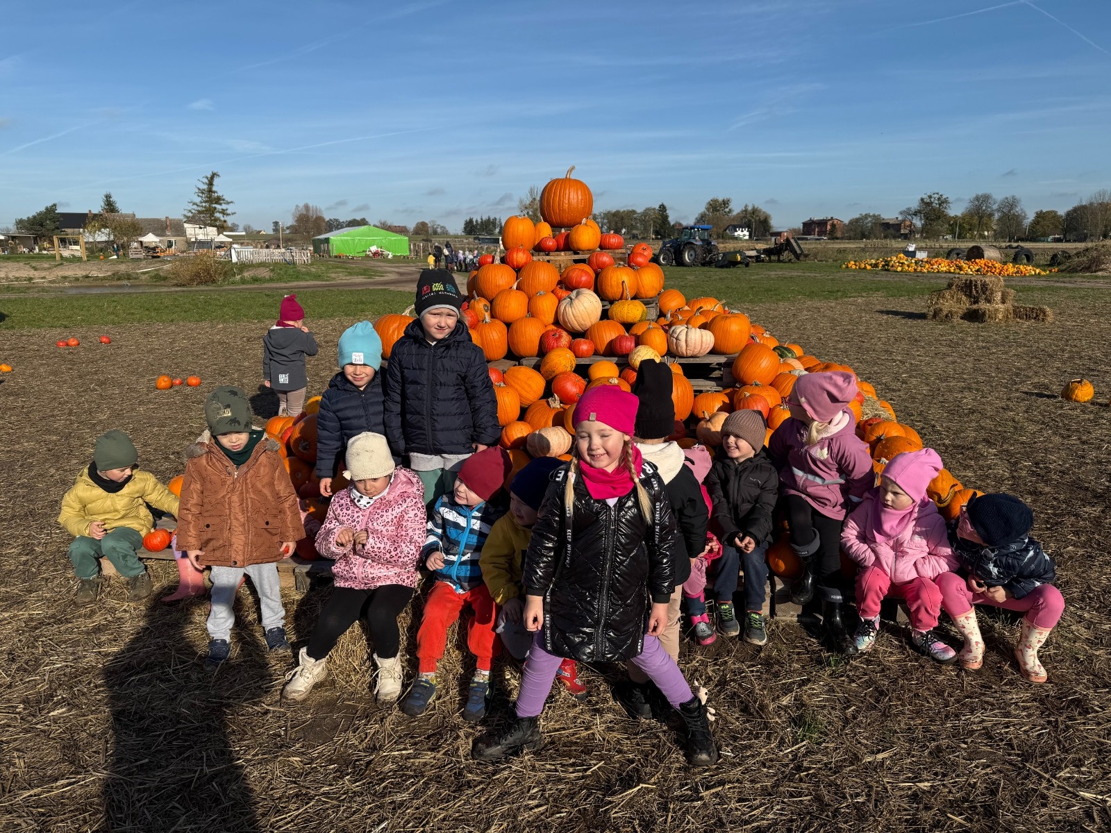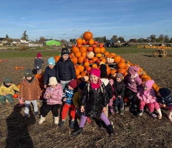 Dnia 31 października grupa Wróbelka Elemelka, Reksia, Kubusia Puchatka i Misia Uszatka z naszego przedszkola wyjechały na wycieczkę na Dyniową Farmę do Runówka. Na Dyniowej Farmie miło, radośnie i atrakcyjnie spędziliśmy czas. Po wyjściu z autokarów powitali nas gospodarze, prawdziwi pasjonaci uprawy dyń.