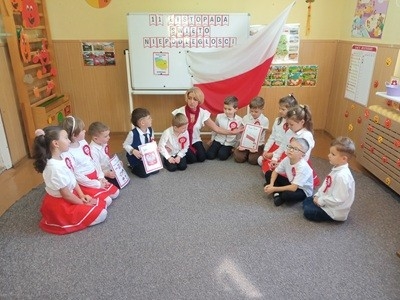 W przedszkolu od najmłodszych lat dzieci uczą się patriotyzmu, przywiązania do kraju ojczystego oraz kształtują pozytywne postawy i uczucia patriotyczne. 7 listopada przedszkolaki z grupy „Myszka Miki” świętowały Narodowe Święto Niepodległości. Wysłuchały wiersza pt.: „Katechizm polskiego dziecka”, zapoznały się z wydarzeniem historycznym, poznały postać Marszałka Józefa Piłsudskiego oraz przypomniały sobie znaczenie symboli narodowych.