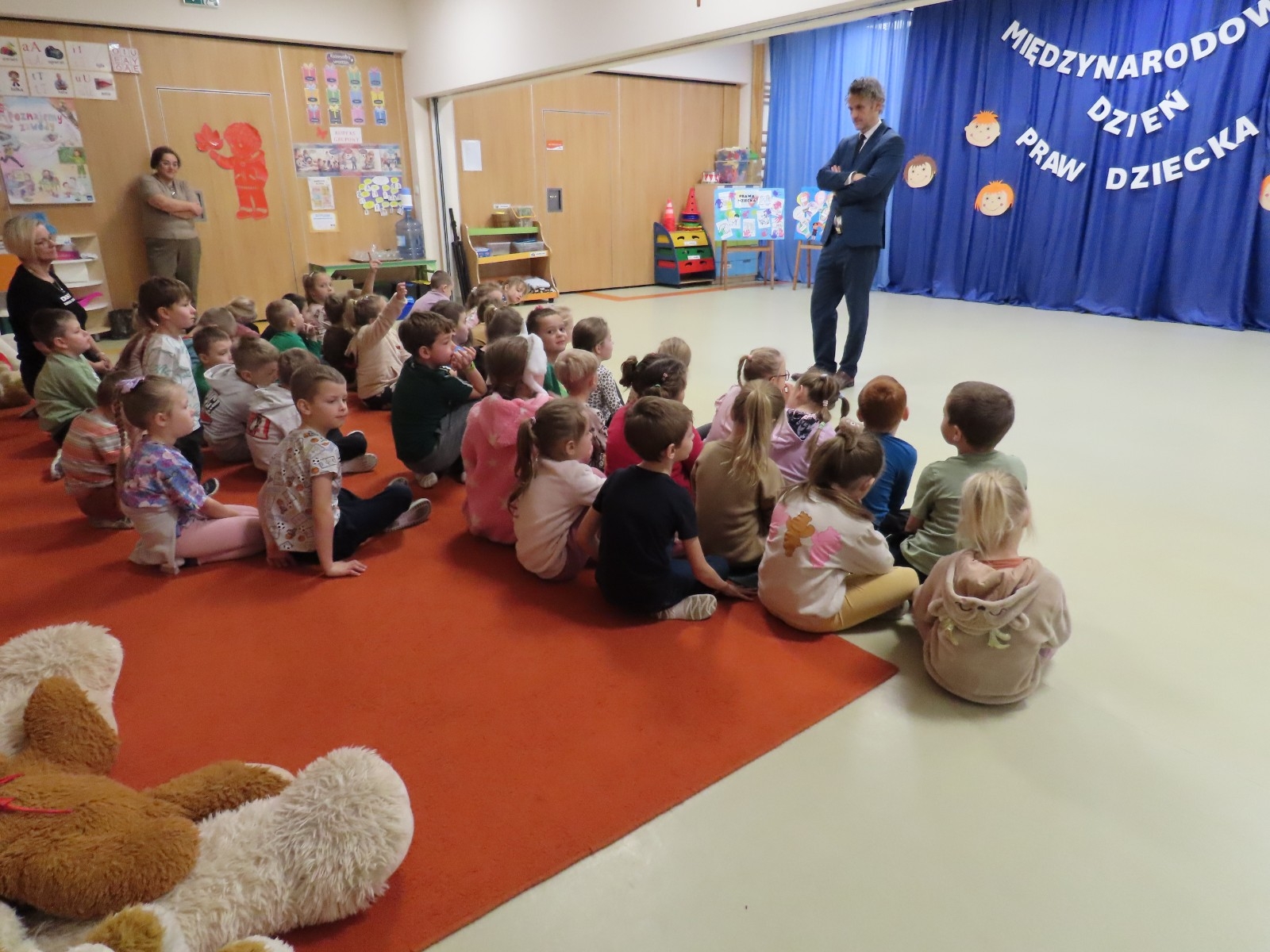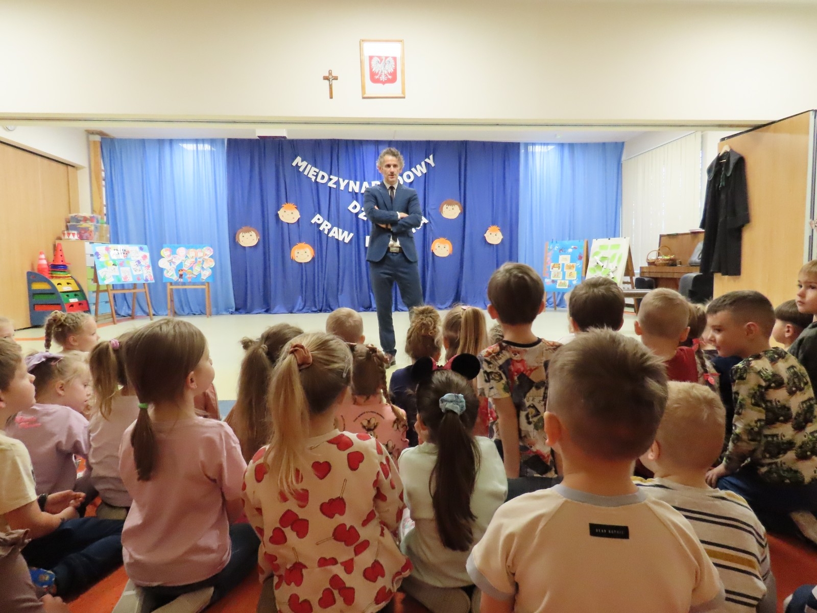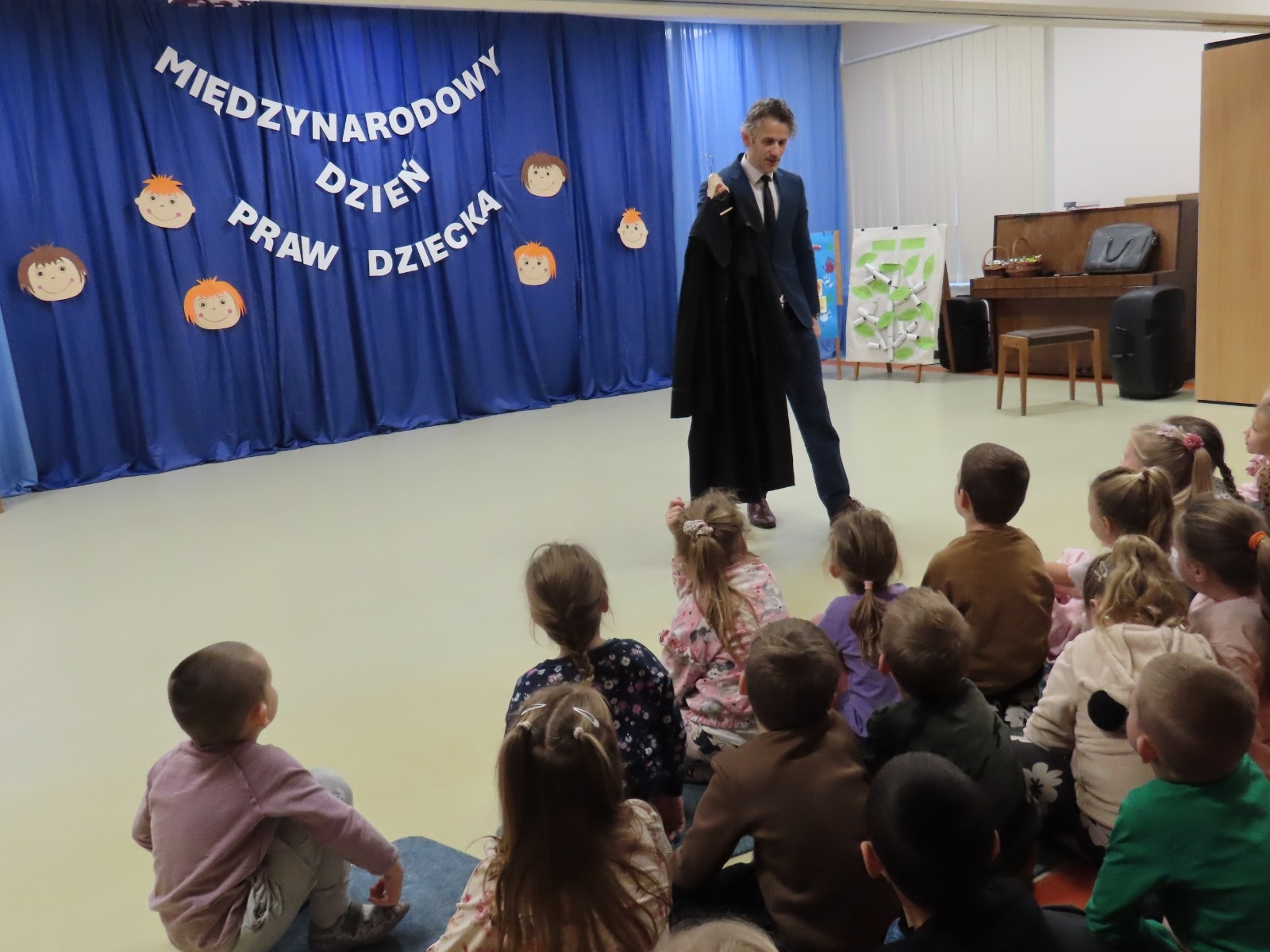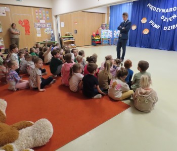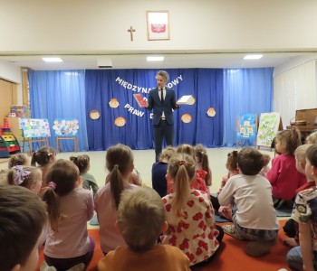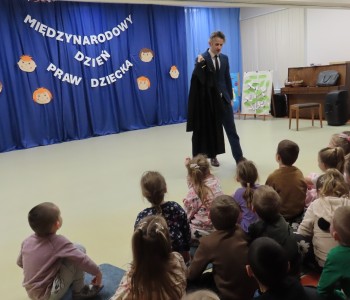 Adwokat Maciej Moszczeński uczestniczył w obchodach Międzynarodowego Dnia Praw Dziecka, które odbyły się w naszym przedszkolu. Spotkanie było okazją do rozmowy o prawach najmłodszych, ich bezpieczeństwie oraz roli dorosłych w codziennym wspieraniu rozwoju dzieci. Adwokat Maciej Moszczeński opowiedział dzieciom o swojej pracy oraz o zawodach związanych z wymiarem sprawiedliwości.