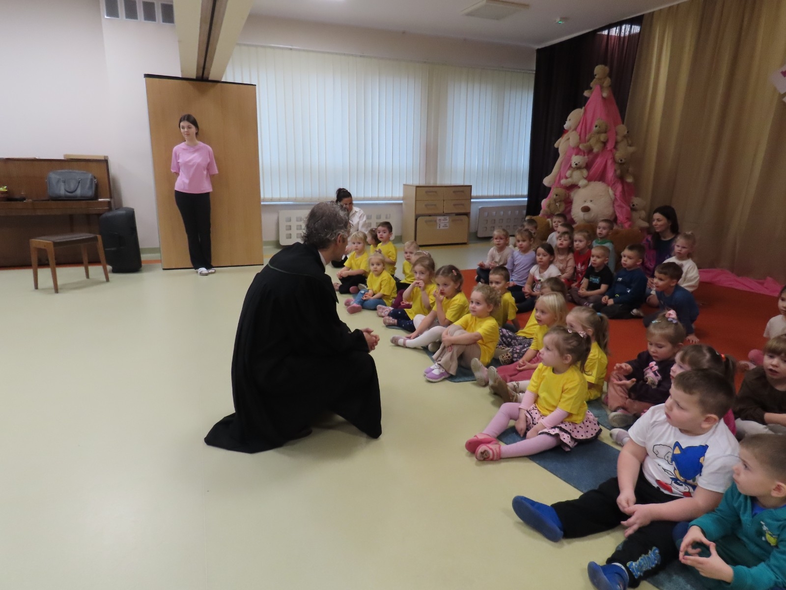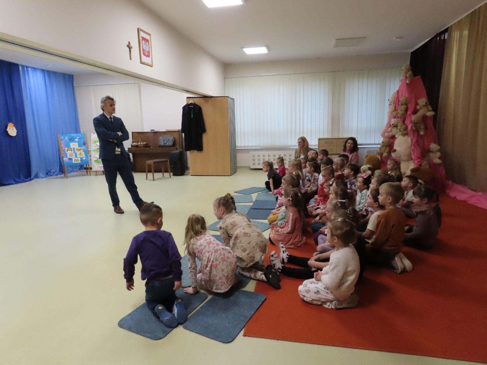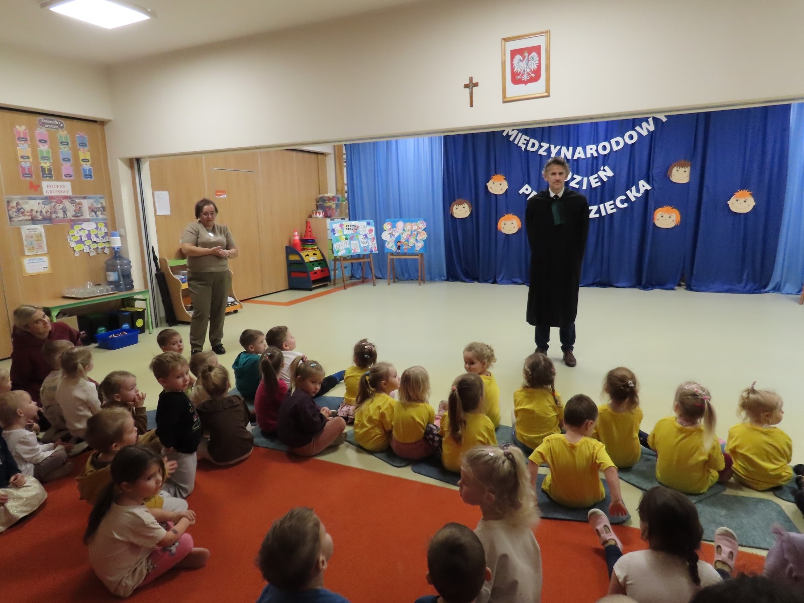 Adwokat Maciej Moszczeński uczestniczył w obchodach Międzynarodowego Dnia Praw Dziecka, które odbyły się w naszym przedszkolu. Spotkanie było okazją do rozmowy o prawach najmłodszych, ich bezpieczeństwie oraz roli dorosłych w codziennym wspieraniu rozwoju dzieci. Adwokat Maciej Moszczeński opowiedział dzieciom o swojej pracy oraz o zawodach związanych z wymiarem sprawiedliwości.