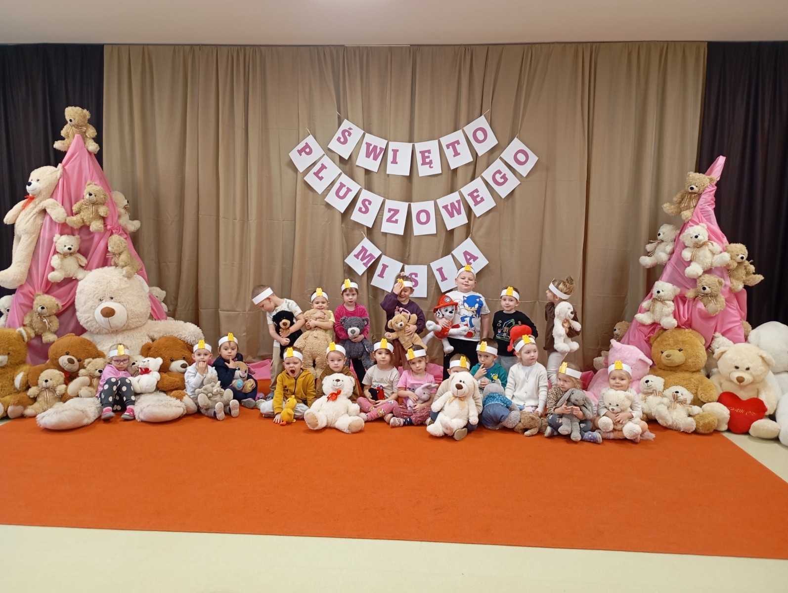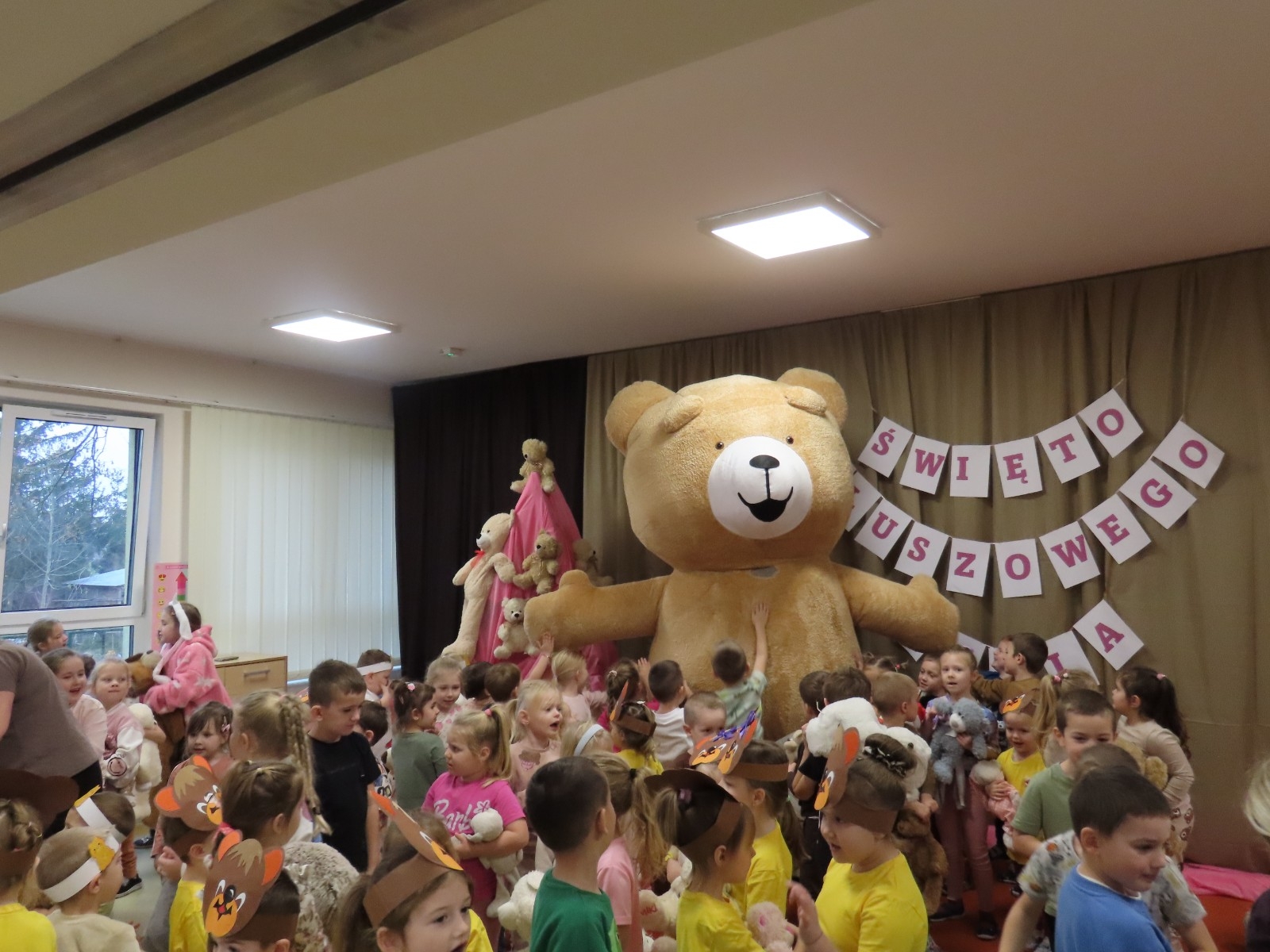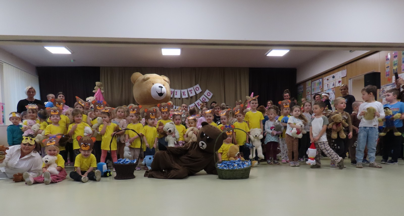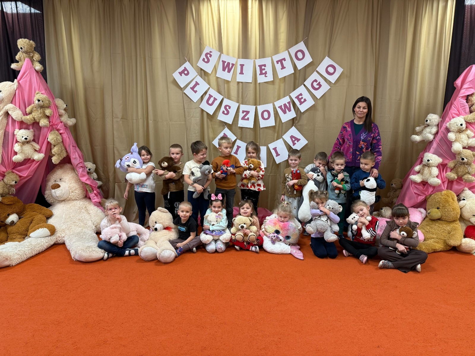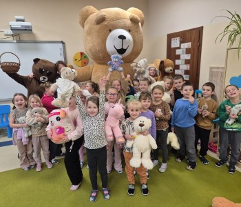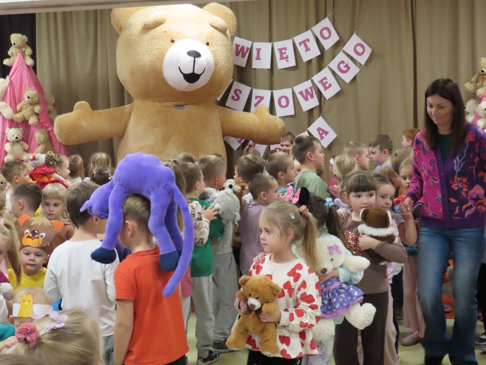Dnia 25 listopada w naszym przedszkolu odbyła się radosna uroczystość z okazji Święta Pluszowego Misia. Tego dnia przedszkolaki przyszły do przedszkola ze swoimi ukochanymi pluszakami, które towarzyszyły im podczas całej zabawy. Uroczystość rozpoczęła się od przywitania dzieci z dużymi Pluszowymi Misiami, a wychowawcy grup przybliżyły dzieciom historię pluszowego misia oraz to, dlaczego właśnie to on stał się symbolem przyjaźni i bezpieczeństwa.