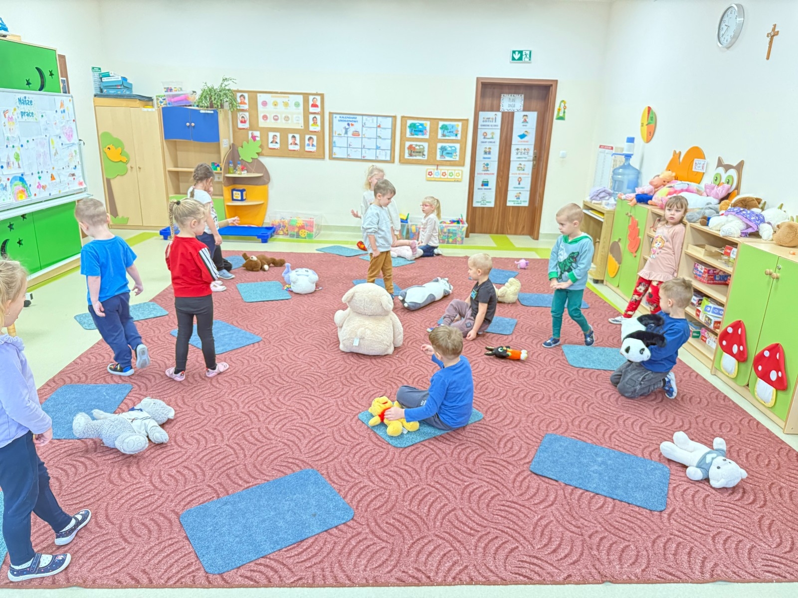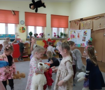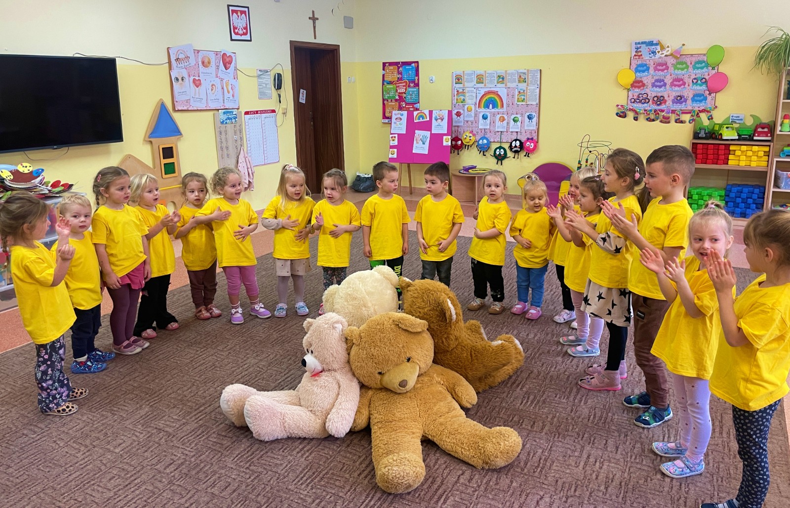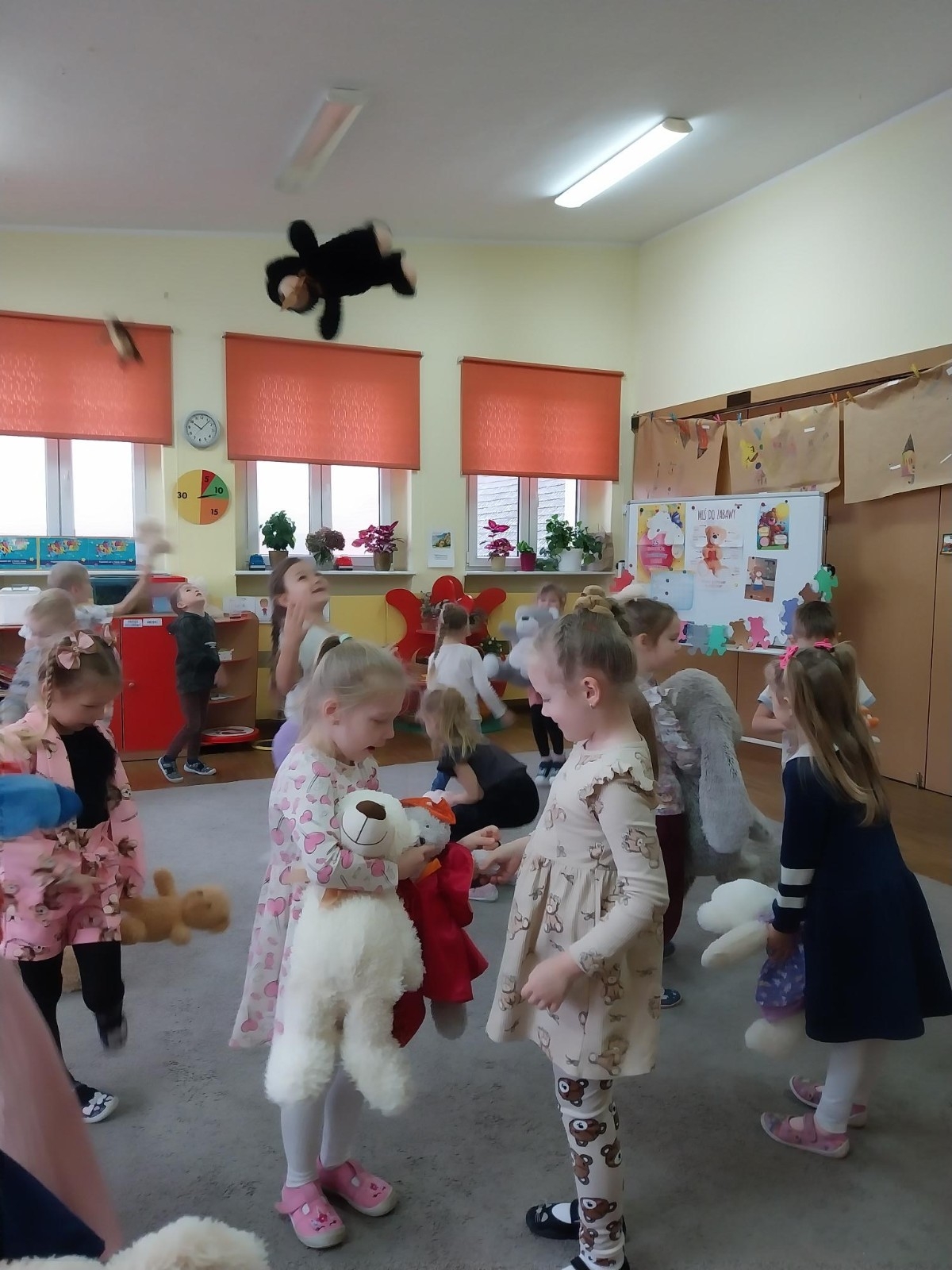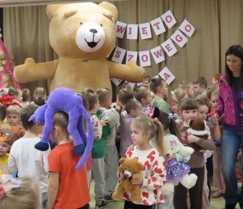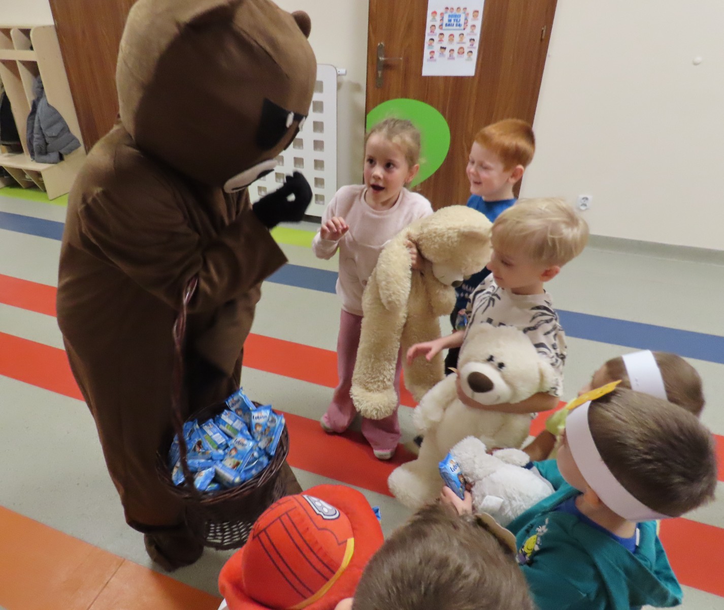 Dnia 25 listopada w naszym przedszkolu odbyła się radosna uroczystość z okazji Święta Pluszowego Misia. Tego dnia przedszkolaki przyszły do przedszkola ze swoimi ukochanymi pluszakami, które towarzyszyły im podczas całej zabawy. Uroczystość rozpoczęła się od przywitania dzieci z dużymi Pluszowymi Misiami, a wychowawcy grup przybliżyły dzieciom historię pluszowego misia oraz to, dlaczego właśnie to on stał się symbolem przyjaźni i bezpieczeństwa.