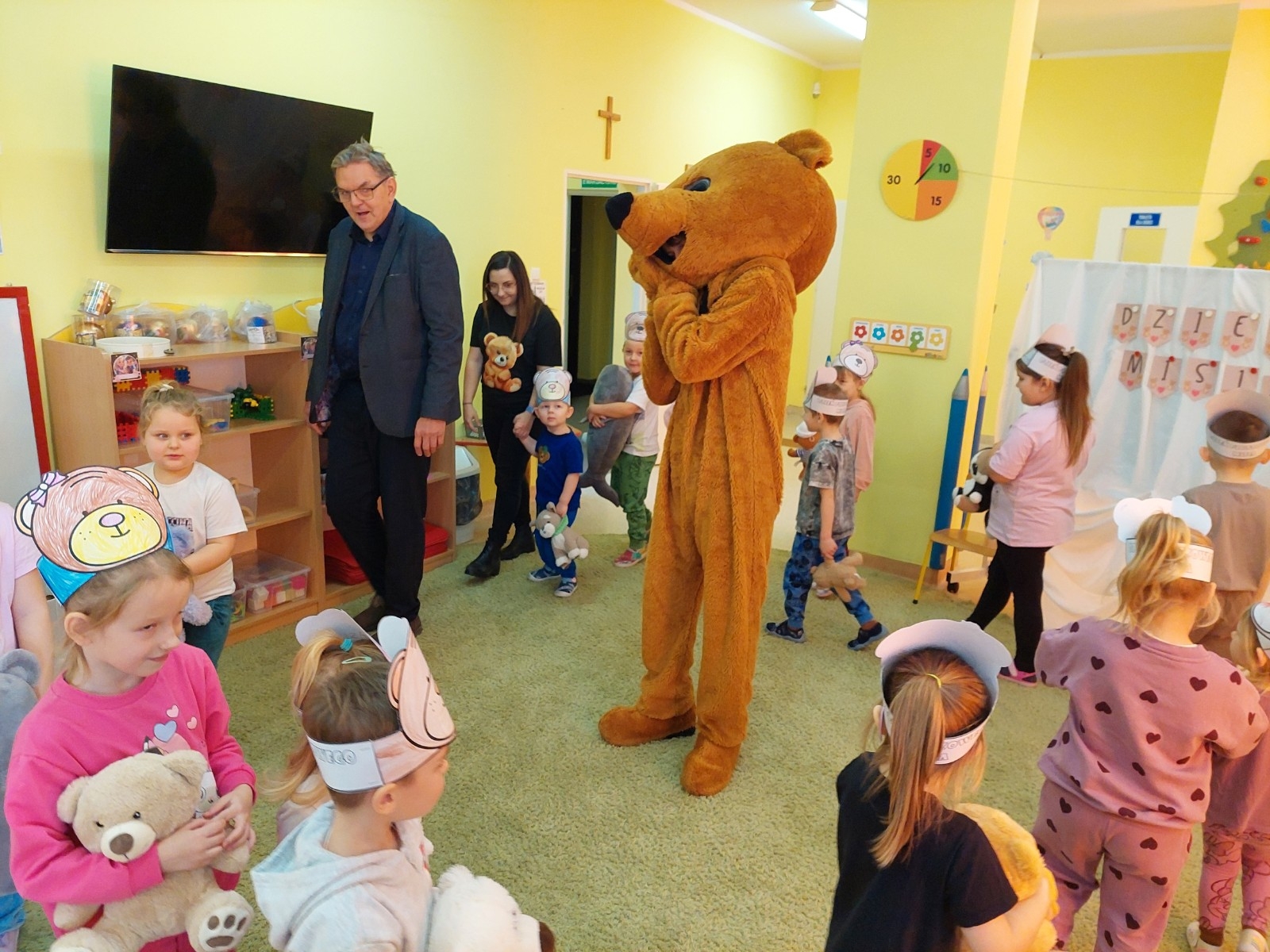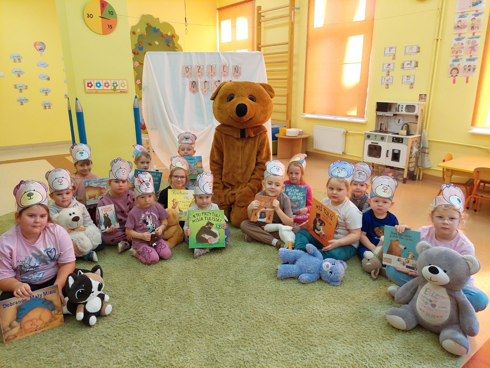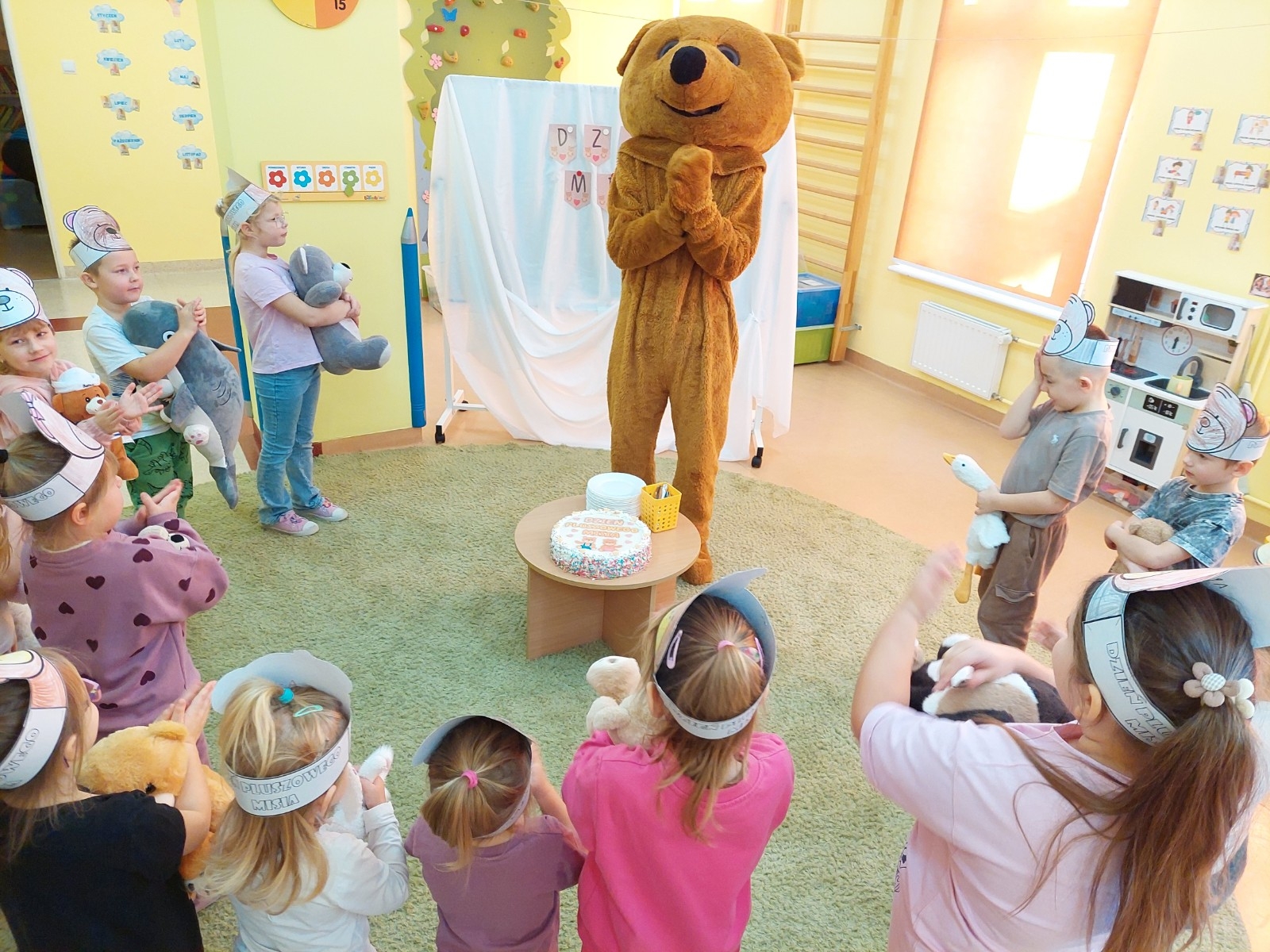 W grupie Koziołka Matołka odbyły się wyjątkowe obchody Dnia Misia. Już od rana w sali panowała radosna atmosfera, którą dodatkowo podkręciła wizyta niezwykłego gościa — żywej maskotki Misia. Dzieci były zachwycone możliwością przytulenia pluszowego przyjaciela i wspólnej zabawy.