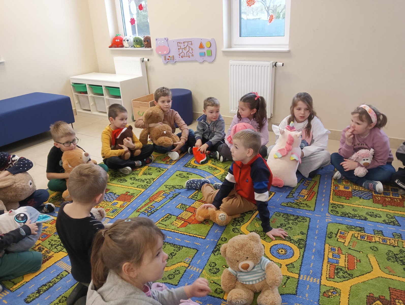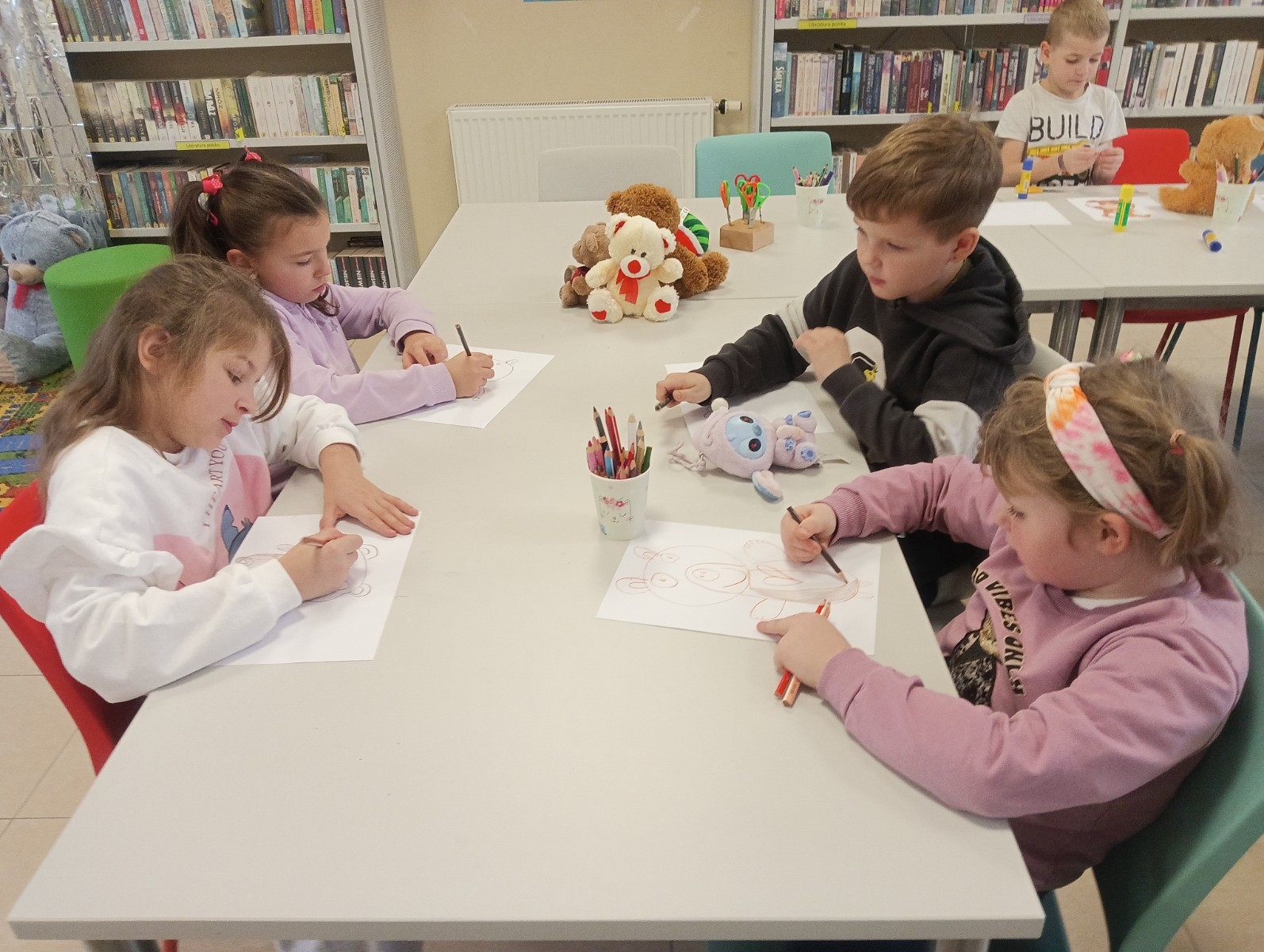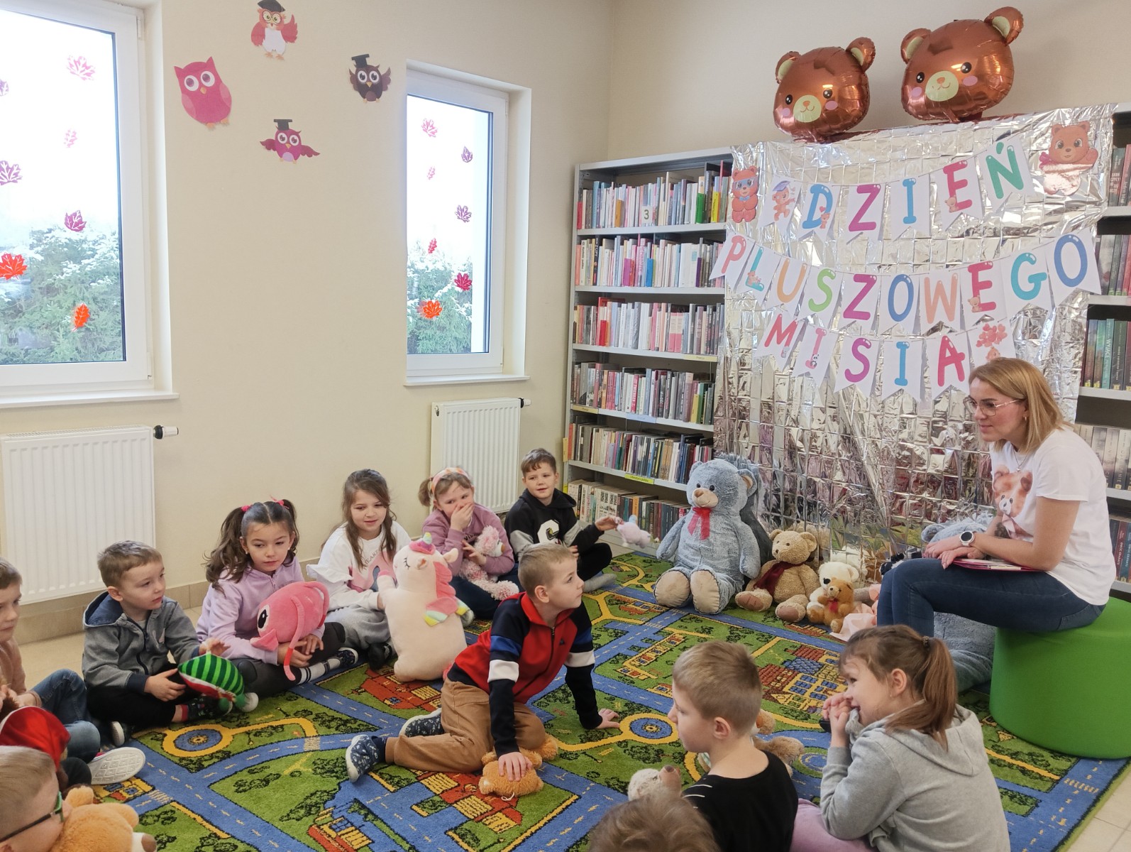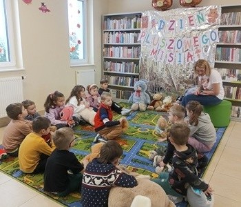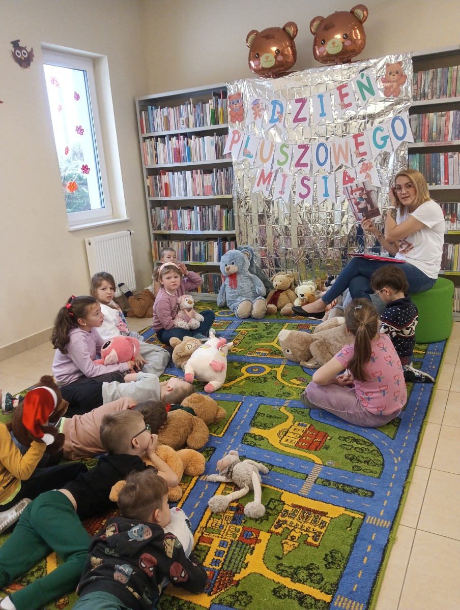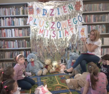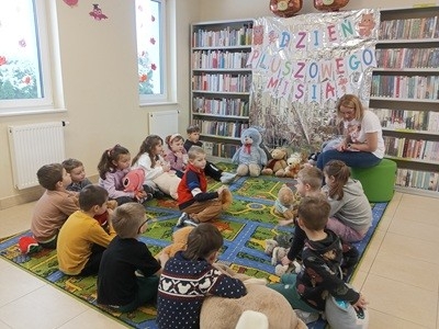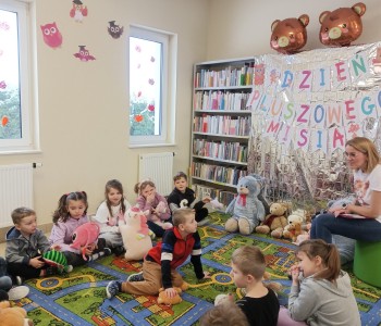 Przedszkolaki z grupy „Myszka Miki” odwiedziły bibliotekę z okazji Dnia Pluszowego Misia. Wizytę rozpoczęły od przedstawienia swoich przytulanek. Następnie rozpoznawaliśmy misie z różnych bajek i jedną z nich wysłuchaliśmy - były to "Wędrówki Misia Uszatka" Czesława Janczarskiego.