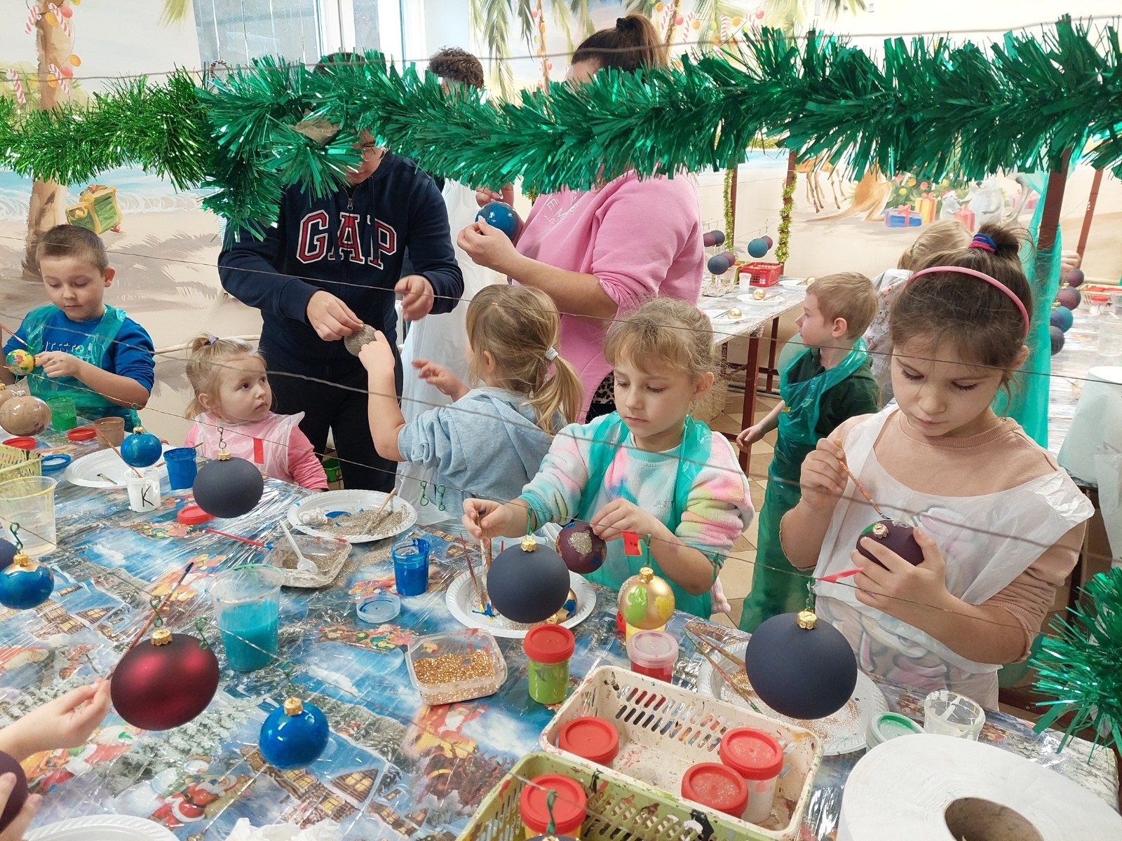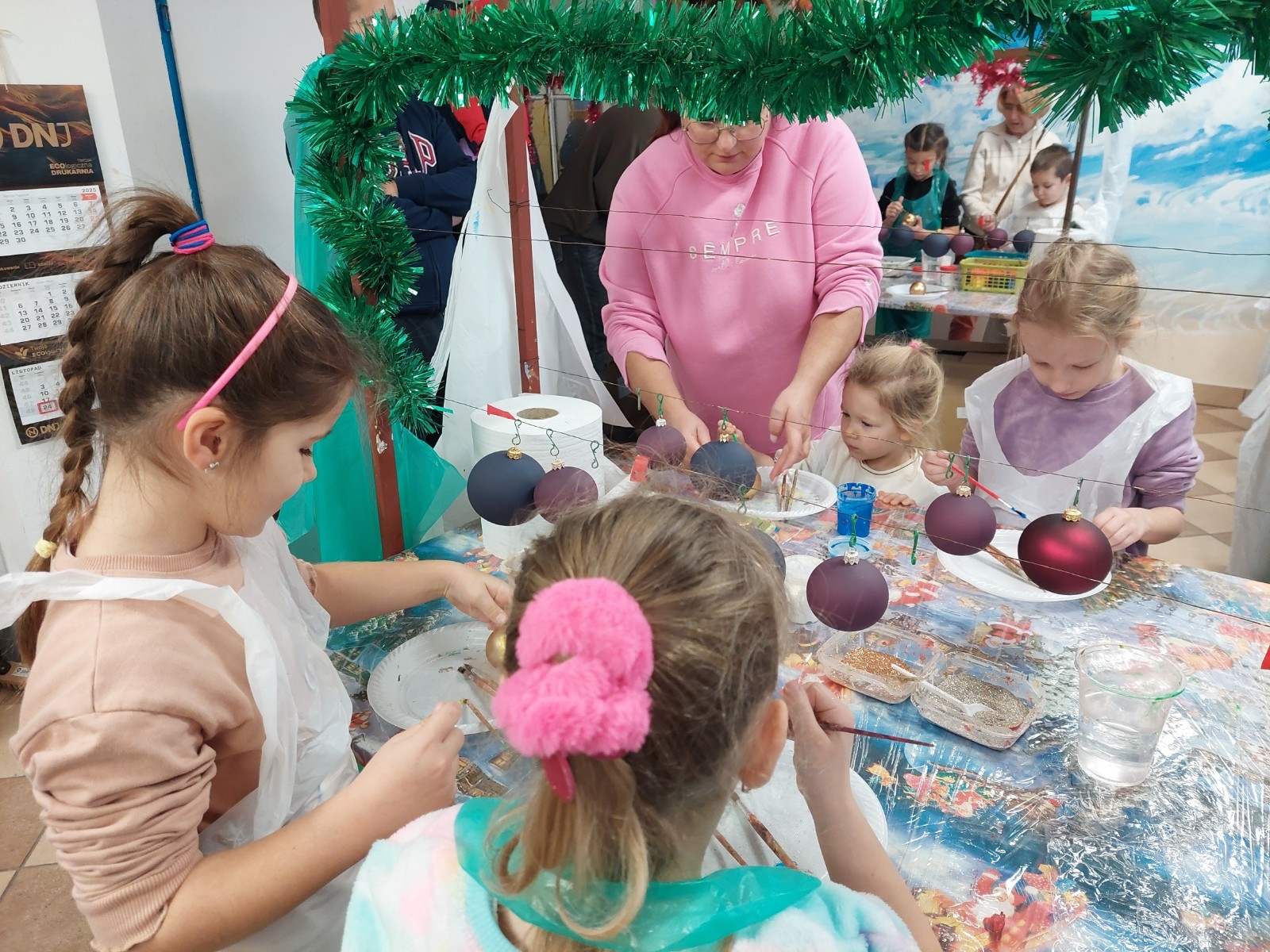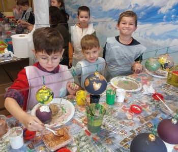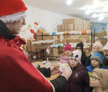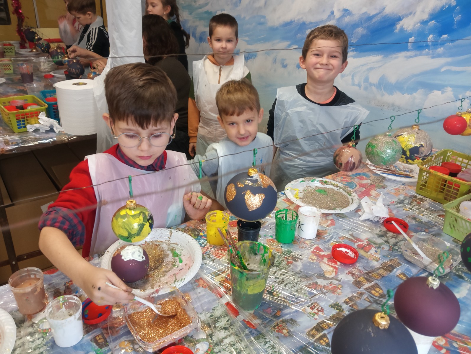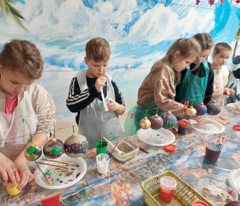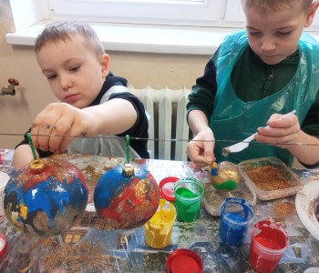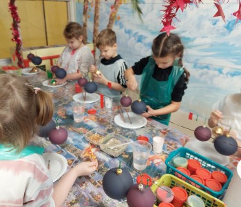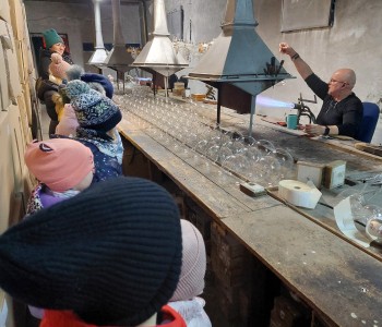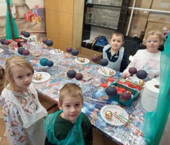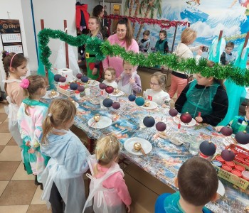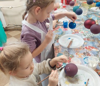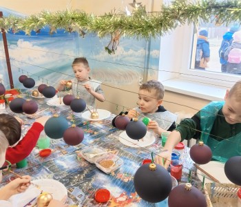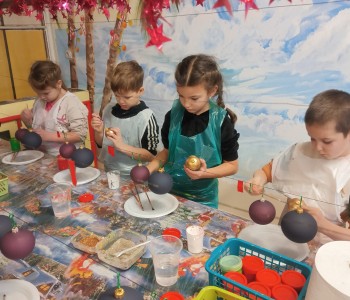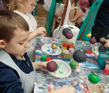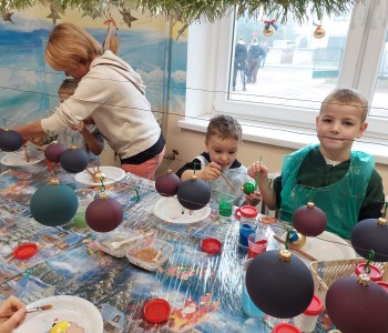 Podczas zwiedzania przedszkolaki mogły krok po kroku zobaczyć, jak tworzy się bombki — od dmuchania szklanych rurek, przez srebrzenie wnętrza, aż po ręczne malowanie i zdobienie. Największe wrażenie zrobiła część artystyczna, gdzie mali goście obserwowali, jak wprawne dłonie dekoratorów zamieniają zwykłą szklaną kulę w prawdziwe świąteczne dzieło sztuki. Dzieci z ogromnym zaangażowaniem wzięły także udział w warsztatach, podczas których samodzielnie ozdabiały własne bombki. Brokat, farby i kolorowe wstążki szybko zamieniły stoły w twórczy, radosny bałagan, a gotowe ozdoby przedszkolaki mogły zabrać do domu jako pamiątkę. Wycieczka do KAD-POL okazała się nie tylko fascynującą przygodą, lecz także okazją do poznania świątecznych tradycji i rozwijania kreatywności. Dzieci wróciły pełne wrażeń, z uśmiechami i własnoręcznie wykonanymi bombkami, które z pewnością ozdobią niejedną choinkę. Anna Kaczmarek-Szostak