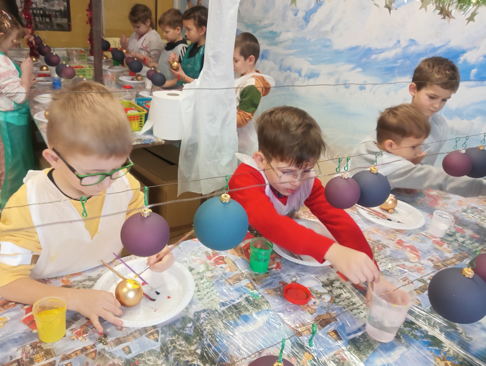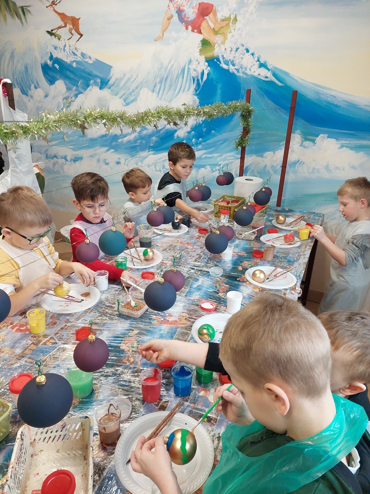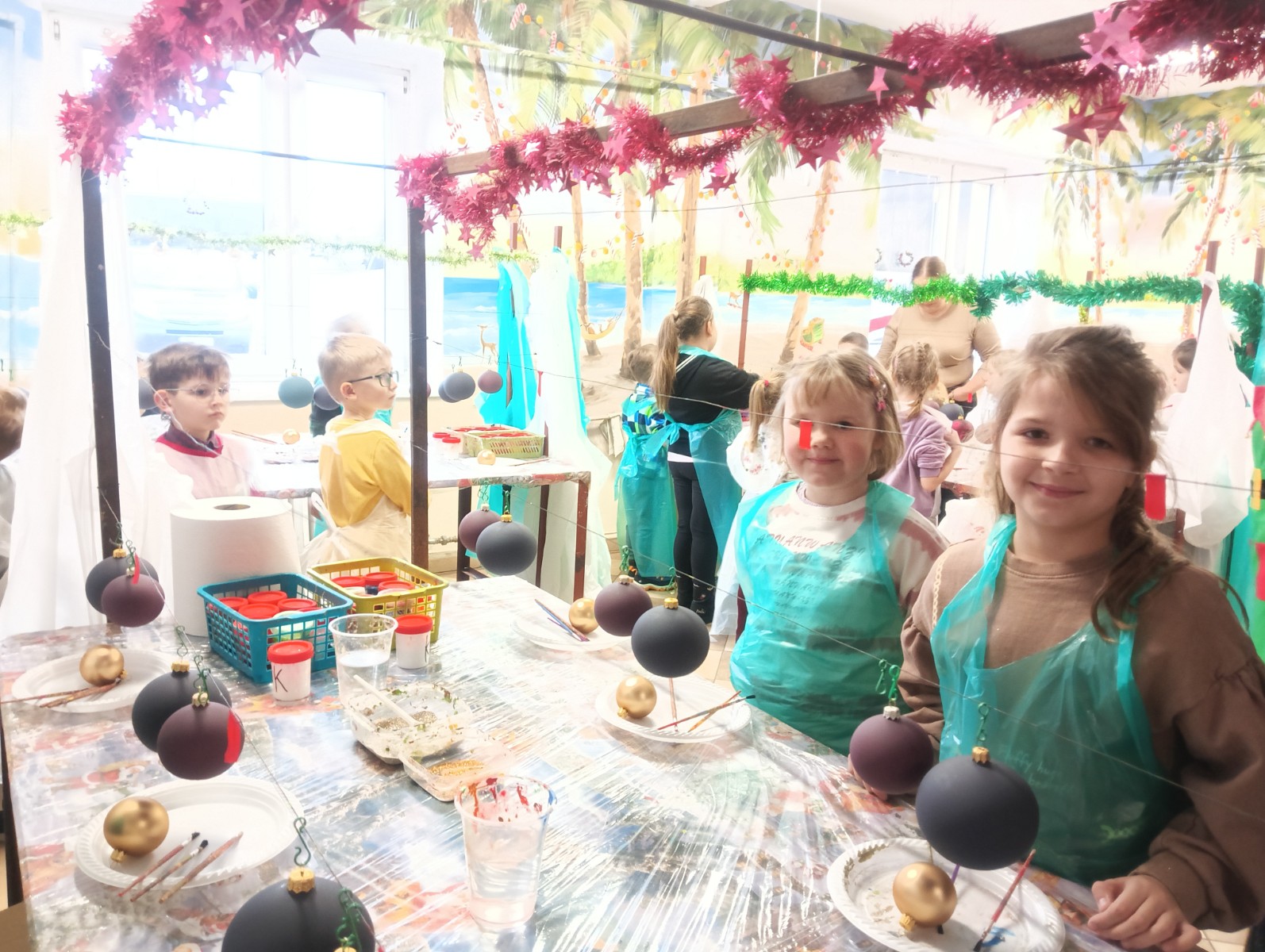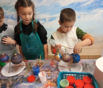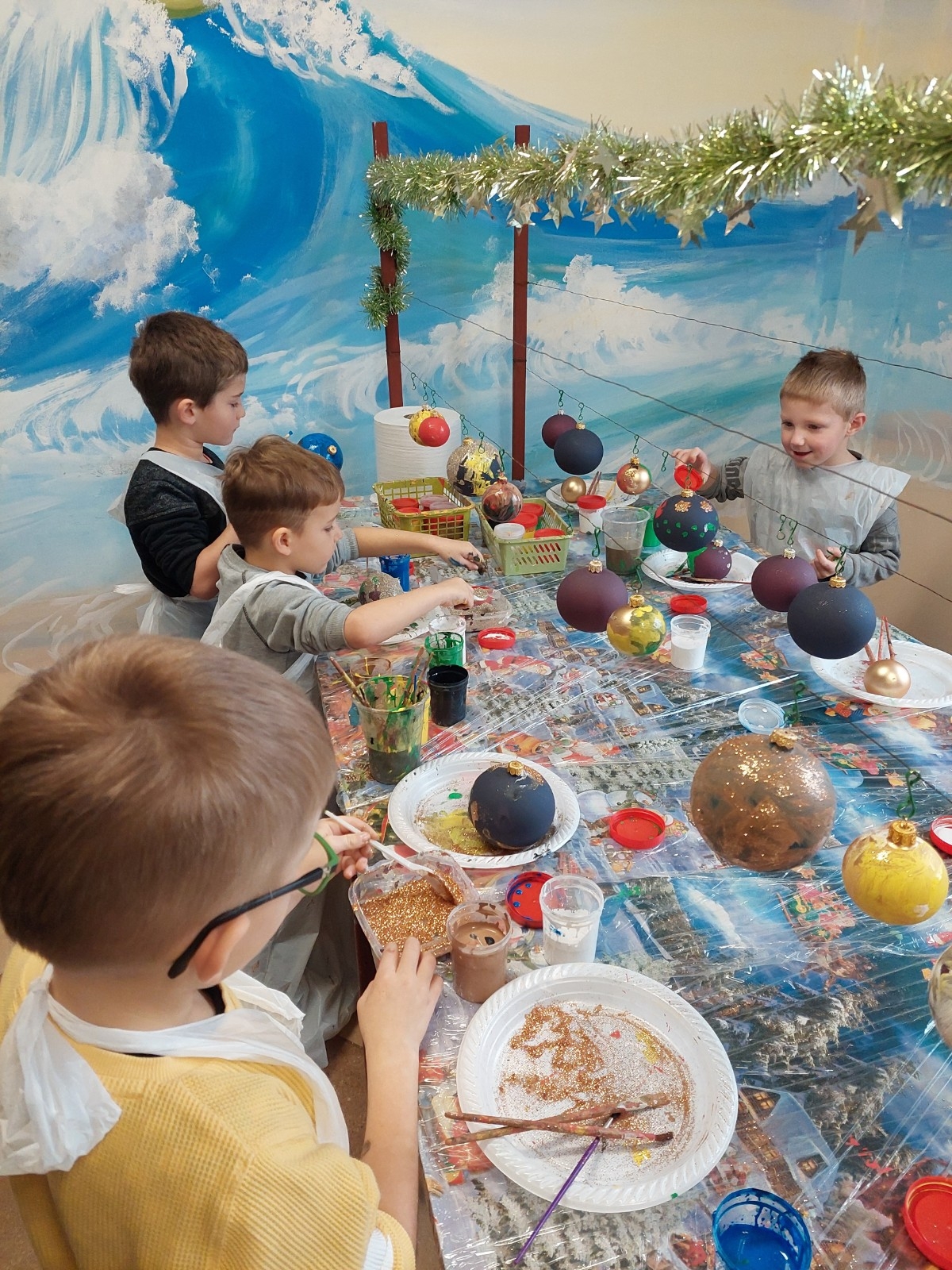 Podczas zwiedzania przedszkolaki mogły krok po kroku zobaczyć, jak tworzy się bombki — od dmuchania szklanych rurek, przez srebrzenie wnętrza, aż po ręczne malowanie i zdobienie. Największe wrażenie zrobiła część artystyczna, gdzie mali goście obserwowali, jak wprawne dłonie dekoratorów zamieniają zwykłą szklaną kulę w prawdziwe świąteczne dzieło sztuki. Dzieci z ogromnym zaangażowaniem wzięły także udział w warsztatach, podczas których samodzielnie ozdabiały własne bombki. Brokat, farby i kolorowe wstążki szybko zamieniły stoły w twórczy, radosny bałagan, a gotowe ozdoby przedszkolaki mogły zabrać do domu jako pamiątkę. Wycieczka do KAD-POL okazała się nie tylko fascynującą przygodą, lecz także okazją do poznania świątecznych tradycji i rozwijania kreatywności. Dzieci wróciły pełne wrażeń, z uśmiechami i własnoręcznie wykonanymi bombkami, które z pewnością ozdobią niejedną choinkę. Anna Kaczmarek-Szostak
