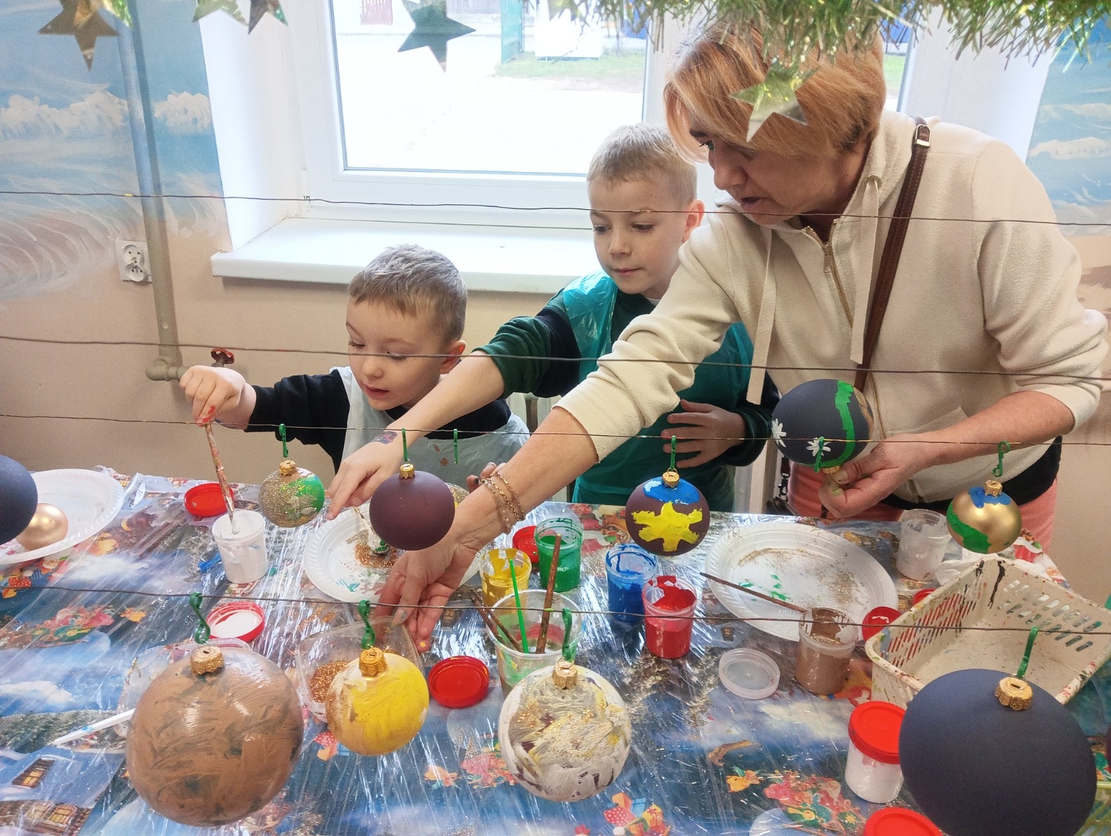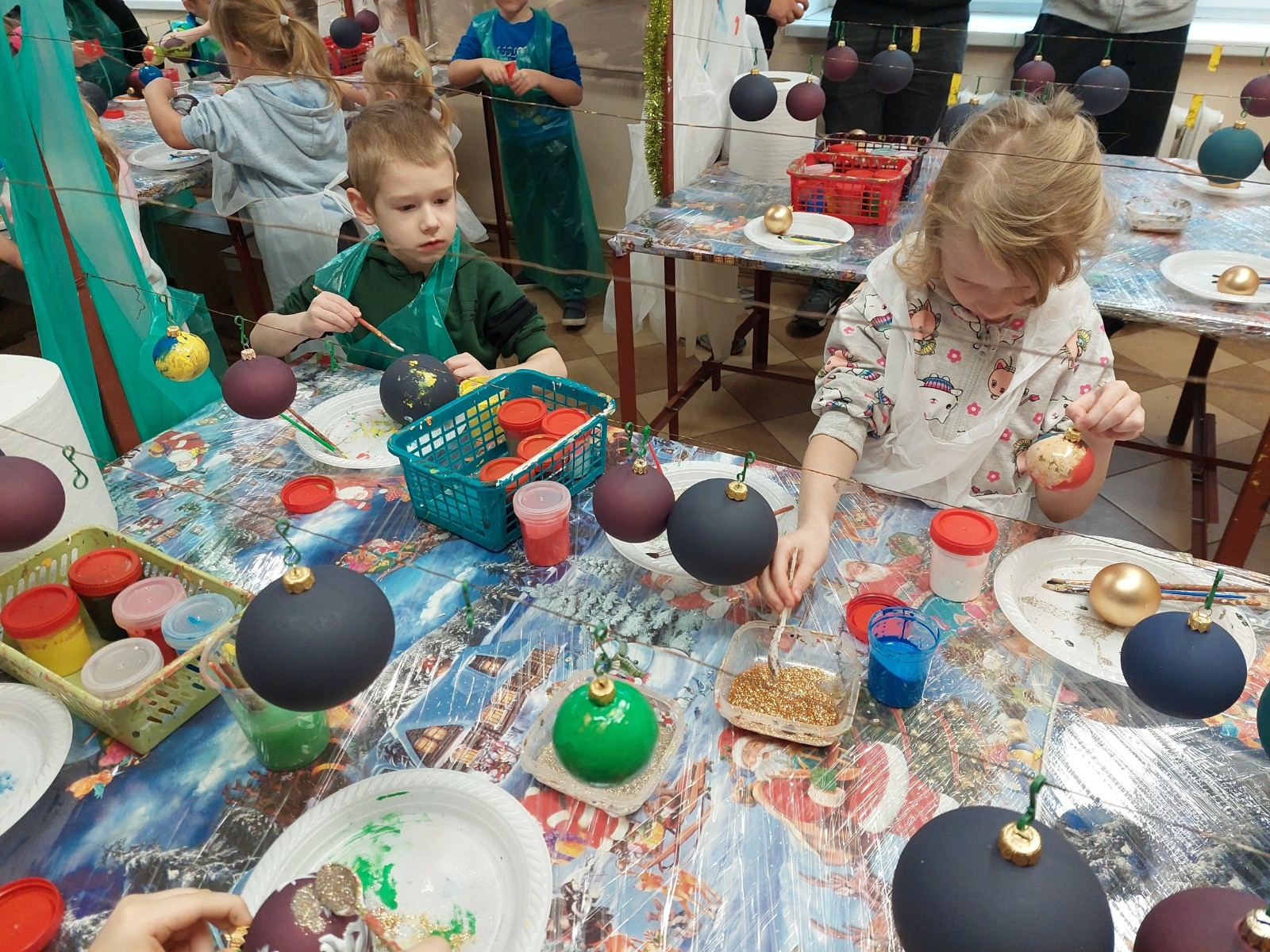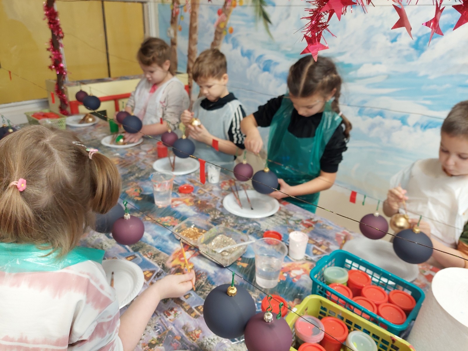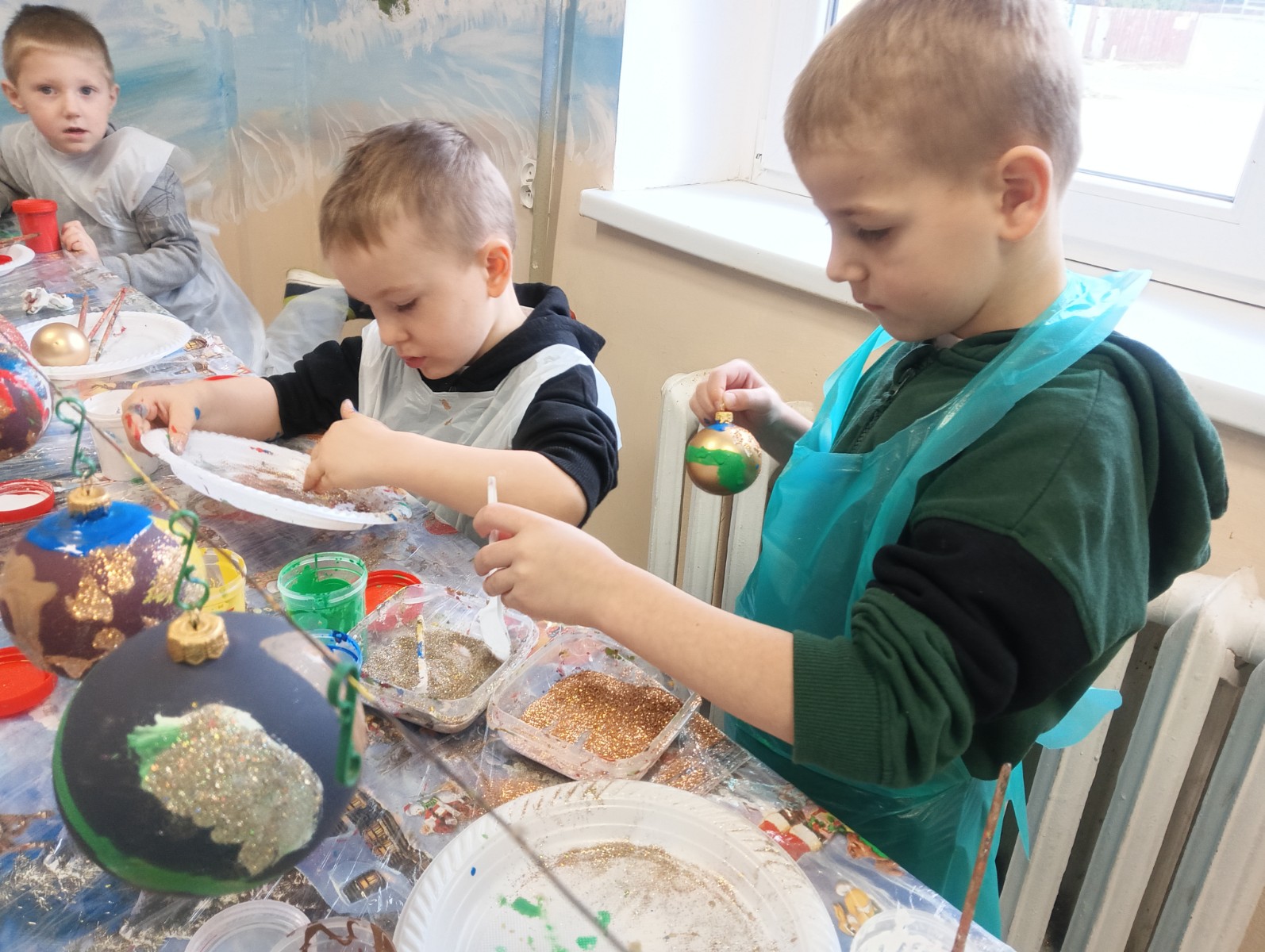 Podczas zwiedzania przedszkolaki mogły krok po kroku zobaczyć, jak tworzy się bombki — od dmuchania szklanych rurek, przez srebrzenie wnętrza, aż po ręczne malowanie i zdobienie. Największe wrażenie zrobiła część artystyczna, gdzie mali goście obserwowali, jak wprawne dłonie dekoratorów zamieniają zwykłą szklaną kulę w prawdziwe świąteczne dzieło sztuki. Dzieci z ogromnym zaangażowaniem wzięły także udział w warsztatach, podczas których samodzielnie ozdabiały własne bombki. Brokat, farby i kolorowe wstążki szybko zamieniły stoły w twórczy, radosny bałagan, a gotowe ozdoby przedszkolaki mogły zabrać do domu jako pamiątkę. Wycieczka do KAD-POL okazała się nie tylko fascynującą przygodą, lecz także okazją do poznania świątecznych tradycji i rozwijania kreatywności. Dzieci wróciły pełne wrażeń, z uśmiechami i własnoręcznie wykonanymi bombkami, które z pewnością ozdobią niejedną choinkę. Anna Kaczmarek-Szostak