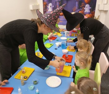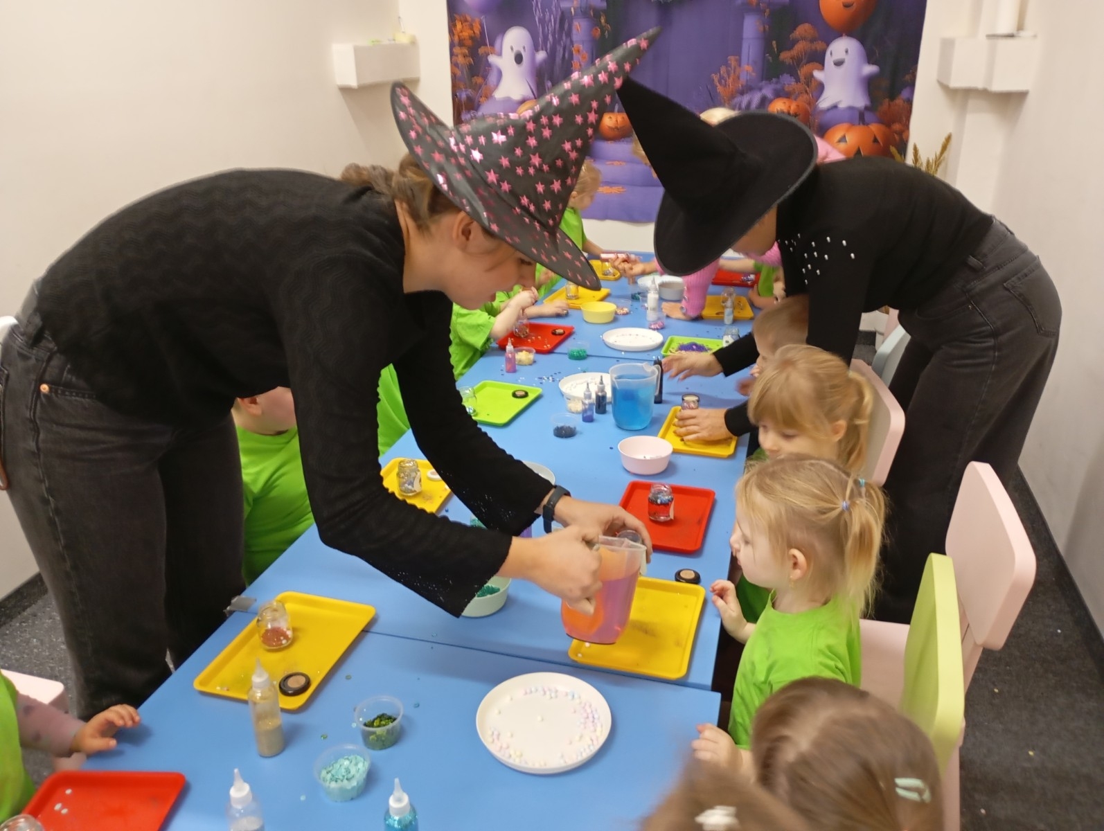 Dzieci były witane przez Czarodziejki i kolorowe dekoracje. Sala została podzielona na strefy, każda z nich przygotowana z myślą o różnych atrakcjach oraz grach. Atmosfera była pełna radości, a uśmiech nie schodził z twarzy najmłodszych uczestników. Dzień rozpoczął się od wspólnego wróżenia z magicznych przedmiotów. Przedszkolaki chętnie próbowały swoich sił w laniu wosku przez dziurkę od klucza, przekładaniu bucików oraz zgadywaniu przyszłości na podstawie losowo wybranych kart. Z uśmiechem odkrywały, jakie niespodzianki szykuje im przyszłość. Każda wróżba miała swój urok, wywoływała salwy śmiechu oraz zaciekawienia. Najmłodsi miały także okazję wziąć udział w warsztatach plastycznych, podczas których własnoręcznie tworzyły magiczne eliksiry: miłości i szczęścia. To świetna okazja, by rozwijać wyobraźnię i zdolności manualne, a jednocześnie mieć pamiątkę z tego wyjątkowego dnia. Po wróżbach przyszedł czas na swobodną zabawę w sali Monkey Park, gdzie dzieci mogły korzystać ze zjeżdżalni, torów przeszkód oraz basenów z kulkami. Zabawy ruchowe przeplatały się z chwilami odpoczynku, wspólnego poczęstunku – nikt nie miał czasu się nudzić! Ten dzień był pełen pozytywnej energii, magii i uśmiechu. Andrzejkowe Czary Mary w Monkey Park na długo pozostaną w pamięci Smerfów i Krasnali, którzy już nie mogą doczekać się kolejnych wspólnych przygód. Kinga Kądziołka