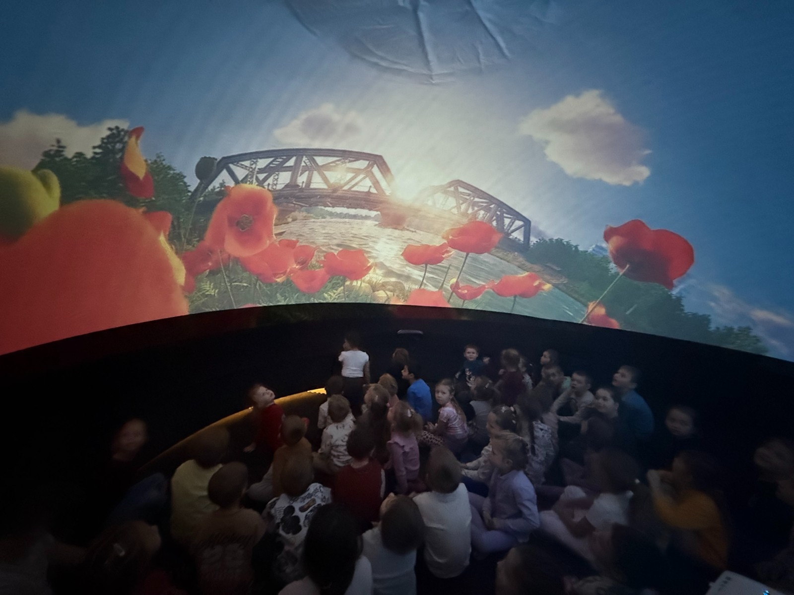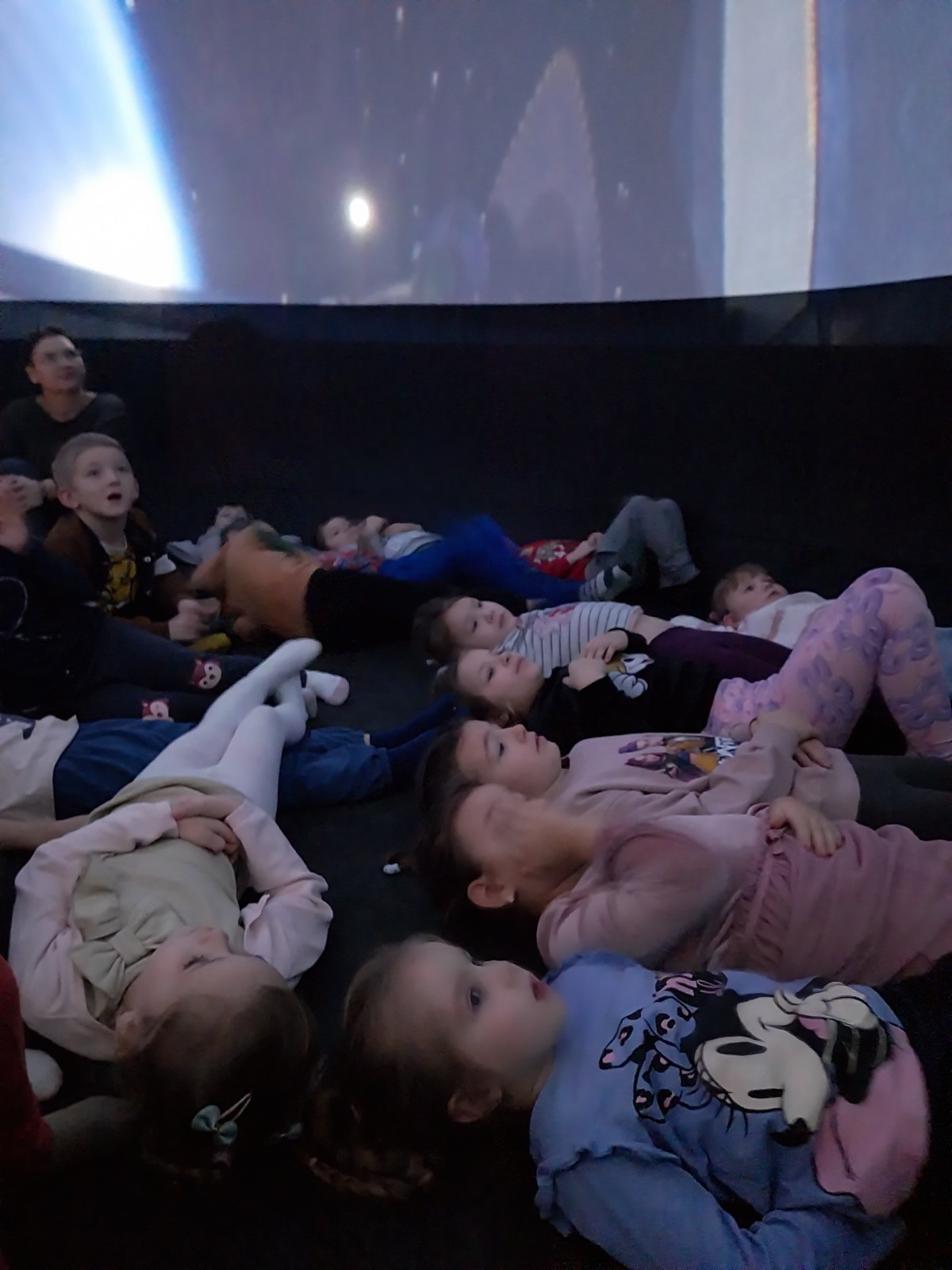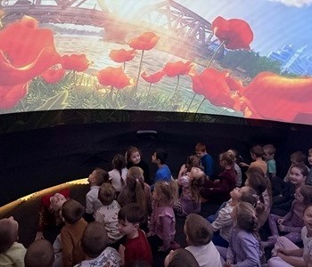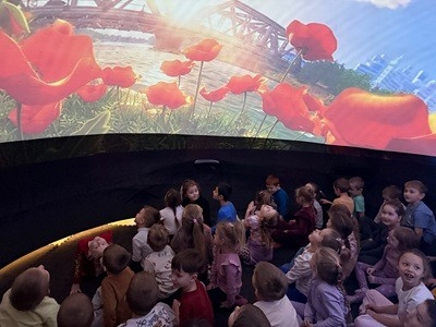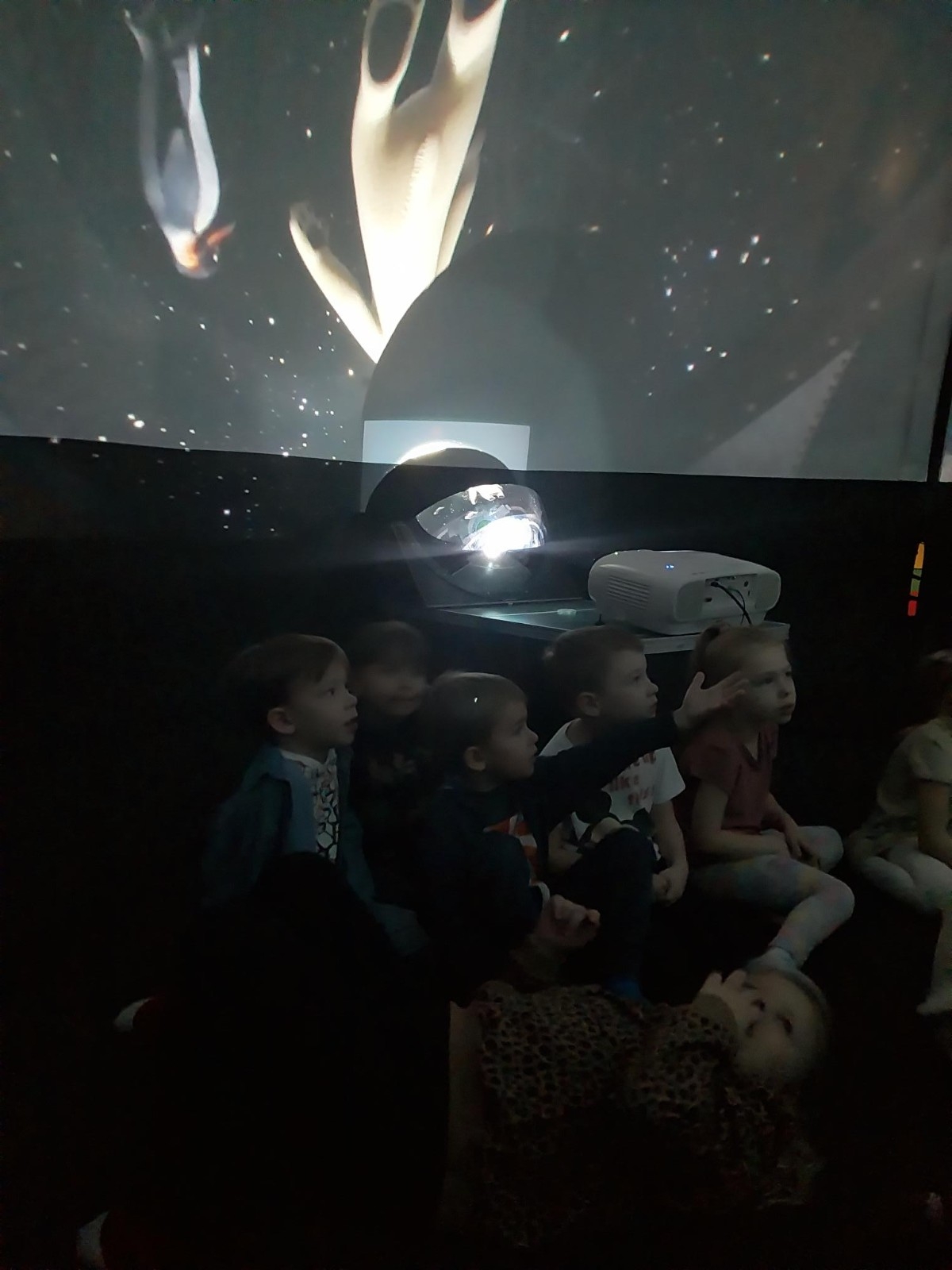 Oglądanie filmów w kinie sferycznym było dla dzieci okazją do odbycia cudownych podróży w niezwykły świat. Było to ciekawe i niezwykłe wydarzenie , które długo zapisze się w pamięci przedszkolaków.