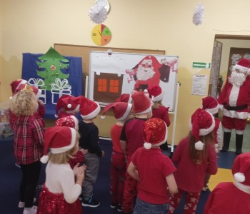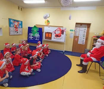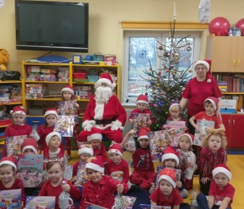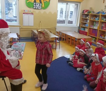 Podczas spotkania z Mikołajem dzieci zaśpiewały piosenki, wyrecytowały wierszyk oraz zatańczyły dla Mikołaja. Mikołaj wręczył każdemu dziecku upominek i musiał się pożegnać ponieważ czekały na niego inne dzieci, a my mamy nadzieję, że za rok znowu nas odwiedzi.