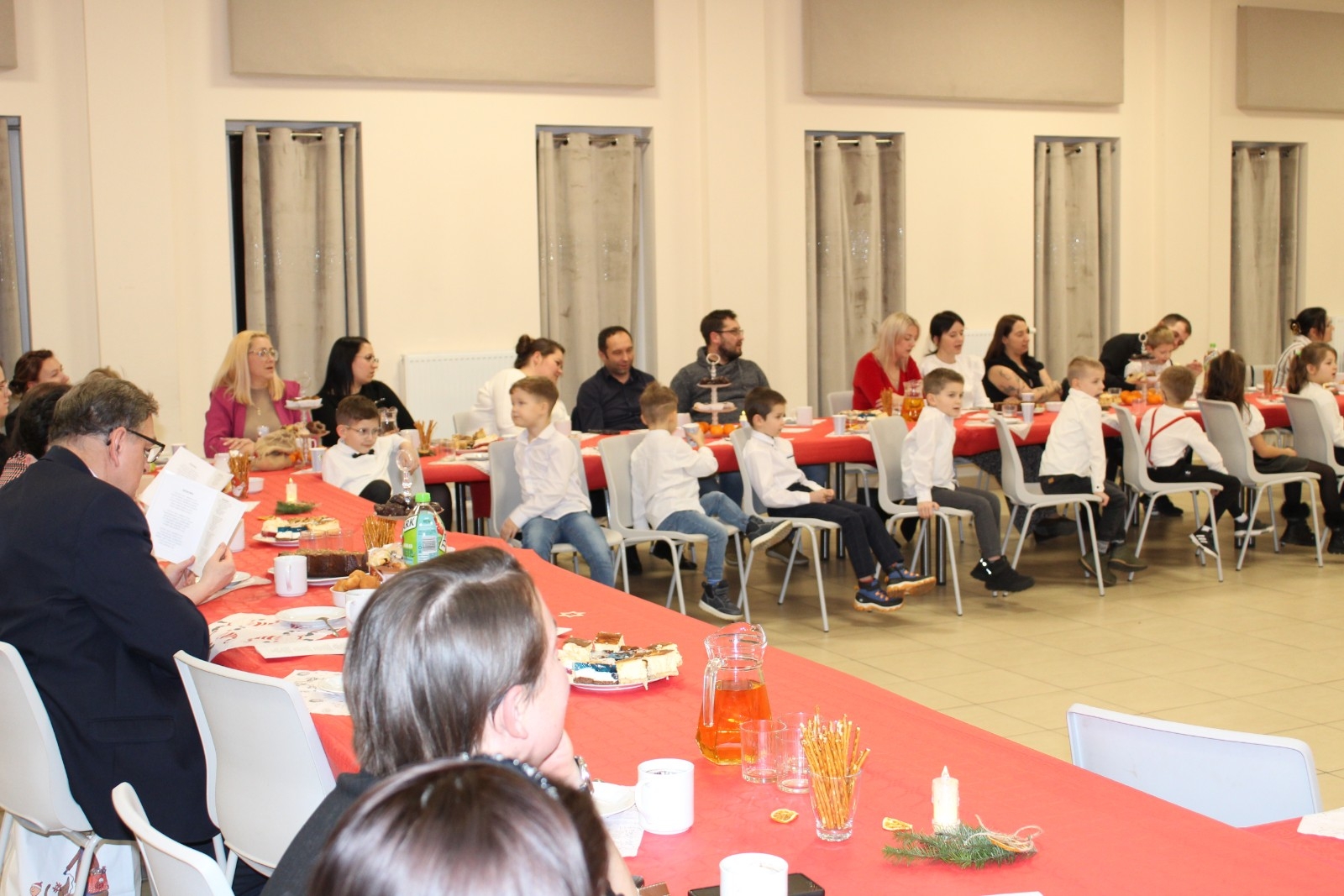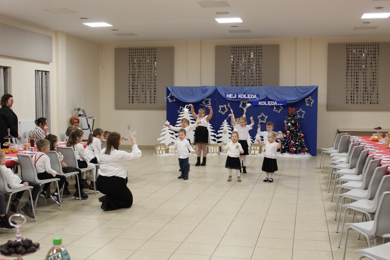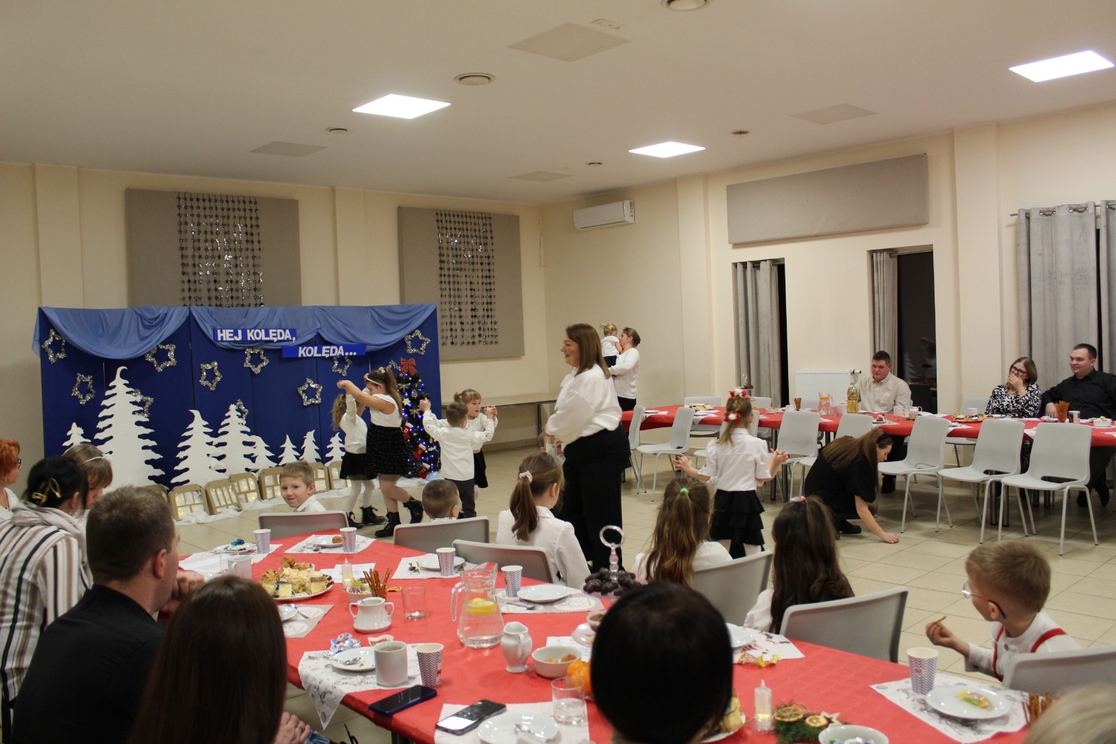 Podczas wydarzenia dzieci zaprezentowały piękny program artystyczny, w którym nie zabrakło tradycyjnych kolęd i pastorałek. Mali artyści z ogromnym zaangażowaniem i uśmiechem na twarzach wprowadzili wszystkich obecnych w bożonarodzeniowy nastrój, za co zostali nagrodzeni gromkimi brawami. Wśród zaproszonych gości znaleźli się: Przewodniczący Rady Miasta i Gminy Margonin – pan Jerzy Staniewski, Sołtys Wsi Lipiny – pani Magdalena Wysogląd, Dyrektor Przedszkola Samorządowego w Margoninie – pani Katarzyna Panek. Wieczór kolęd był nie tylko artystycznym wydarzeniem, ale przede wszystkim czasem spotkania, rozmów i budowania więzi między dziećmi, rodzicami oraz zaproszonymi gośćmi.
