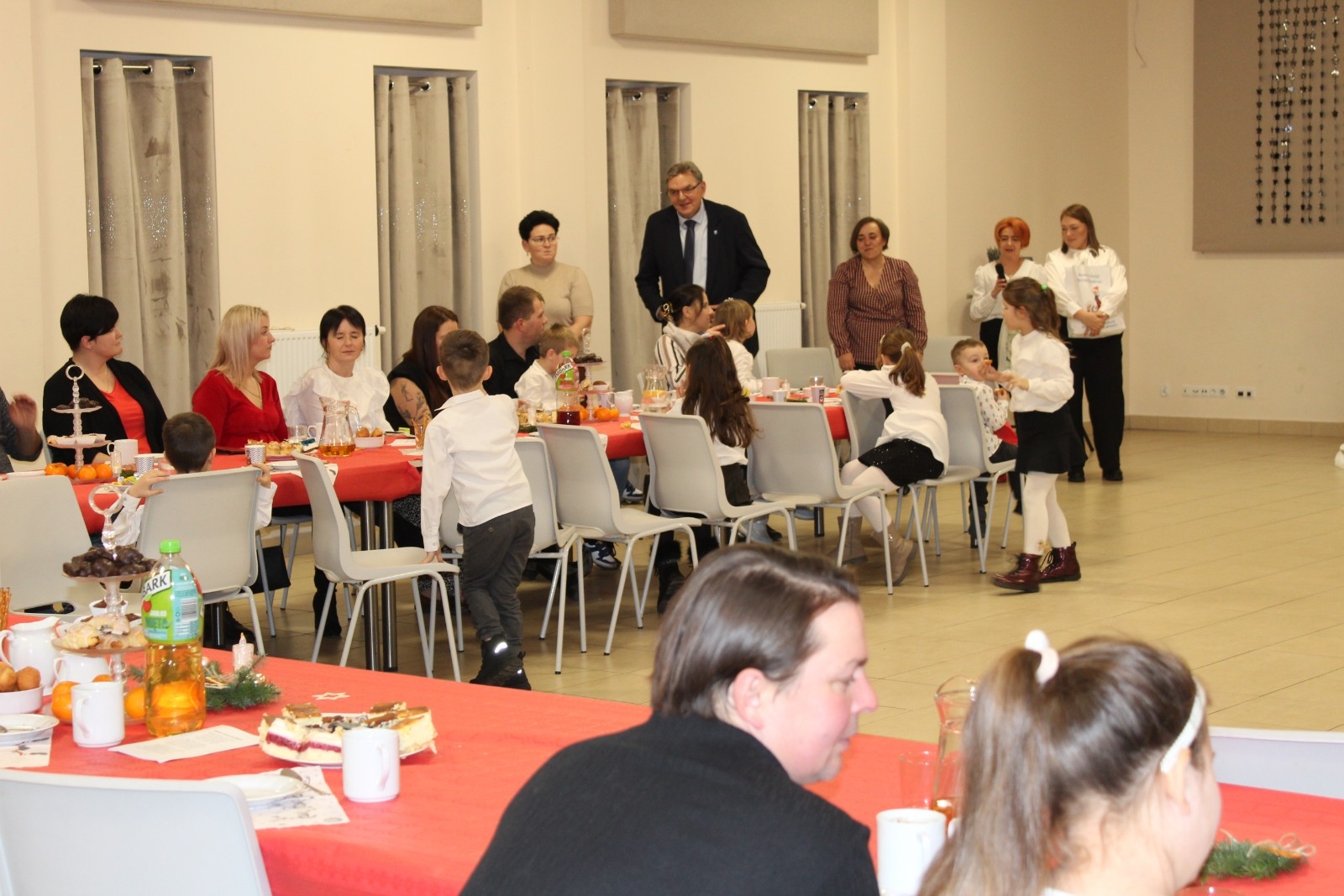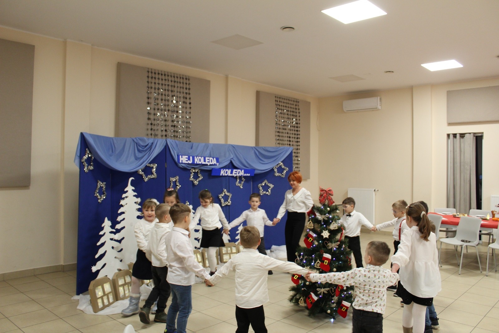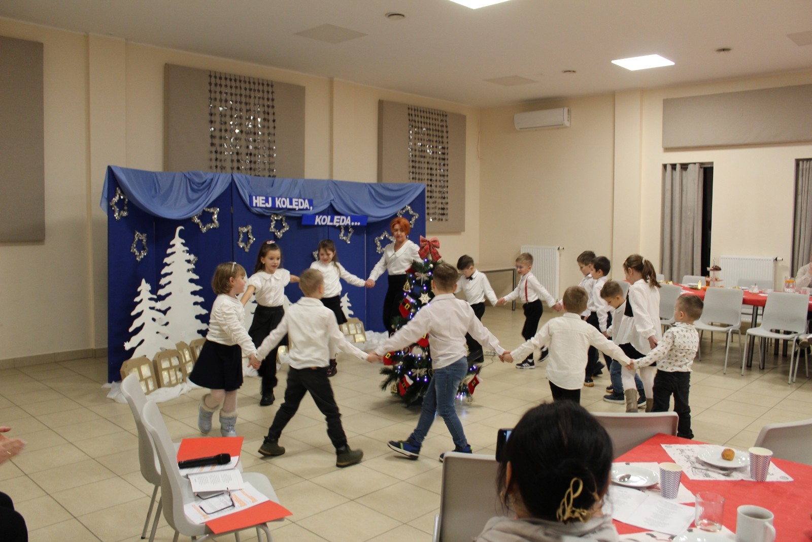 Podczas wydarzenia dzieci zaprezentowały piękny program artystyczny, w którym nie zabrakło tradycyjnych kolęd i pastorałek. Mali artyści z ogromnym zaangażowaniem i uśmiechem na twarzach wprowadzili wszystkich obecnych w bożonarodzeniowy nastrój, za co zostali nagrodzeni gromkimi brawami. Wśród zaproszonych gości znaleźli się: Przewodniczący Rady Miasta i Gminy Margonin – pan Jerzy Staniewski, Sołtys Wsi Lipiny – pani Magdalena Wysogląd, Dyrektor Przedszkola Samorządowego w Margoninie – pani Katarzyna Panek. Wieczór kolęd był nie tylko artystycznym wydarzeniem, ale przede wszystkim czasem spotkania, rozmów i budowania więzi między dziećmi, rodzicami oraz zaproszonymi gośćmi.