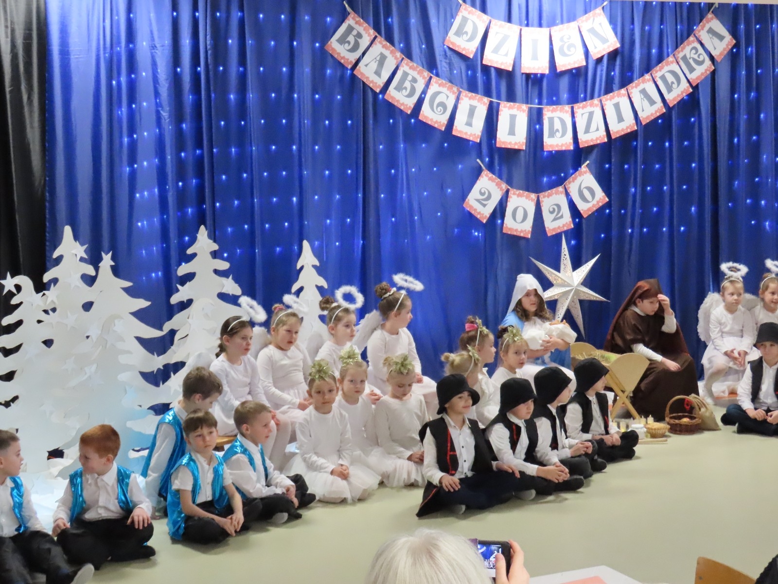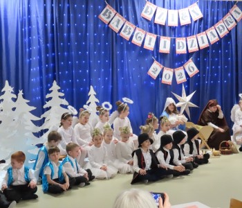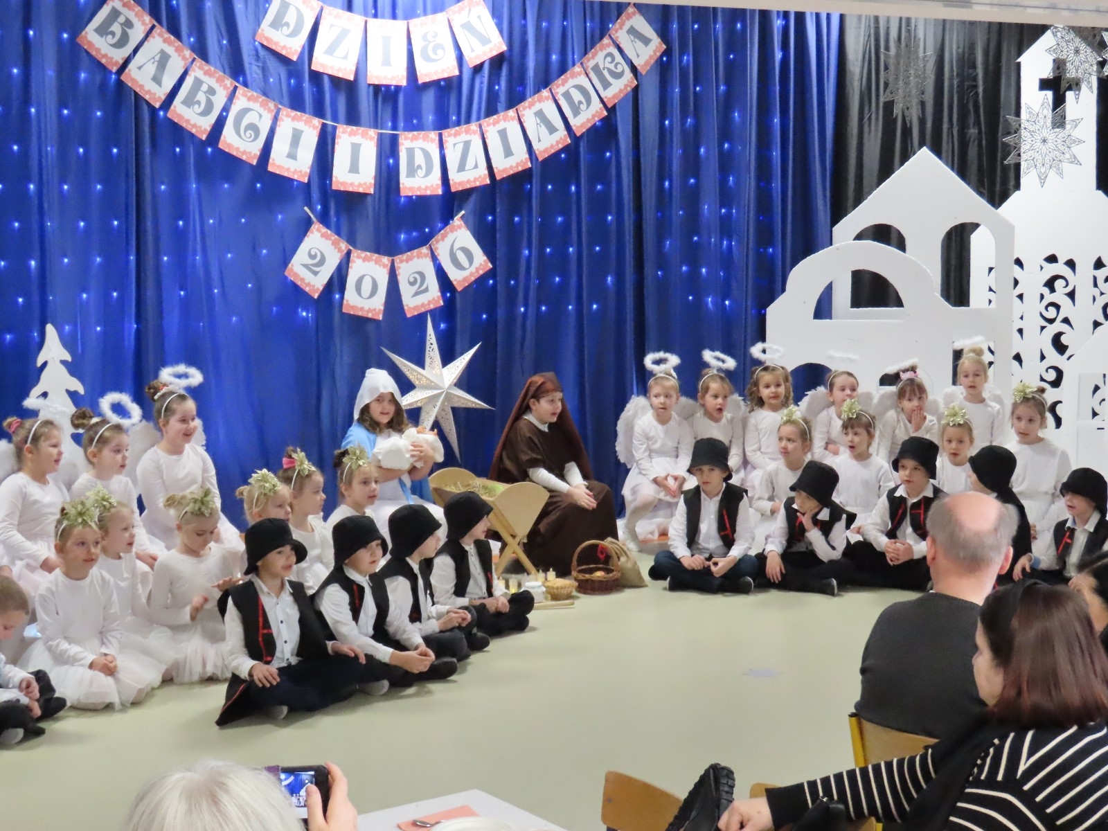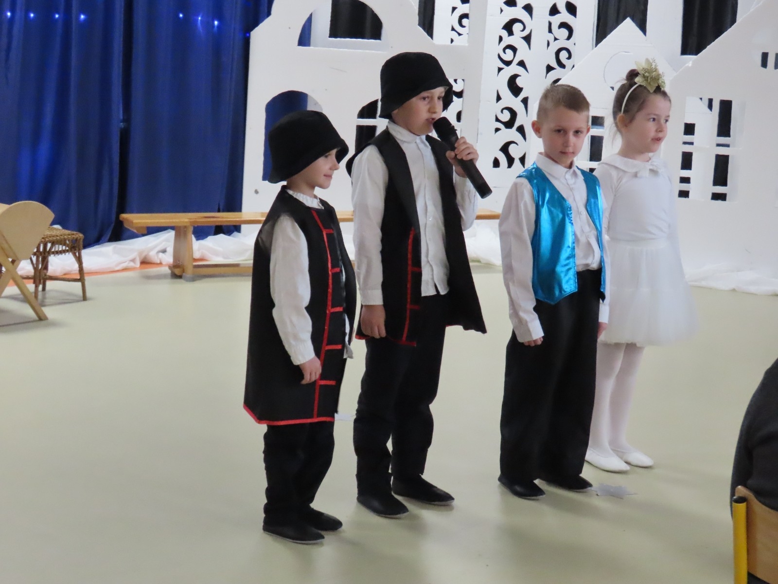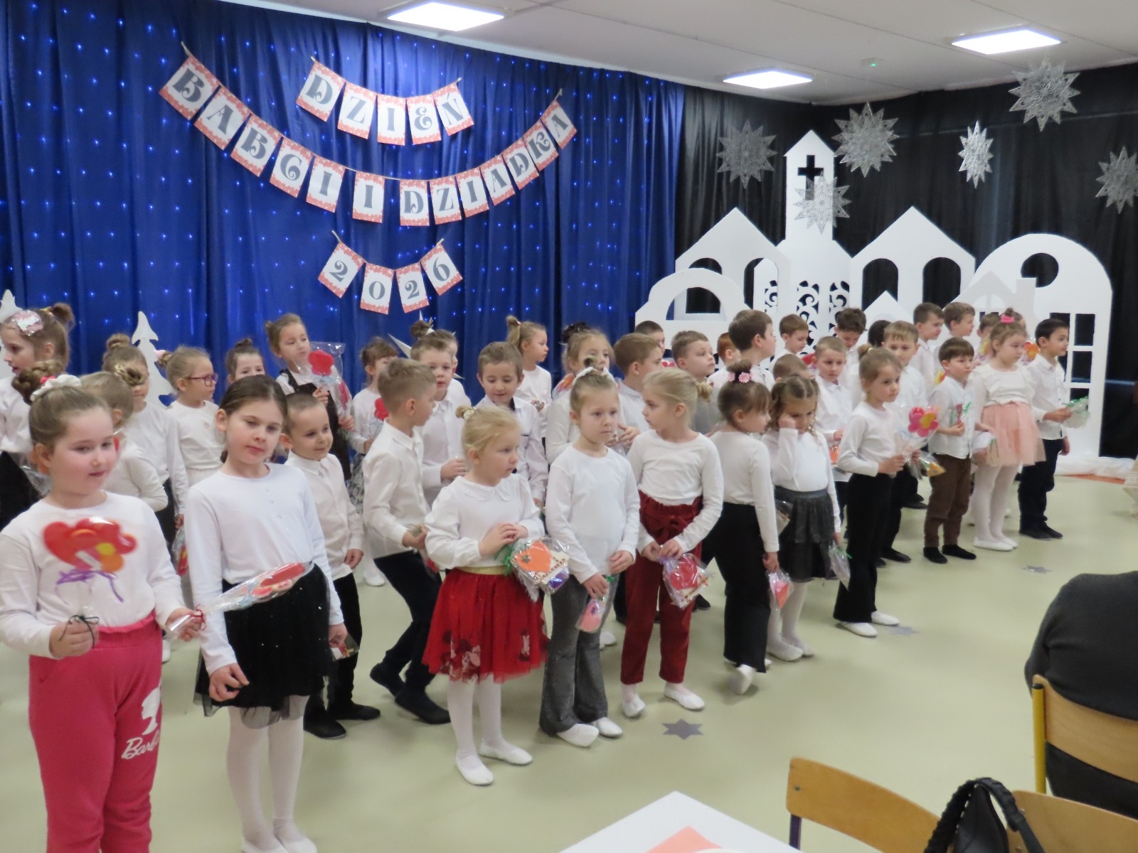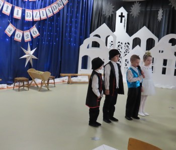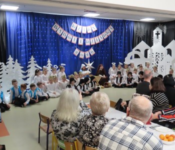 Przedszkolacy zaprezentowali Jasełka pt. „Historia Bożego Narodzenia”, wprowadzając wszystkich w podniosły i ciepły nastrój kolędowania. Nie zabrakło również pięknych wierszy oraz życzeń skierowanych do ukochanych członków rodziny. Po części artystycznej dzieci wręczyły Babciom i Dziadkom własnoręcznie wykonane upominki. Następnie wszyscy uczestnicy spotkania zostali zaproszeni na wspólny poczęstunek przygotowany przez Rodziców. Dziękujemy Rodzicom za pomoc w organizacji uroczystości. Babciom i Dziadkom życzymy dużo zdrowia, szczęścia, radości oraz spełnienia małych i dużych marzeń.