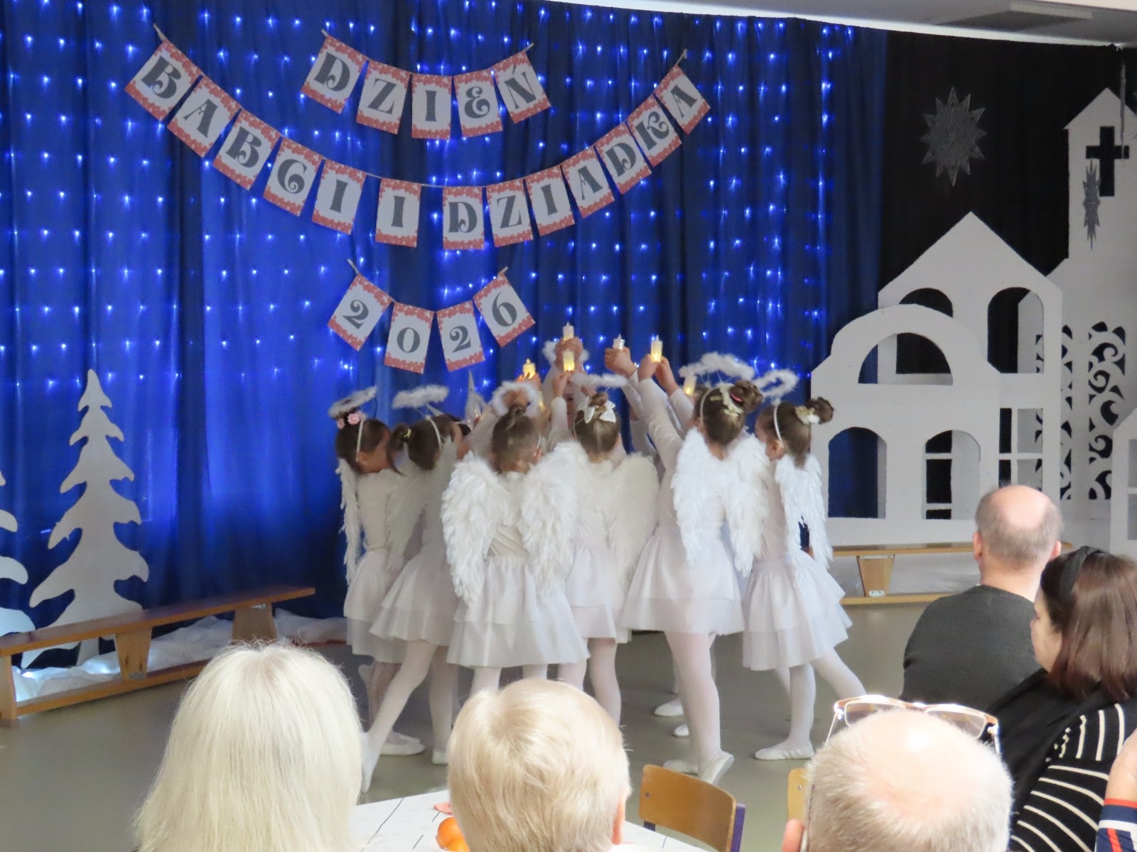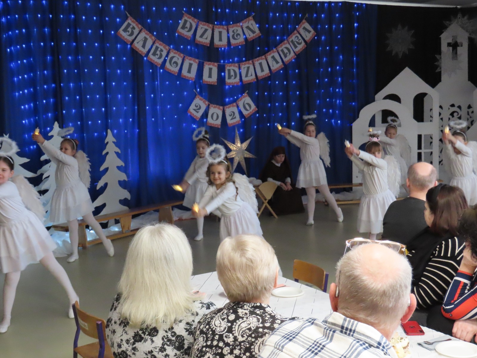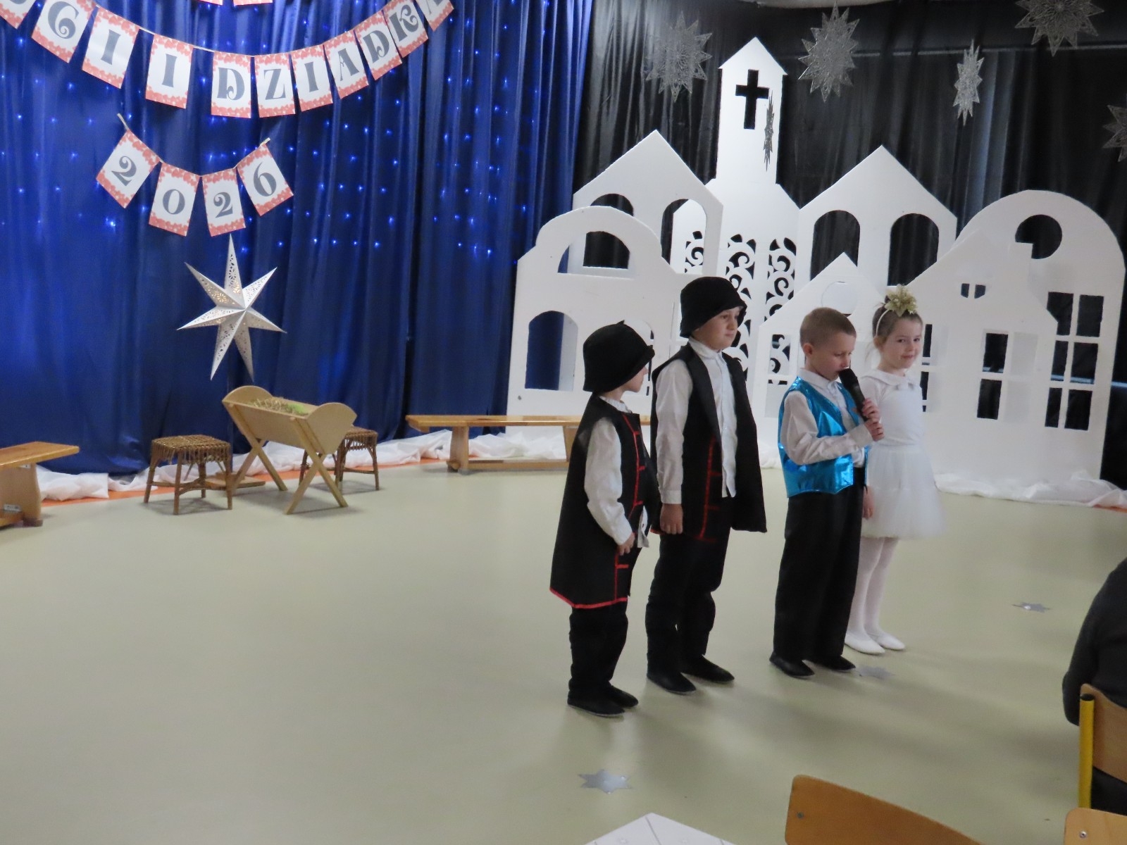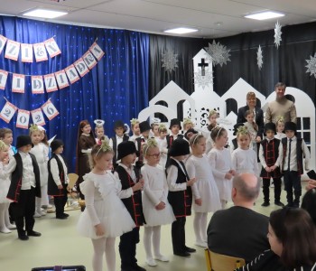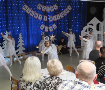 Przedszkolacy zaprezentowali Jasełka pt. „Historia Bożego Narodzenia”, wprowadzając wszystkich w podniosły i ciepły nastrój kolędowania. Nie zabrakło również pięknych wierszy oraz życzeń skierowanych do ukochanych członków rodziny. Po części artystycznej dzieci wręczyły Babciom i Dziadkom własnoręcznie wykonane upominki. Następnie wszyscy uczestnicy spotkania zostali zaproszeni na wspólny poczęstunek przygotowany przez Rodziców. Dziękujemy Rodzicom za pomoc w organizacji uroczystości. Babciom i Dziadkom życzymy dużo zdrowia, szczęścia, radości oraz spełnienia małych i dużych marzeń.