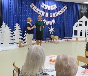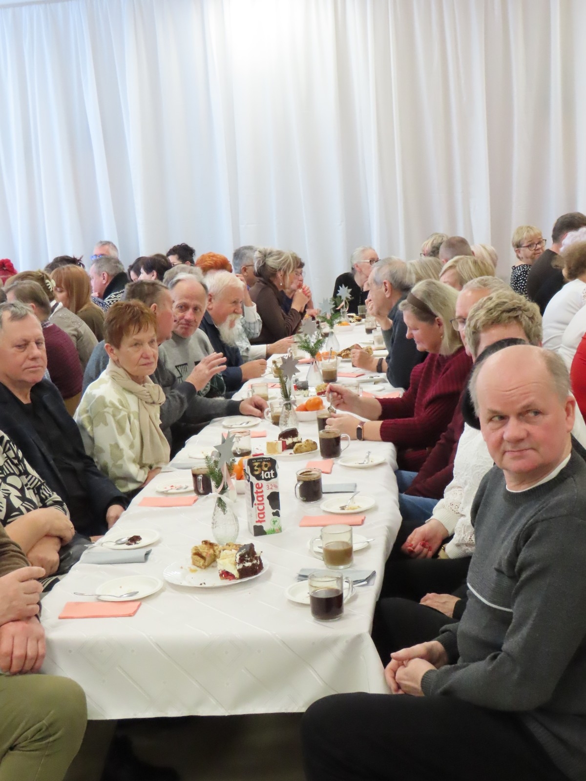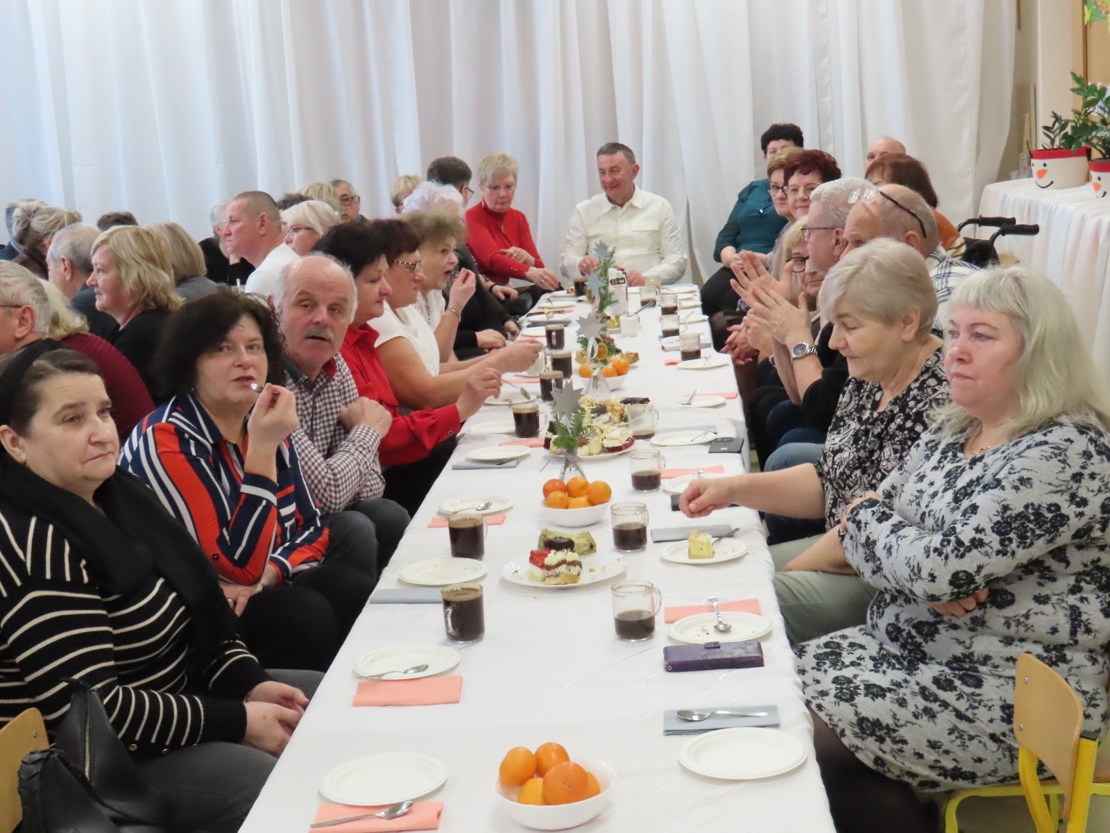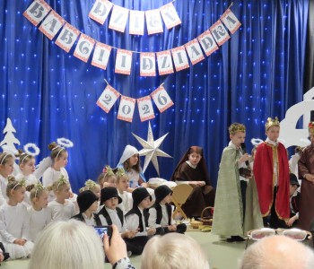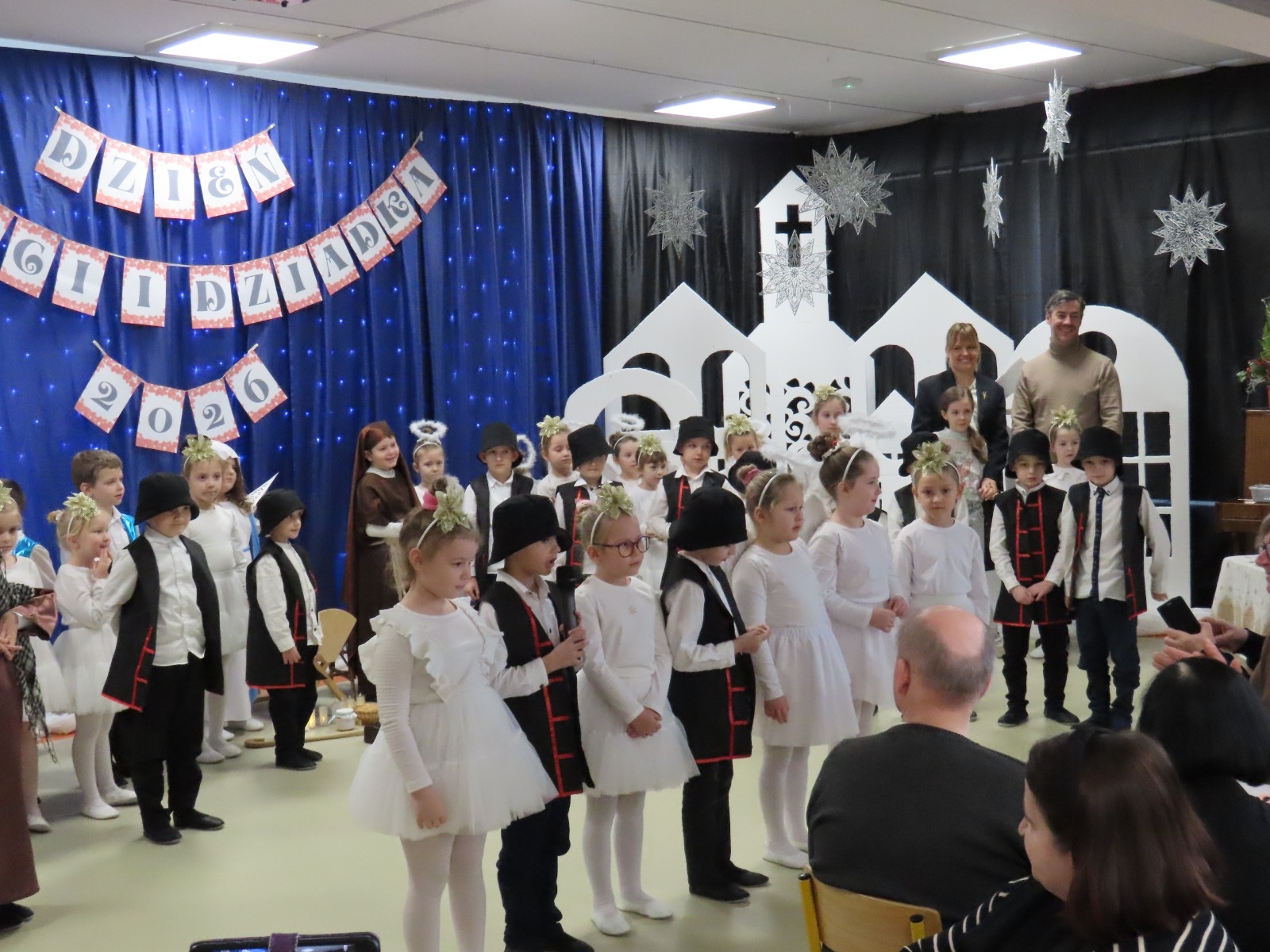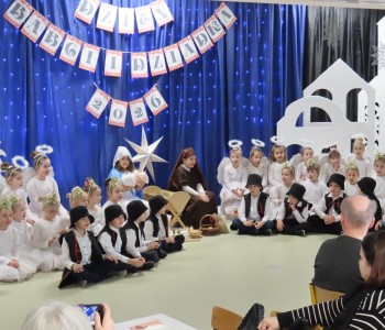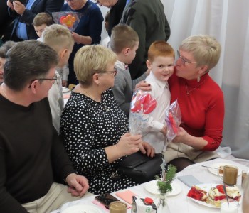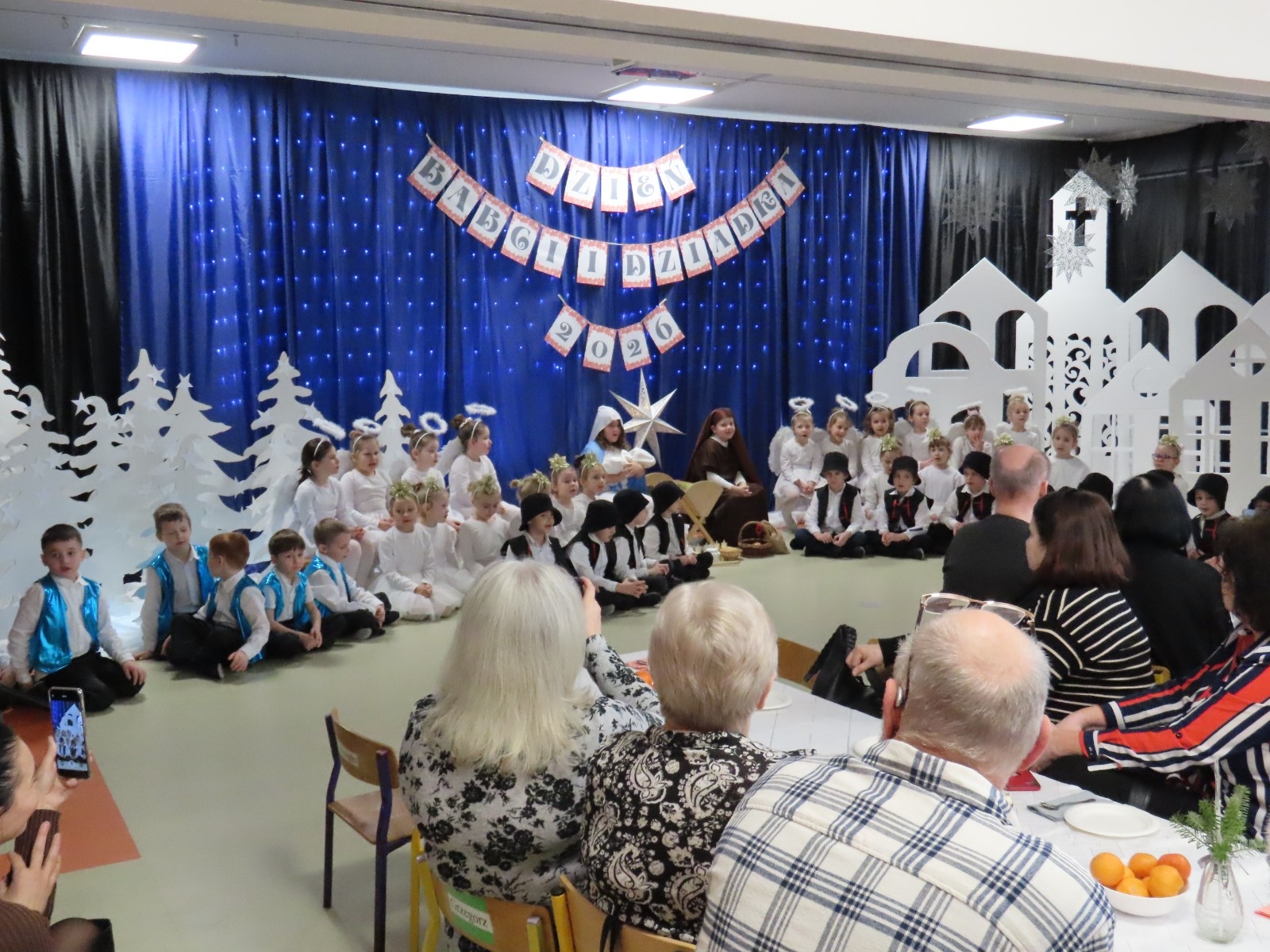 Przedszkolacy zaprezentowali Jasełka pt. „Historia Bożego Narodzenia”, wprowadzając wszystkich w podniosły i ciepły nastrój kolędowania. Nie zabrakło również pięknych wierszy oraz życzeń skierowanych do ukochanych członków rodziny. Po części artystycznej dzieci wręczyły Babciom i Dziadkom własnoręcznie wykonane upominki. Następnie wszyscy uczestnicy spotkania zostali zaproszeni na wspólny poczęstunek przygotowany przez Rodziców. Dziękujemy Rodzicom za pomoc w organizacji uroczystości. Babciom i Dziadkom życzymy dużo zdrowia, szczęścia, radości oraz spełnienia małych i dużych marzeń.
