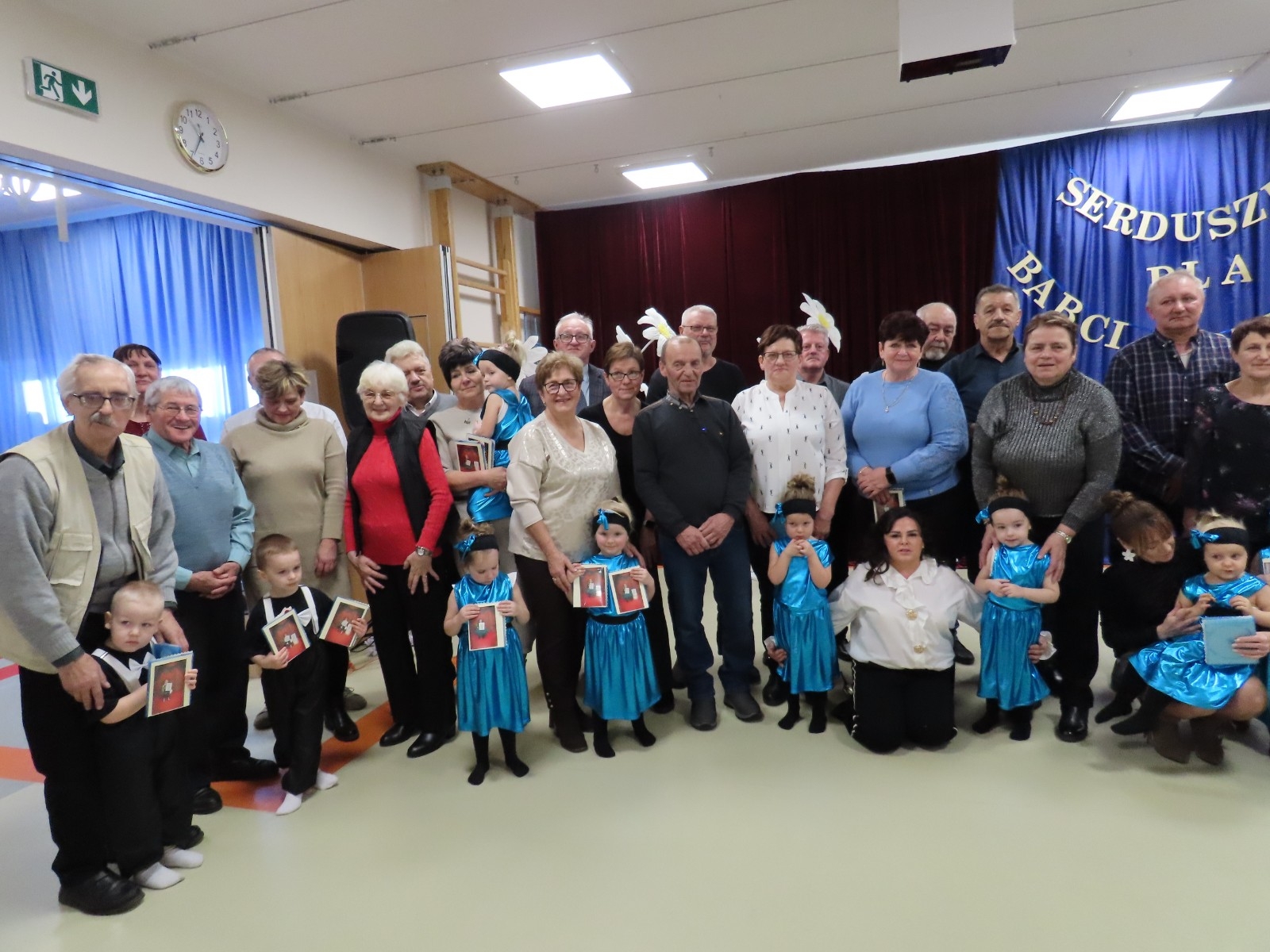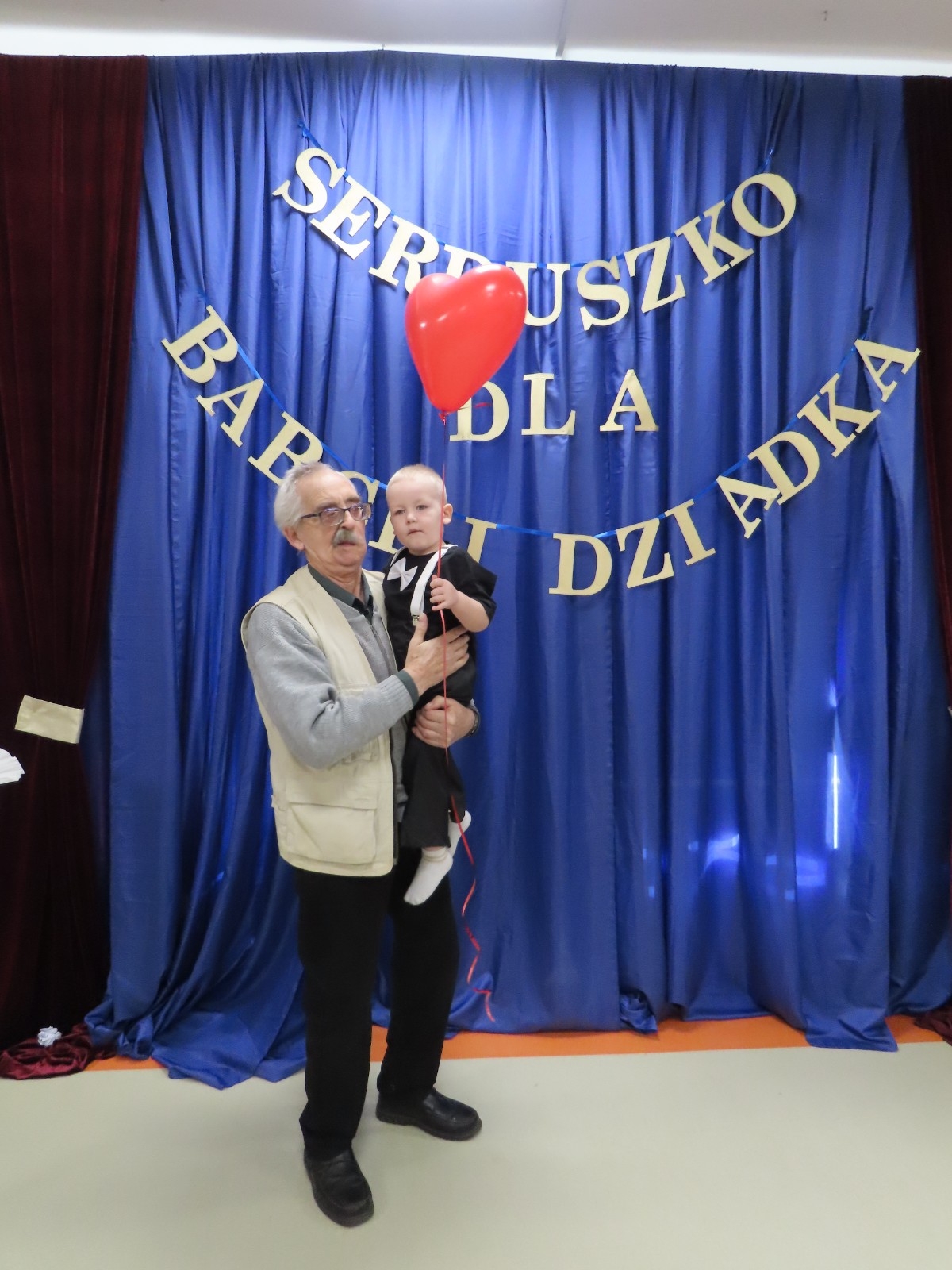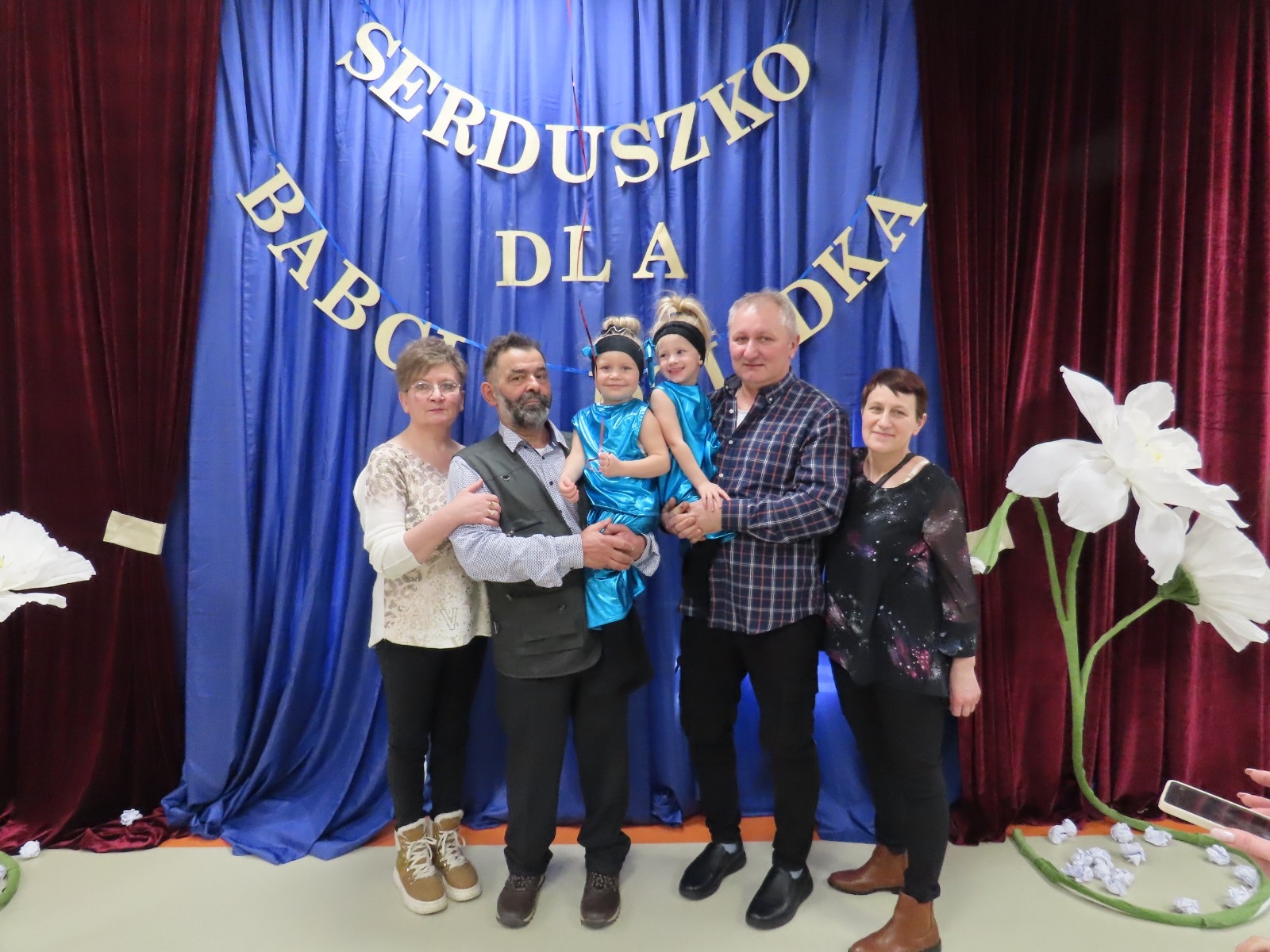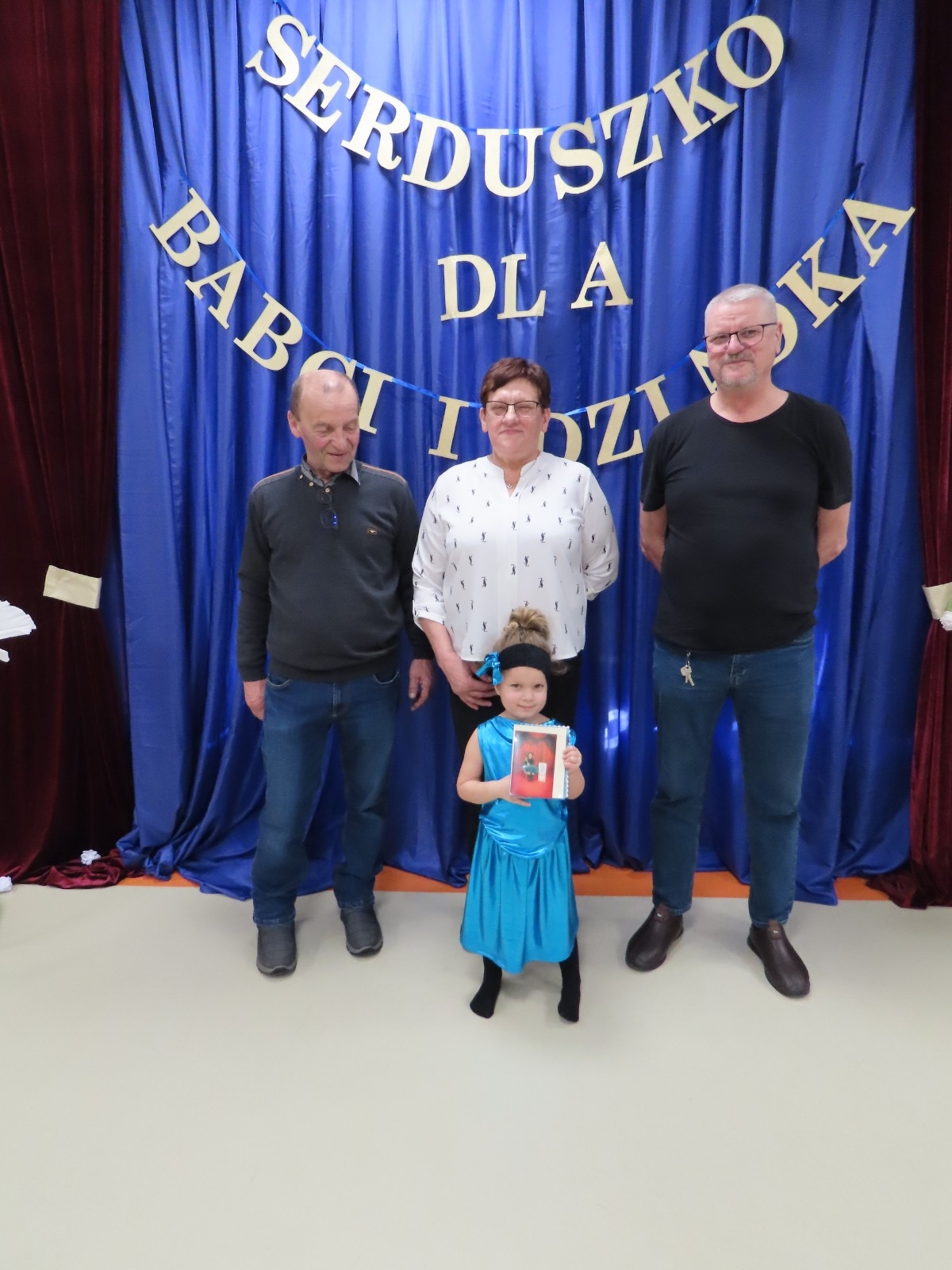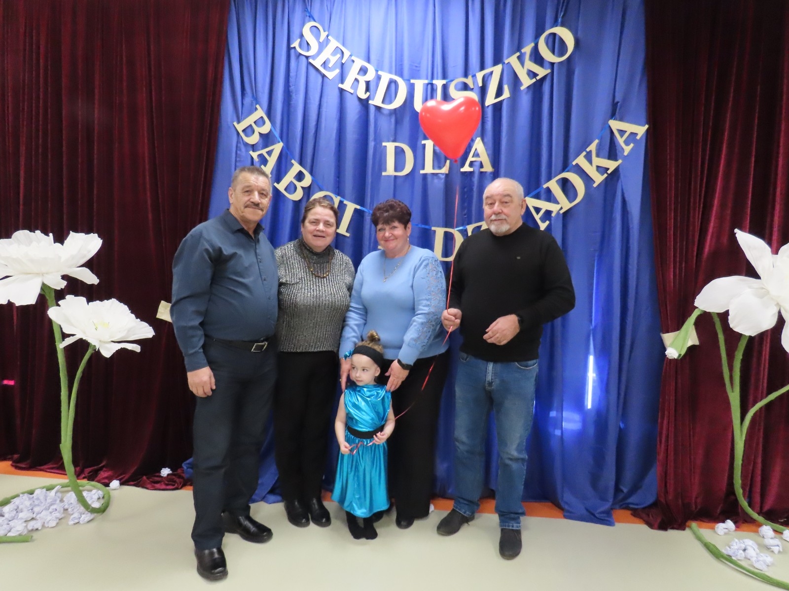 Podczas niezwykłego koncertu: „Serduszko dla Babci i Dziadka” w zaczarowanej sali unosiły się ciepłe spojrzenia i iskierki szczęścia. Smerfy i Krasnale, niczym prawdziwi artyści z dumą zaprezentowały piosenki i tańce. Każde słowo płynęło prosto z dziecięcych serduszek. Dla Babć i Dziadków był to czas pełen wzruszeń, niejedna łza radości zakręciła się w oku. Dzieci zaprosiły również swoich gości do wspólnej przygody ruchowej – ćwiczeń według metody Weroniki Sherborne. Babcie i Dziadkowie razem z wnukami zamienili się w wesołych podróżników: turlali się po śniegu, kołysali jak drzewa na wietrze i tworzyły magiczny kulig, współpracowali niczym najlepsi przyjaciele. Było mnóstwo śmiechu, bliskości oraz radosnego bycia razem; najważniejsza była miłość i wspólne przeżywanie chwil. Na zakończenie każdy Dziadek i każda Babcia otrzymali prezenciki, jako znak wdzięczności, czułości i ogromnej miłości, jaką dzieci noszą w swoich małych, ale jakże wielkich sercach!