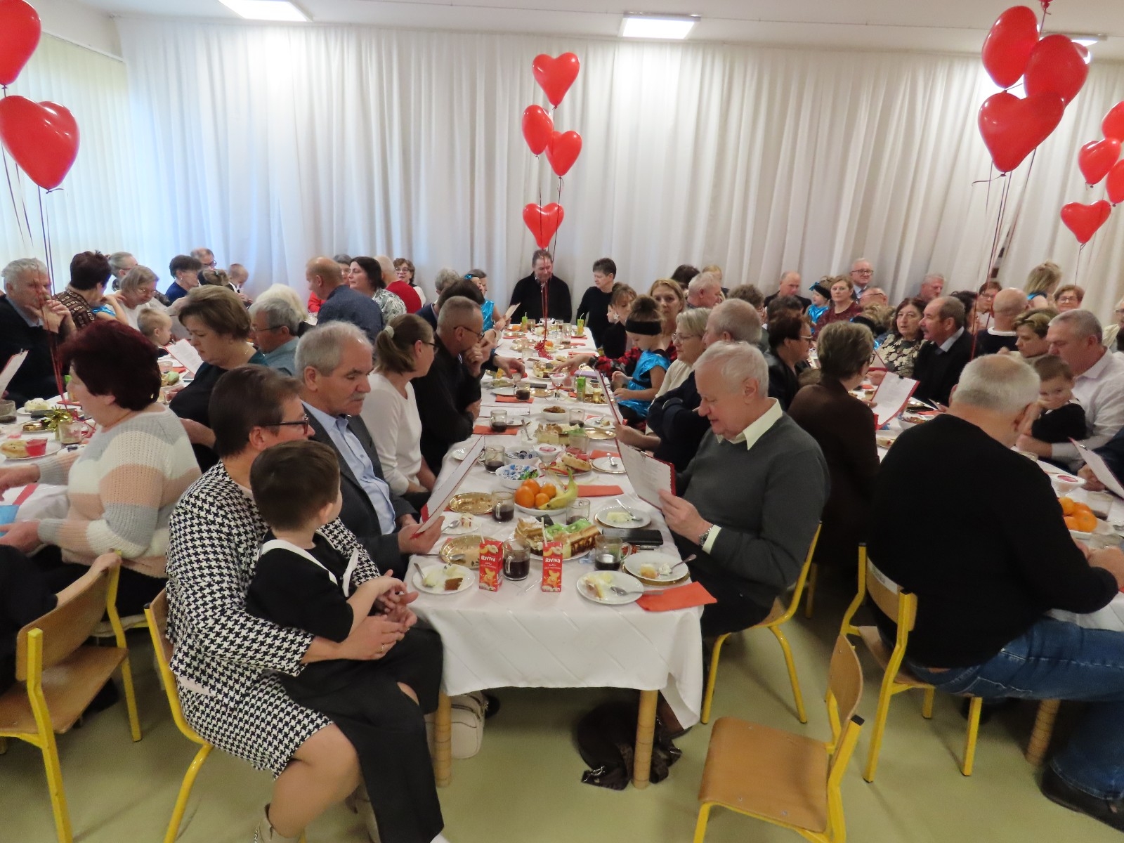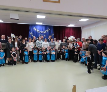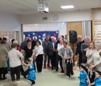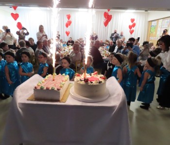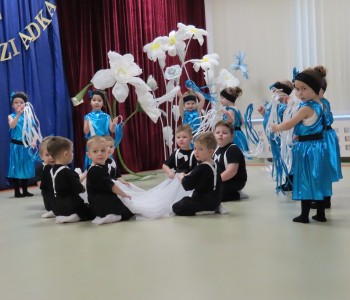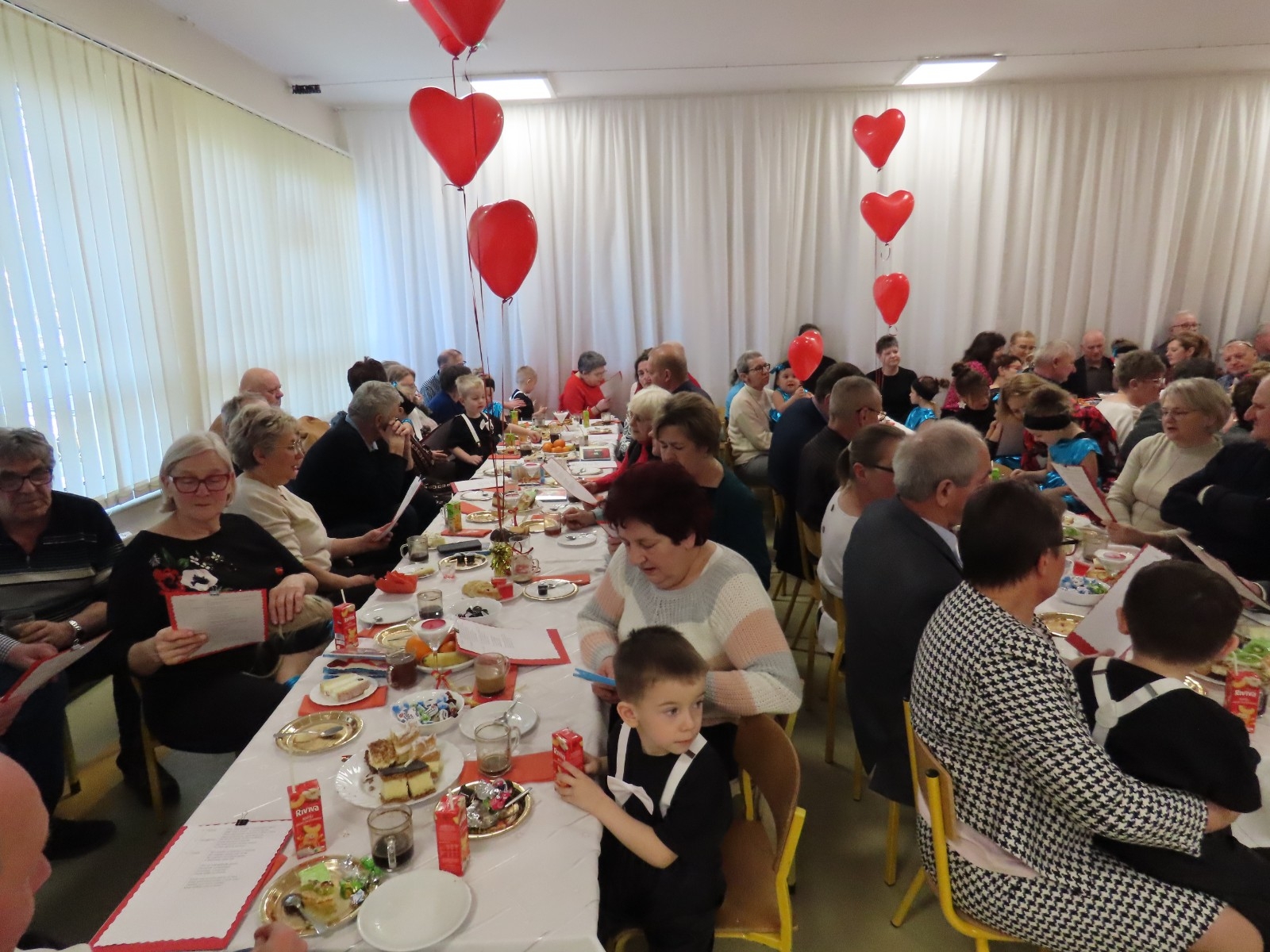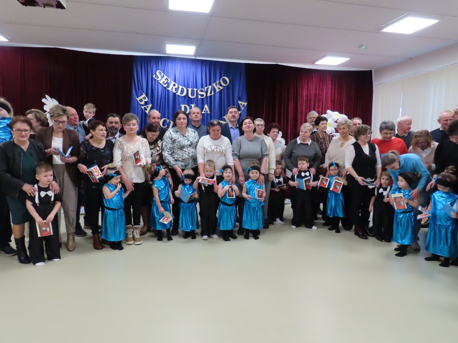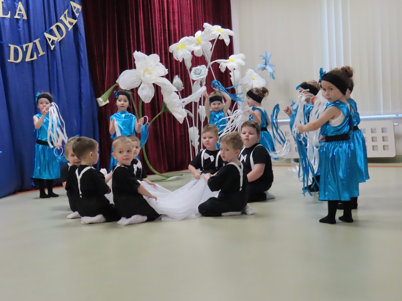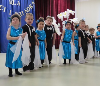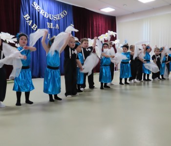Podczas niezwykłego koncertu: „Serduszko dla Babci i Dziadka” w zaczarowanej sali unosiły się ciepłe spojrzenia i iskierki szczęścia. Smerfy i Krasnale, niczym prawdziwi artyści z dumą zaprezentowały piosenki i tańce. Każde słowo płynęło prosto z dziecięcych serduszek. Dla Babć i Dziadków był to czas pełen wzruszeń, niejedna łza radości zakręciła się w oku. Dzieci zaprosiły również swoich gości do wspólnej przygody ruchowej – ćwiczeń według metody Weroniki Sherborne. Babcie i Dziadkowie razem z wnukami zamienili się w wesołych podróżników: turlali się po śniegu, kołysali jak drzewa na wietrze i tworzyły magiczny kulig, współpracowali niczym najlepsi przyjaciele. Było mnóstwo śmiechu, bliskości oraz radosnego bycia razem; najważniejsza była miłość i wspólne przeżywanie chwil. Na zakończenie każdy Dziadek i każda Babcia otrzymali prezenciki, jako znak wdzięczności, czułości i ogromnej miłości, jaką dzieci noszą w swoich małych, ale jakże wielkich sercach!