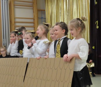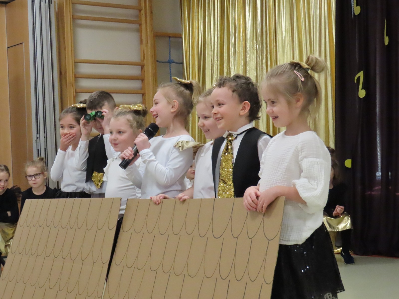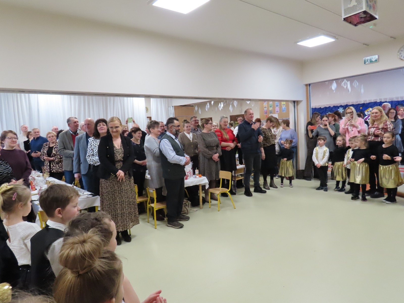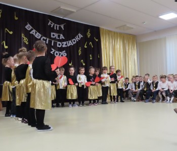 Dzieci z grup Kubusia Puchatka oraz Misia Uszatka przeżyły wyjątkowy dzień, goszcząc swoje Babcie i Dziadków na uroczystości zorganizowanej z okazji ich święta. Spotkanie przebiegało w ciepłej, rodzinnej atmosferze i było pełne wzruszeń, radości oraz wspólnej zabawy. Mali artyści z wielkim zaangażowaniem zaprezentowali przygotowany program artystyczny. Nie zabrakło pięknych wierszy recytowanych specjalnie dla Dziadków, a także humorystycznego przedstawienia „prosto z dachu”, które wywołało wiele uśmiechów na twarzach zaproszonych gości.