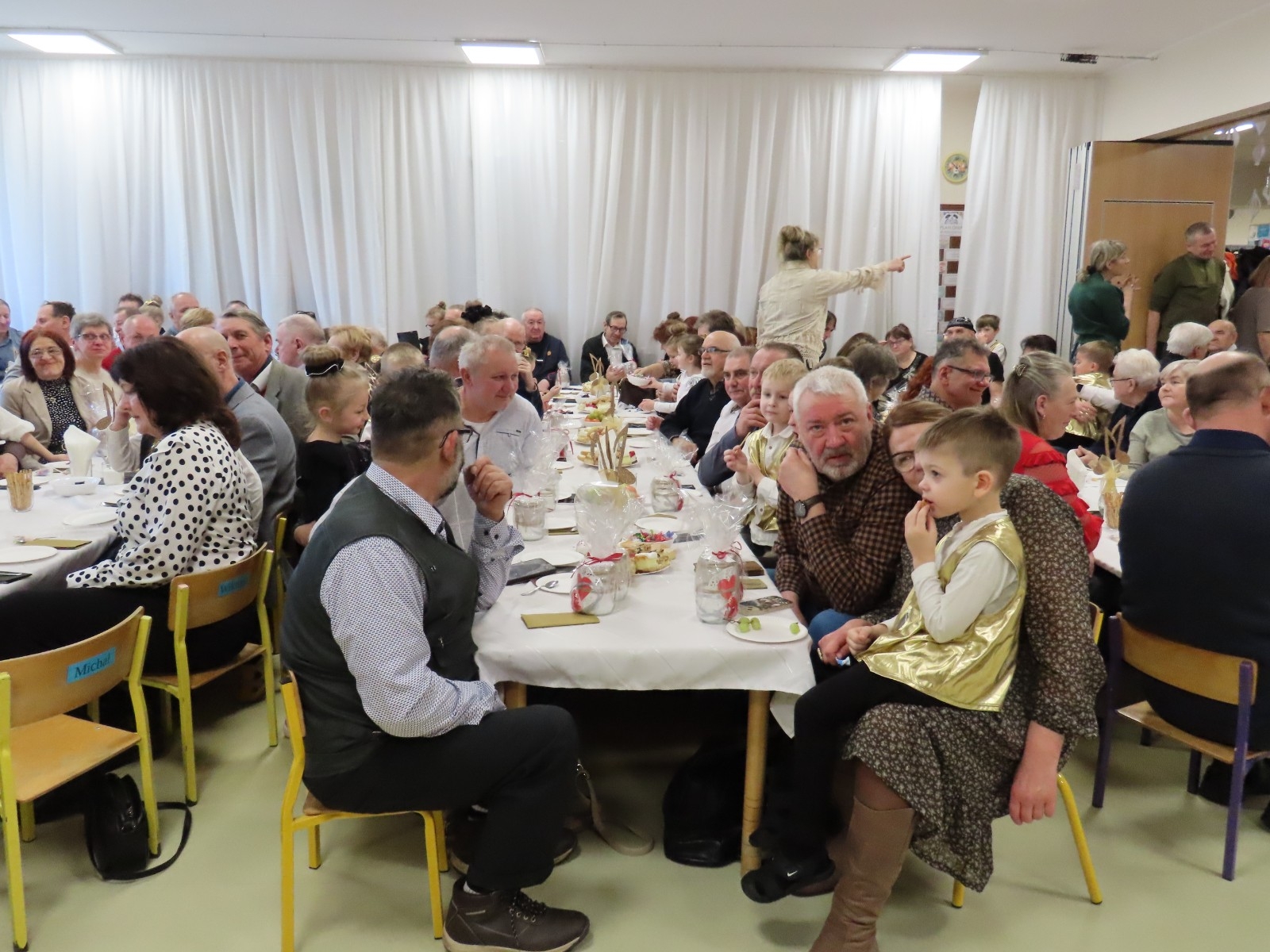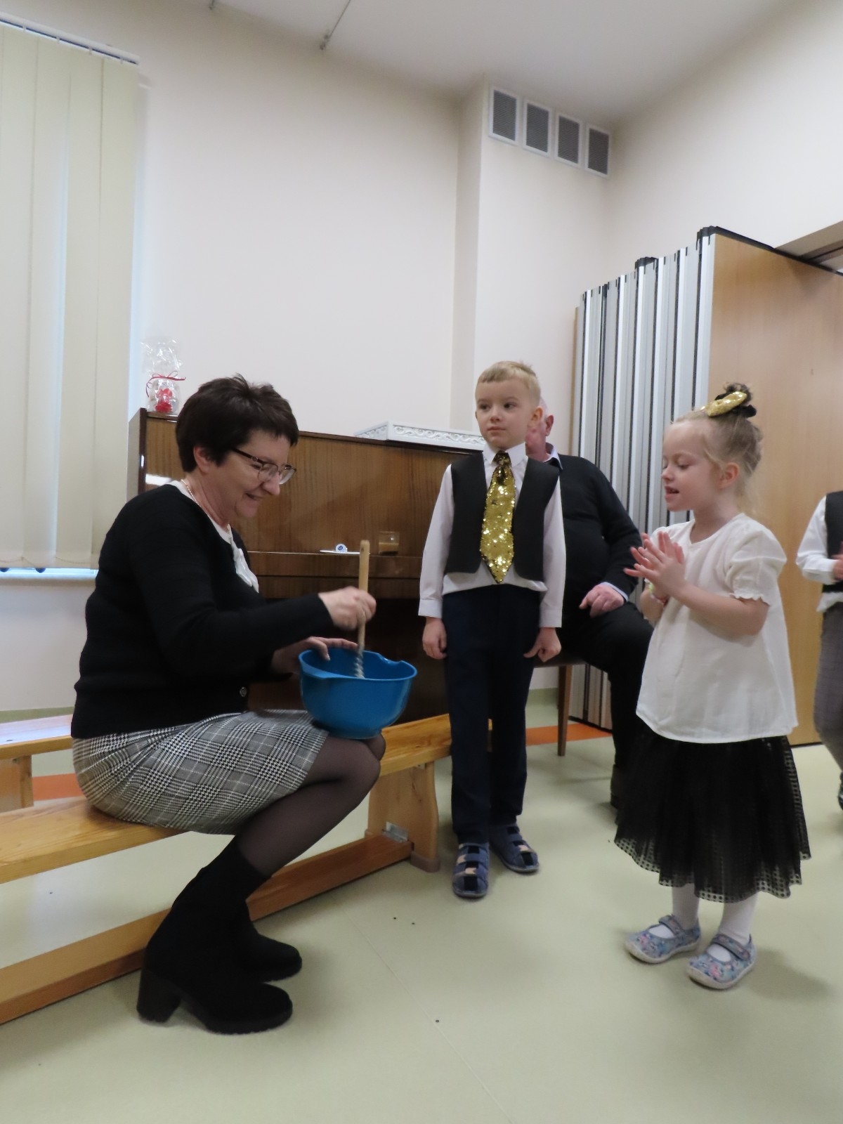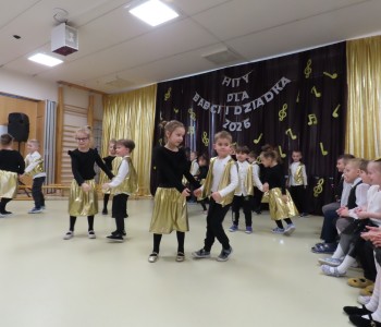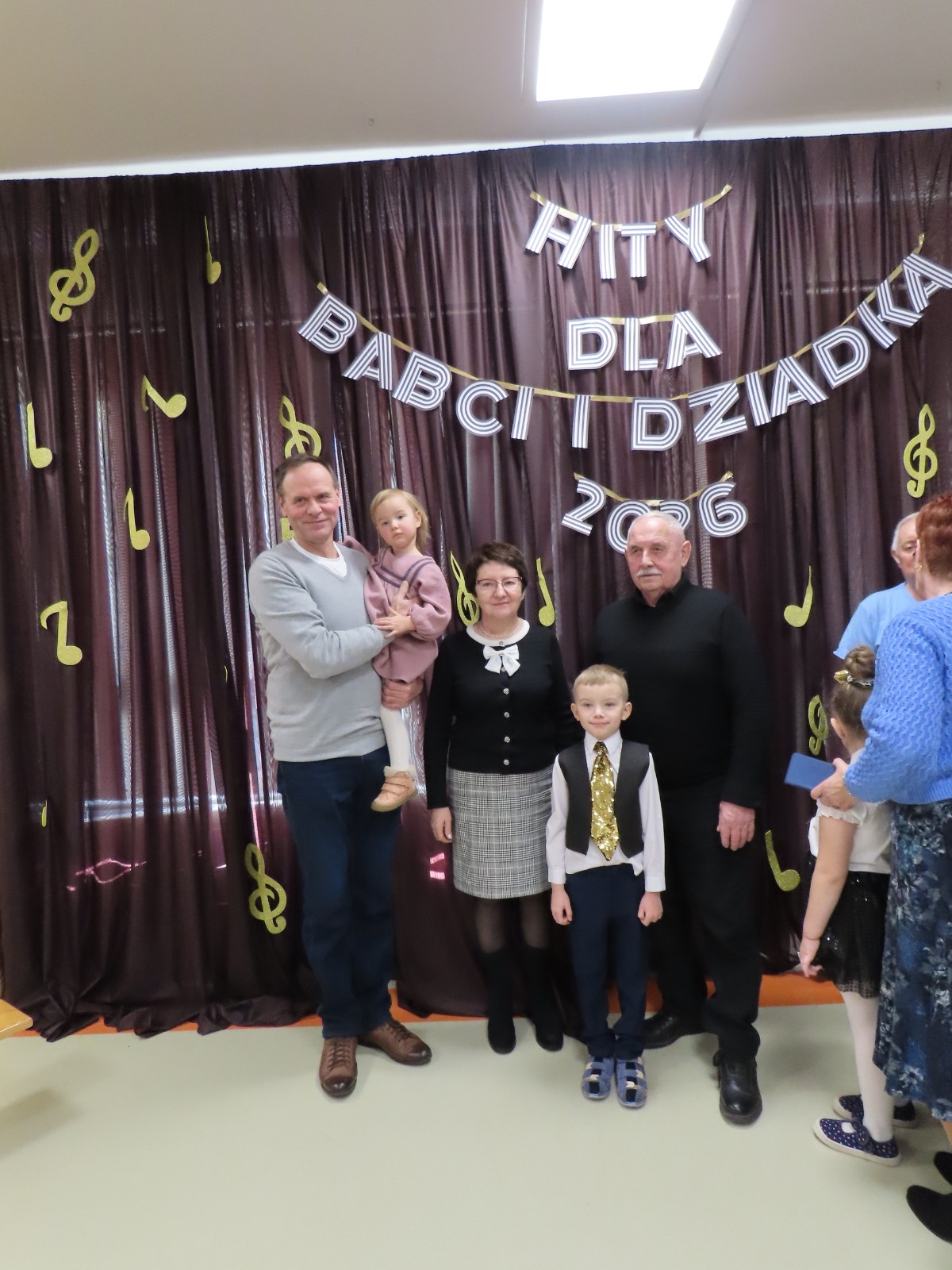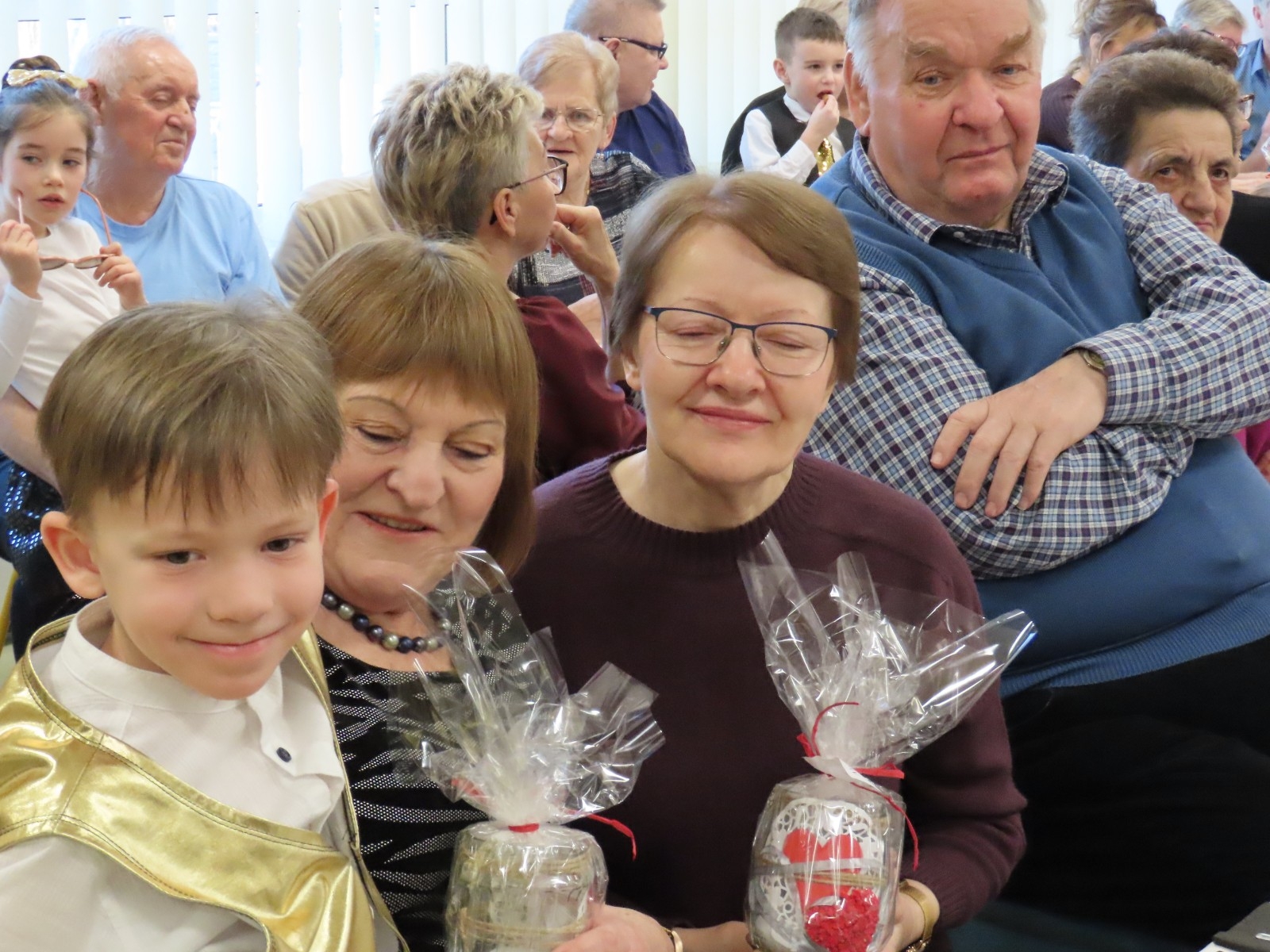 Szczególny entuzjazm wzbudziły również układy taneczne wykonane do kultowych przebojów Michaela Jacksona oraz Krzysztofa Krawczyka. Po części artystycznej dzieci wręczyły swoim Babciom i Dziadkom własnoręcznie przygotowane upominki – pełne serca, kolorowe i jedyne w swoim rodzaju. Był to piękny gest wdzięczności i miłości, który wzruszył niejednego uczestnika spotkania. Dziadkowie aktywnie włączali się we wspólne zabawy z wnukami. Dużo radości dostarczył wszystkim konkurs ubijania piany z białek, który okazał się nie tylko świetną zabawą, ale także okazją do integracji i śmiechu. To wyjątkowe spotkanie na długo pozostanie w pamięci zarówno dzieci, jak i ich Babć oraz Dziadków. Był to dzień pełen ciepła, uśmiechu i wspólnie spędzonego czasu. Patrycja Dziekan