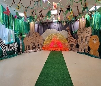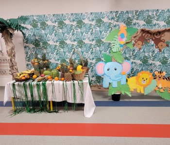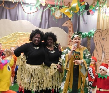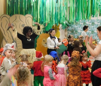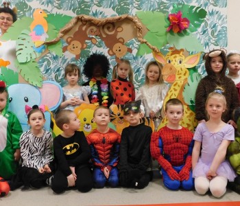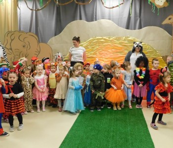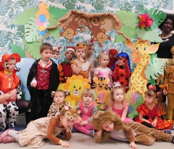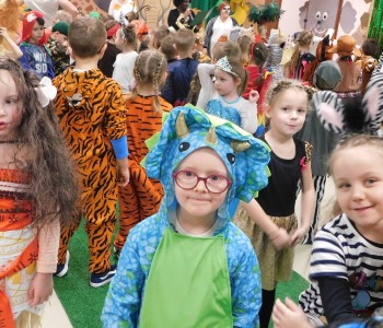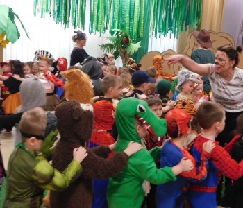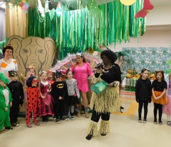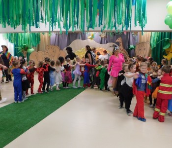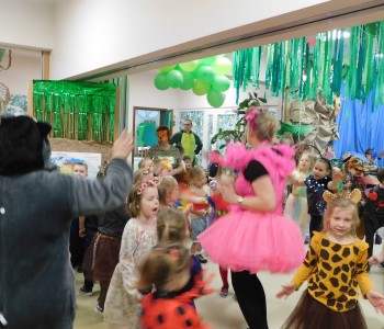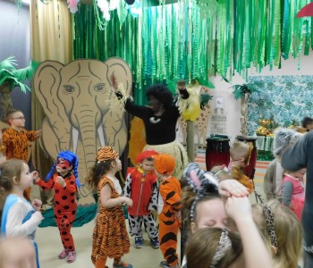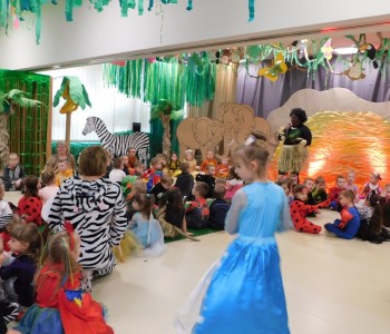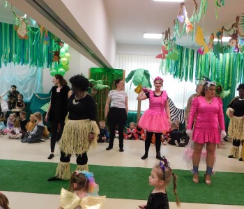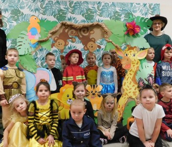 Dziękujemy dzieciom i rodzicom za zaangażowanie w przygotowanie pięknych dżunglowych strojów oraz wszystkim pracownikom przedszkola(nauczycielkom i paniom woźnym), w szczególności Panu Romanowi i Pani Katarzynie, za ogrom włożonej pracy podczas dekorowania sali gimnastycznej, szatni oraz korytarzy przedszkola.
