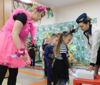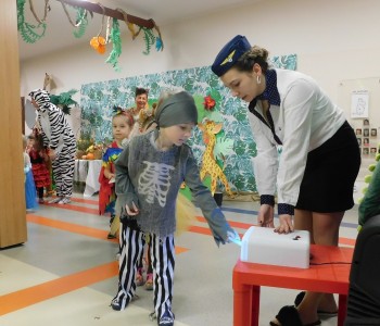 Dzieci otrzymały od swoich pań bilety, które uprawniały uczestników na przelot Przedszkolnymi Liniami Lotniczymi do serca dzikiej dżungli. Nad bezpieczeństwem pasażerów czuwała urocza pani stewardessa Patrycja. O godz. 9:15 dwóch mieszkańców Dzikiego Lądu oraz pani dyrektor i pani wicedyrektor uroczyście powitali zgromadzonych uczestników balu. Na sali, która zmieniła się w dżunglę pełną dzikich zwierząt były tańce, konkursy, zagadki z którymi dzieci poradziły sobie znakomicie. W przerwie balu każda grupa wesołym pociągiem pojechała na swoją salę, gdzie czekały kulinarne niespodzianki w postaci słodkiego poczęstunku. Po kilku chwilach wypoczynku muzyka znowu porwała wszystkich do tańca w rytm samby, tańców afrykańskich oraz przebojów znanych dzieciom. Bal umożliwił dzieciom spędzenie czasu w miłej i dżunglowej atmosferze. Wspólna zabawa przyniosła wiele radości naszym przedszkolakom, a to było głównym celem tego balu.