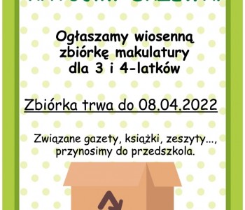 Dziękujemy za zaangażowanie wszystkim przedszkolakom i ich rodzinom zarówno z Margonina, Próchnowa, Lipin oraz Radwanek. Wspólnymi siłami zebraliśmy 2 worki puszek i 220 kg makulatury. Brawo My! W zamian otrzymaliśmy papier toaletowy za co bardzo serdecznie dziękujemy!