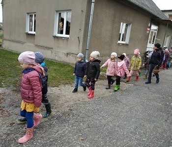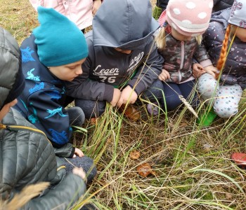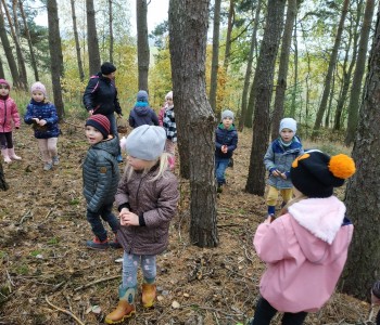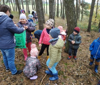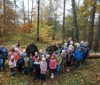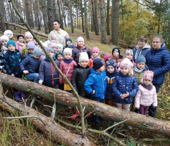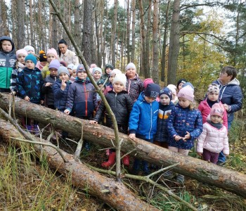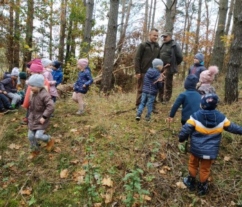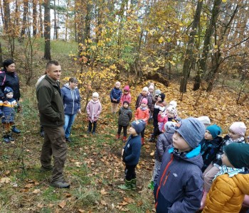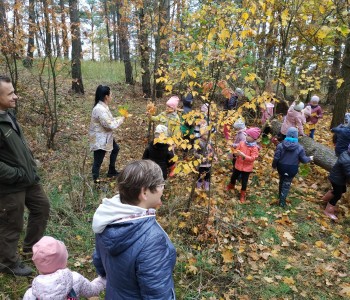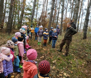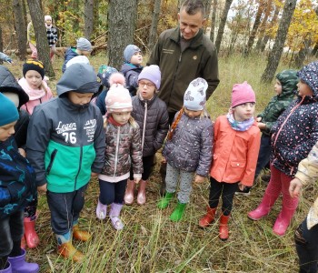 Dzieci z przedszkola w Radwankach wybrały się na pieszą wycieczkę do lasu. Na miejscu czekali już leśnicy: pan Jacek Simiński i pan Robert Wolski, którzy pokazali dzieciom las w jesiennej szacie.