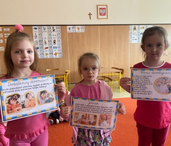 W Pierwszy Dzień Wiosny obchodzimy również Światowy Dzień Zespołu Downa. 21 marca przedszkolacy z grupy „Czerwony Kapturek” zostali zapoznani z tematyką. Poznali cechy charakterystyczne osób z Zespołem Downa, dowiedzieli się czym charakteryzuje się odmienność osób z Zespołem Downa.