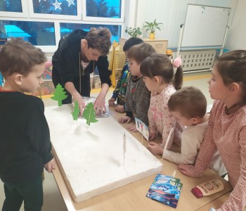 W piątek, 15.01.2021r. dzieci z grupy Czerwonego Kapturka i Muminków uczestniczyły w zajęciach z pielęgniarką. Dzieci poznały zasady bezpieczeństwa obowiązujące podczas zimowych zabaw. Pani Sylwia wykonała sztuczny śnieg, a dzieci wypełniły nim makietę przedstawiającą zimowy teren.