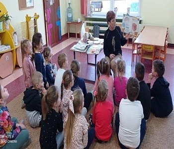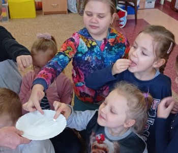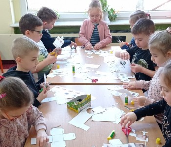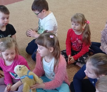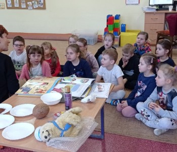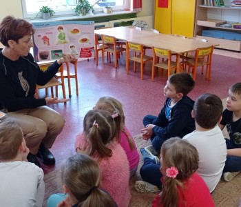 Podczas ostatniego spotkania z pielęgniarką, Pani Sylwia opowiadała dzieciom o zmysłach, dzieci mogły się przekonać do czego służą min. zmysł węchu, smaku, dotyku, słuchu czy wzroku, na zakończenie przedszkolaki wykonały kostki zmysłu.