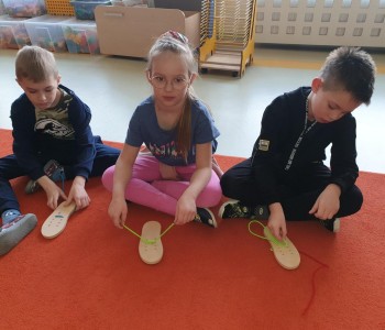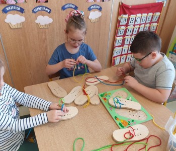 Dzieci z grupy Czerwonego Kapturka uczyły się w tym tygodniu arcytrudnej sztuki wiązania sznurowadeł, łatwo się domyśleć, że udało się to bez trudu.