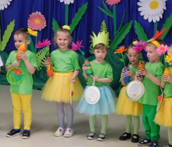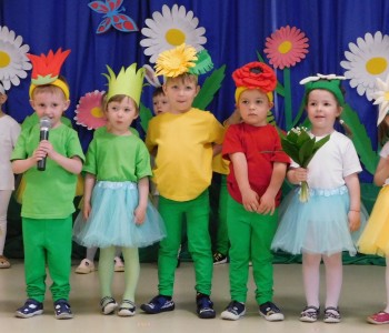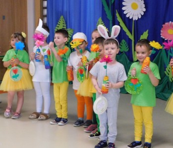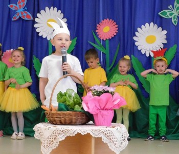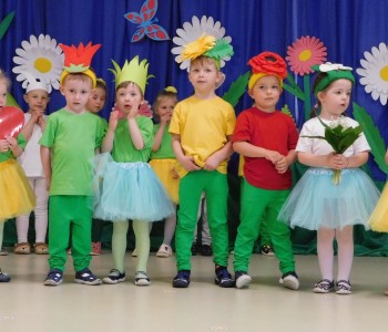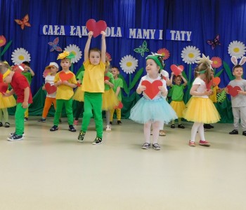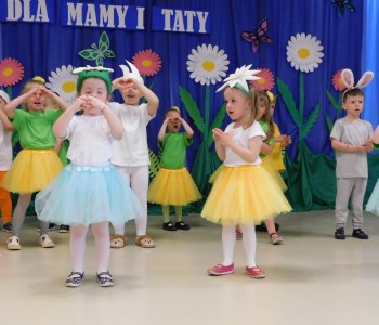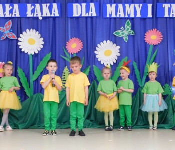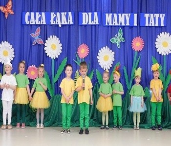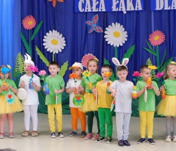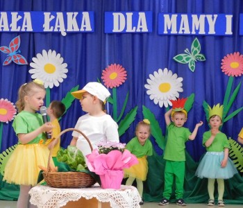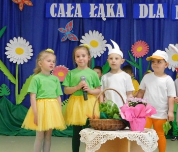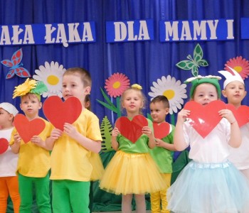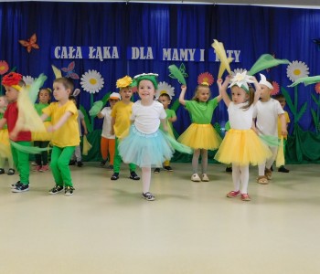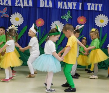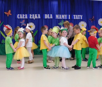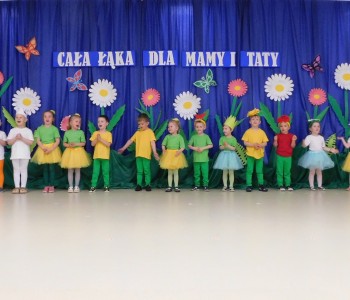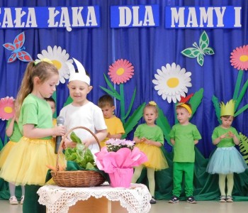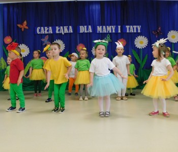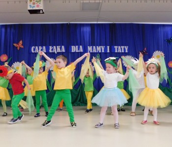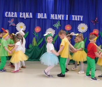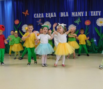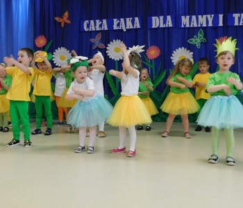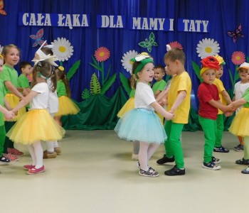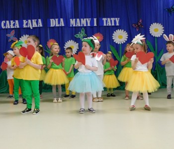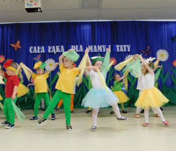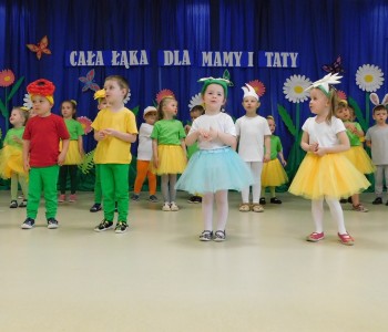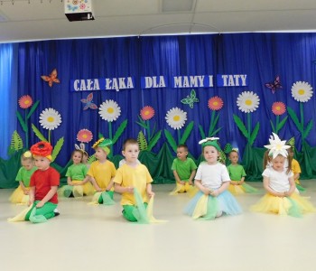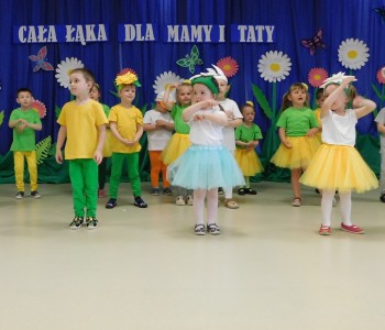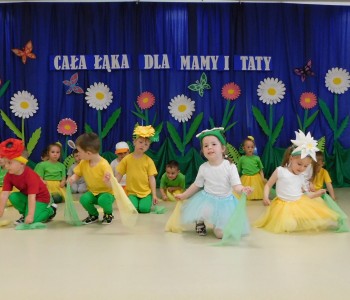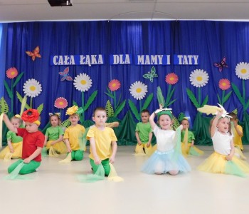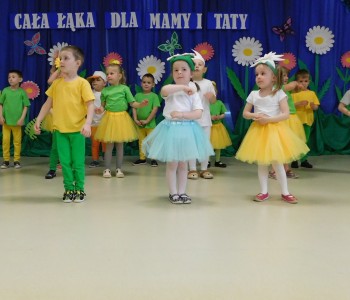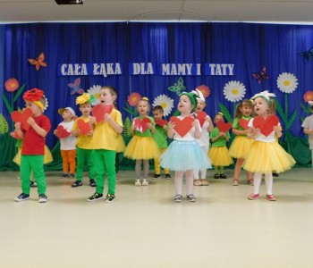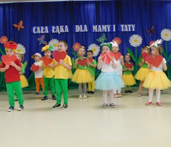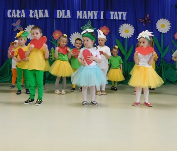 Z okazji Dnia Mamy oraz zbliżającego się Dnia Ojca grupa „Krasnala Hałabały” zaprosiła swoich rodziców na spotkanie pt. „Cała łąka dla Mamy i Taty”. Dzieci wystąpiły w roli tulipanów, maków, mleczy, konwalii i innych kwiatów dziękując rodzicom za miłość i opiekę oraz życząc wielu radosnych i szczęśliwych dni. W repertuarze uroczystości znalazły się inscenizacje pt. „Wszystko dziś dla mamy” oraz „Kwiaty dla mamy i taty”, wiersze, piosenki z aranżacją ruchową oraz tańce. Dzieci wspólnie z rodzicami stworzyły też bum, bum rurkową orkiestrę oraz wręczyły miłe upominki, własnoręcznie wykonane w przedszkolu.