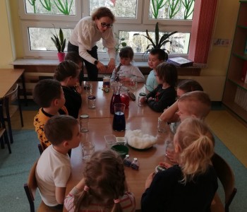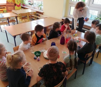 Galeria zdjęć grupy Kubusia Puchatka podczas zajęć kreatywnych.