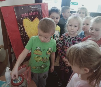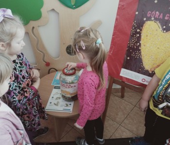 Dzieci z grupy Kubusia Puchatka wspierają akcję Góra Grosza, której celem jest zbieranie funduszy dla dzieci wychowującym się poza własną rodziną - w domach dziecka czy rodzinach zastępczych.
