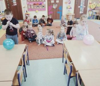 Dzieci z grupy „Kubusia Puchatka” ćwiczyły prawidłowe oddychanie. Uczestniczyły w zabawach, które tylko pozornie wydawały się proste.