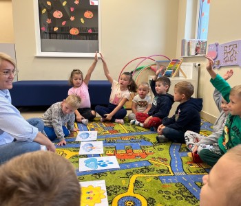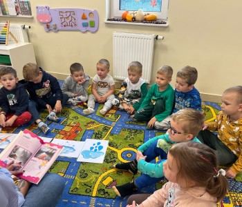 Czytanie im na głos stymuluje ich rozwój, wzbogaca słownictwo oraz pobudza wyobraźnię. Książka to jedno z najlepszych źródeł wiedzy, pozwala przeżywać wspaniałe emocje. Dzieci wysłuchały wierszy z książki „Skąd się wzięła pogoda, czyli fascynująca przyroda” Izabeli Michta. Przedszkolaki utrwaliły cechy charakterystyczne dla poszczególnych pór roku, nazywały zjawiska atmosferyczne oraz uświadomiły sobie konieczność dostosowania ubioru do warunków atmosferycznych. Spotkanie odbywało się w miłej, pełnej uśmiechów i wrażeń atmosferze.