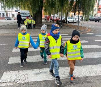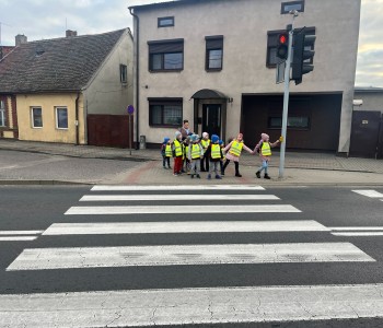 Udział w spektaklu umożliwił dzieciom przeniesienie się w piękny, kolorowy świat pełen muzyki oraz dostarczył im niesamowitych wrażeń. Podczas wycieczki przedszkolaki utrwaliły również zasady ruchu drogowego w trakcie spaceru po Margoninie. Dzieci rozpoznawały i nazywały poznane znaki drogowe oraz ćwiczyły w bezpieczny sposób przechodzenia przez jezdnię w miejscu, gdzie są pasy i sygnalizacja świetlna. Dzieci zwróciły szczególną uwagę na sposób oznakowania przejścia dla pieszych i ścieżkę rowerową, obserwowały zachowanie pieszych oraz pojazdów. Na zakończenie wyjazdu przedszkolaki z radością bawiły się na placu zabaw.