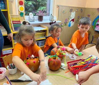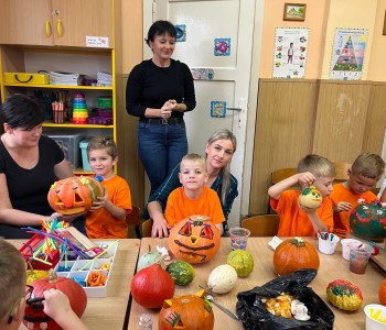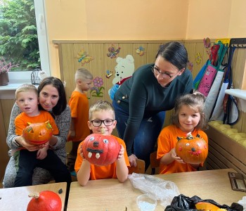 Podczas różnego rodzaju zabaw i zadań, dzieci dowiedziały się wielu ciekawostek na temat dyni, poznały jej budowę oraz skosztowały pestek. Wysłuchały również baśni „Kopciuszek”, w której dynia zamieniła się w cudowną karocę. Celem zajęć było kształtowanie postaw ukierunkowanych na prawdę, dobro oraz piękno z wykorzystaniem baśni. W tym dniu w przedszkolu zapanował kolor pomarańczowy i pojawiły się dyniowe dekoracje, a na zajęciach plastycznych przedszkolaki wspólnie z rodzicami tworzyły „Dyniowe Stworki-Potworki”. Zajęcia z udziałem rodziców pozwalają w sposób bezpośredni poznać charakter pracy wychowawczo - dydaktycznej, jak również zaobserwować zachowania dziecka na tle grupy w zakresie jego kompetencji społecznych, fizycznych i umysłowych. Serdecznie dziękujemy rodzicom za wspólną zabawę!