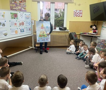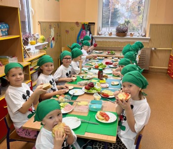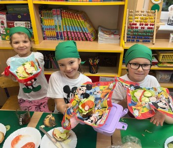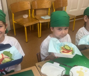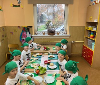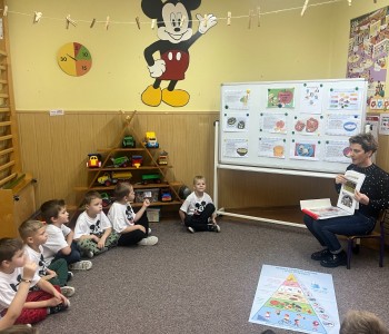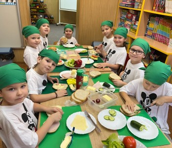 W grupie Myszka Miki pielęgniarka, Pani Sylwia uświadomiła przedszkolakom, dlaczego ważny jest zdrowy tryb życia. Dzieci poznały piramidę zdrowia, która wskazuje, że oprócz zdrowego odżywiania bardzo ważny jest ruch, a szczególnie na świeżym powietrzu. Dzieci z radością przygotowały zdrowe śniadanko i delektowały się smacznymi kanapeczkami.