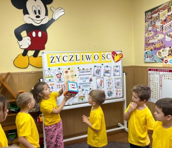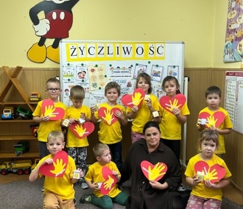 Gdy celebrujemy uprzejmość i dobroć, warto przyjrzeć się nie tylko temu, jak wyrażamy życzliwość, ale również zrozumieć, dlaczego tak ważne jest bycie życzliwym wobec innych. Grupa Myszka Miki poprzez różnego rodzaju zabawy uświadomiła, że warto być przyjacielskim, uprzejmym, być wrażliwym na potrzeby innych. Ważne jest również, aby być życzliwym w stosunku do samych siebie. Motywem przewodnim dnia był kolor żółty w celu dzielenie się pozytywną energią i pokazywanie, że życzliwość ma moc!