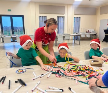 Najmłodsi z zapałem wykonywali piękne bombki, rozwijając wyobraźnię. Animacje oraz wspólne zabawy z psotnym Grinchem, jak również twórczość, zaangażowanie i przeżyte emocje, to bardzo cenne doświadczenie.