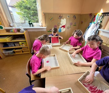 Dzieci przy pomocy nauczyciela z radością pisały również krótkie wiadomości do swoich Walentynek, co sprzyjało doskonaleniu umiejętności wyrażania emocji oraz okazywania sympatii. Walentynki to wyjątkowy dzień, w którym wyrażamy uczucia do bliskich nam osób. Choć w dzisiejszych czasach coraz częściej korzystamy z komunikacji elektronicznej, tradycyjne wysyłanie kartek walentynkowych za pośrednictwem poczty nadal ma swój urok i magię. Grupa Myszka Miki pojechała na pocztę, gdzie uczyła się adresować kartki. Walentynki to również świetna okazja do zabawy w kolorach miłości. Dzieci brały udział w zabawach sensorycznych, które angażowały na wielu płaszczyznach. Przedszkolaki miały możliwość eksploracji różnych materiałów, faktur. Dzięki różnorodnym zajęciom dzieci mogły nie tylko wyrazić swoje uczucia, ale także nauczyć się, jak ważne są przyjaźń i wspólne spędzanie czasu. Takie wydarzenia kształtują emocjonalny rozwój najmłodszych i uczą ich, że miłość i życzliwość warto okazywać każdego dnia. Czekamy na kolejne walentynkowe szaleństwo w przyszłym roku!