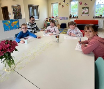 Podczas wizyty opowiedział dzieciom o swojej pasji do sztuki i czytania książek, zaprezentował wiersz „Lipiny – wieś moich marzeń” oraz przeczytał przedszkolakom bajkę „Fenek w Bibliotece”. Pan Baszkiewicz zachęcał dzieci do wyrażania siebie poprzez sztukę i pokazał, jak można zamienić zwykłe kartki w kolorowe dzieła sztuki. W trakcie spotkania dzieci z dużym zainteresowaniem słuchały opowieści o pracy i inspiracjach twórcy. To wydarzenie nie tylko uświetniło obchody Dnia Bibliotekarza i Bibliotek, ale także zachęciło najmłodszych do sięgania po książki oraz rozwijania swojej wyobraźni poprzez sztukę. Spotkanie z lokalnym artystą na długo pozostanie w pamięci przedszkolaków jako inspirujące i pełne pozytywnych emocji.