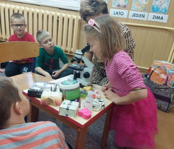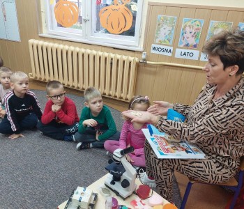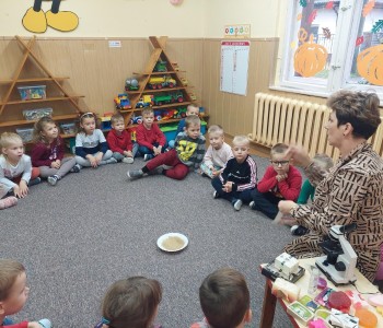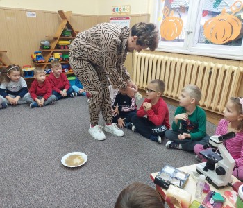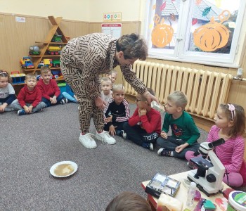 25 października w grupie Myszki Miki odbyły się zajęcia na temat zarazków, bakterii i wirusów, które dostają się do naszego organizmu poprzez brudne ręce. Dzieci dowiedziały się, jakie znaczenie dla zdrowia ma czyste i dokładne mycie rąk. Omówiliśmy także schemat mycia rąk oraz zastosowaliśmy go w praktyce. Przedszkolaki podczas zajęć poznały również działanie i budowę mikroskopu. Oglądały pod mikroskopem specjalnie przygotowany przez panią Sylwię preparat.