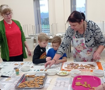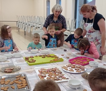 Po wystygnięciu dzieci z Paniami dekorowały swoje dzieła. Wspaniały zapach unosił się po Sali Wiejskiej w Lipinach i wprawił wszystkich w świąteczny nastrój.
