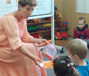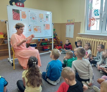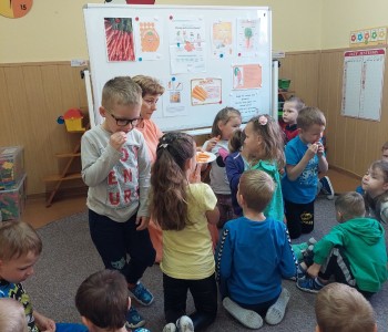 Pani Pielęgniarka przygotowała dla naszych przedszkolaków specjalne zajęcia, które były pełne ciekawych informacji na temat korzyści zdrowotnych płynących z jedzenia marchewki. Dzieci miały okazję zadawać pytania, dzielić się swoimi spostrzeżeniami na temat warzywa i oczywiście próbować różnych potraw przygotowanych z marchewki.