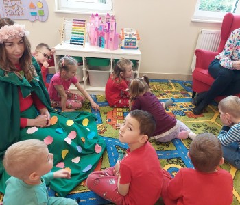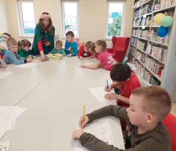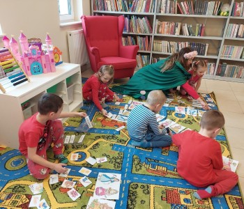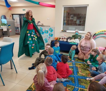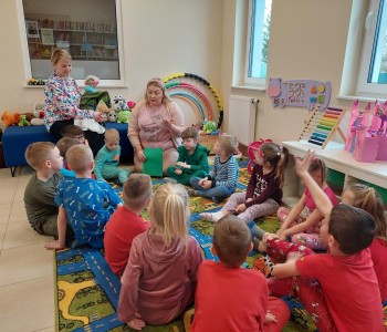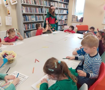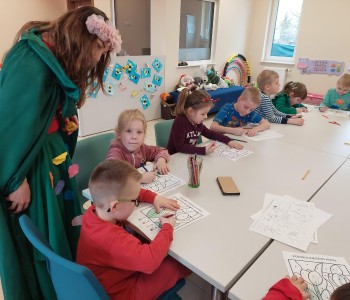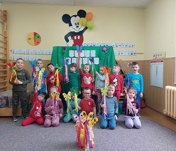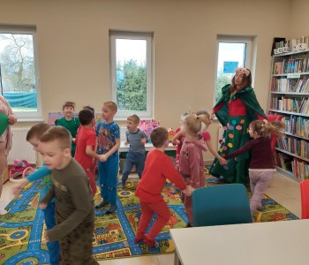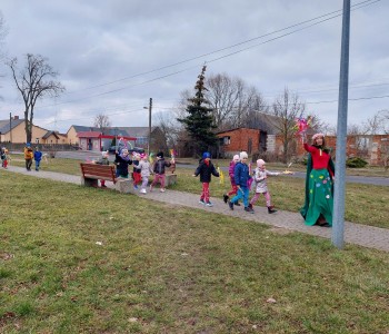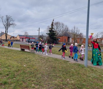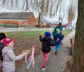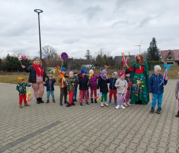 Dzieci wysłuchały listu oraz zagadki od tajemniczego gościa, następnie głośnymi okrzykami przedszkolaki przywołały Panią Wiosnę. Następnie nadszedł czas na wspólne zadania i zabawy. Pani bibliotekarka przeczytała wiersze o wiośnie: "Przyjście wiosny"- J. Brzechwa, "W kwietniu"- W. Domeradzki. Dzieci z chęcią odpowiadały o tym, z czym kojarzy im się ta pora roku, a oprócz tego mieli za zadanie pokolorować tematyczne obrazki oraz dopasować pory roku i ich atrybuty. Na zakończenie obchodów powitania wiosny, dzieci wraz z Panią Wiosna maszerowały barwnym korowodem po ulicach Lipin.