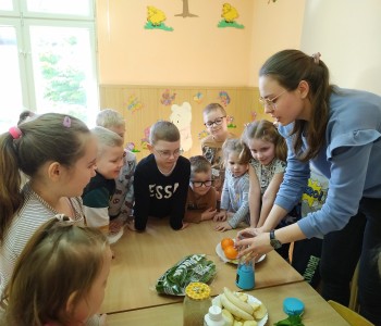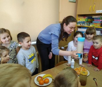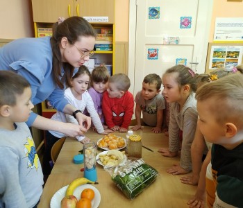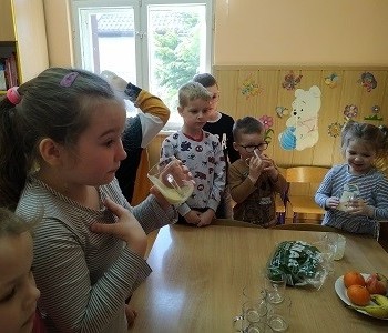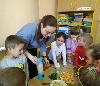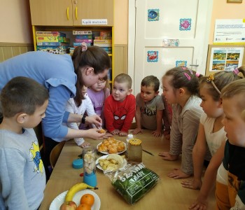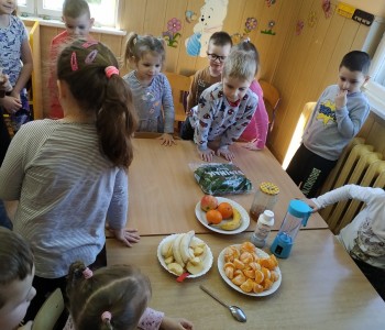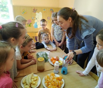 W okresie przygotowań do zbliżającej się wiosny witaminy pełnią ogromną rolę. Dzieci z grupy Myszki Miki dowiedziały się jaką dużą mają moc i w jaki sposób możemy ich sobie dostarczyć. Wszyscy wiemy, że owoce i warzywa skrywają ich w sobie pokaźne ilości. Dlatego dzieci wraz z panią zmiksowały pyszny koktajl owocowy. I teraz “Wszyscy mamy dziarskie minki, Bo zjadamy witaminki”